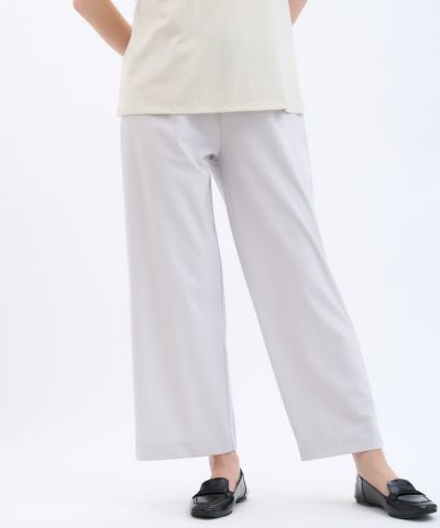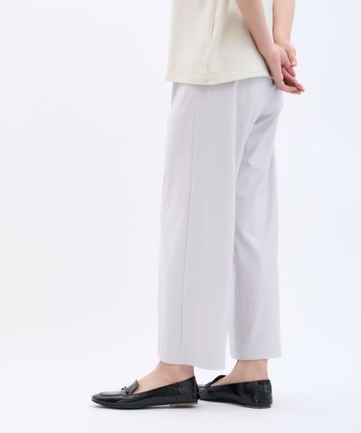 機能性抜群!ストレスフリーなパンツ。 接触冷感、UVカット、ストレッチ性も抜群で、今の季節にピッタリの素材。 さらりとした履き心地でシワになりにくく、太すぎないシルエットで、動きやすい。 お出かけスタイル、カジュアルスタイルと汎用性が高く着まわしがききます。