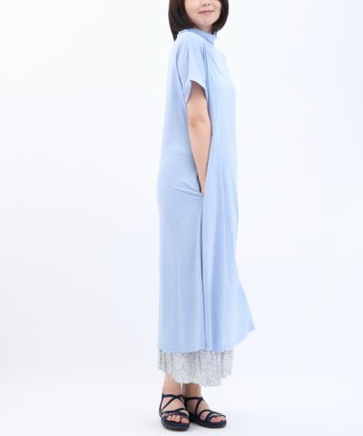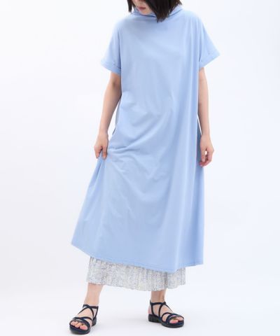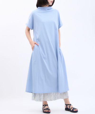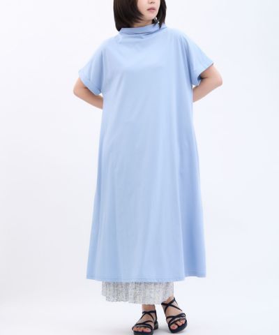 ボトルネックのシンプルワンピース。 肌触りの良い滑らかな綿100%素材。 一枚で着心地良し! ボトムに、プリントスカートやワイドパンツを重ねれば、違った印象で楽しめます。 お洗濯も楽な1枚仕立てのため、別途インナーを組み合わせての着用がおすすめです。
