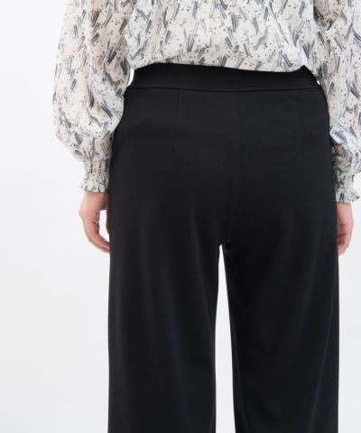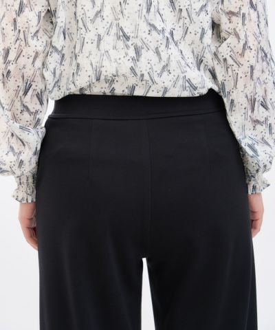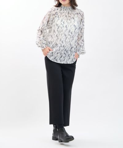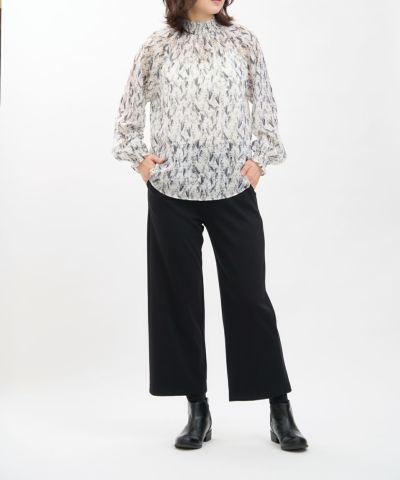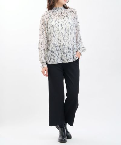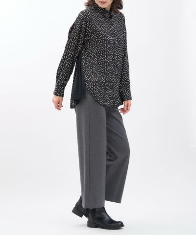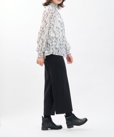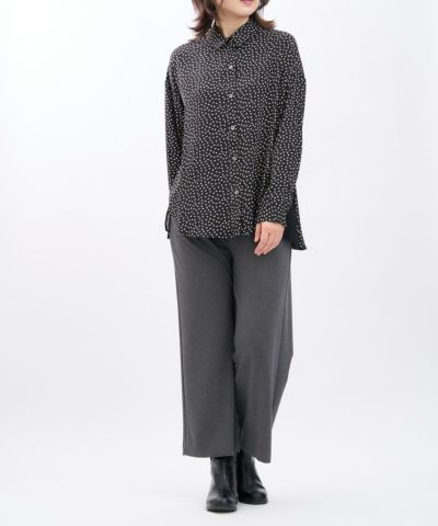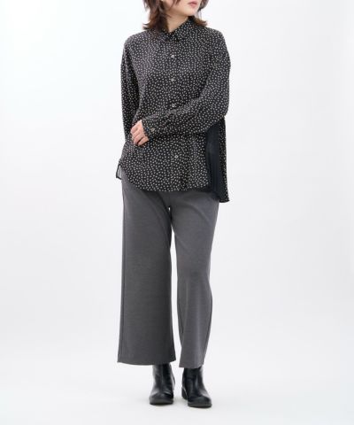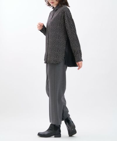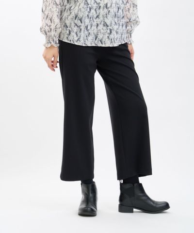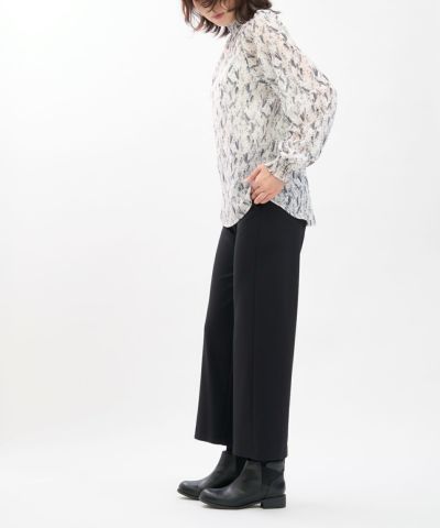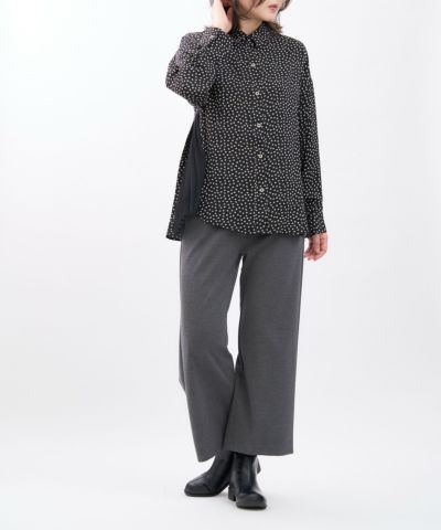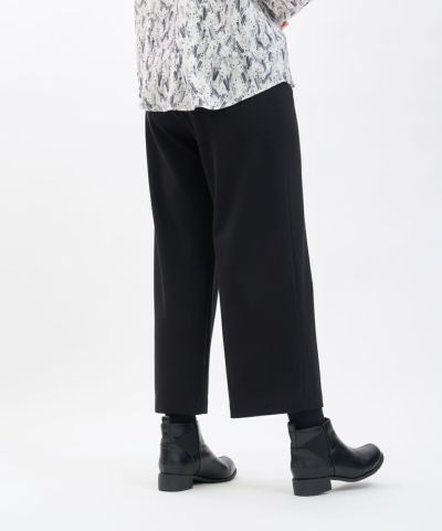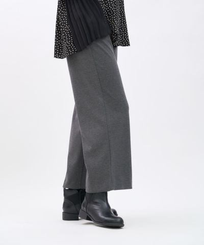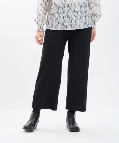 裾幅が26センチと広すぎず、落ち感があり、ジャージ素材でもカジュアルに偏らず、着まわしの効くデザイン。 ポンチ素材は、ハリ感があり、ストレッチ性も高い生地。 横伸びが少なく、伸縮性があるため保形成に優れた型崩れしにくい編み地。 ストレッチが効いているため、動きやすく、長時間履くにも負担なく着られます。 ウエストからストンと真っ直ぐなラインが出来、スッキリ感のあるスタイルです。 キレイめブラウスやプリントのトップスと合わせると非常に楽な通勤、お出かけスタイルに。