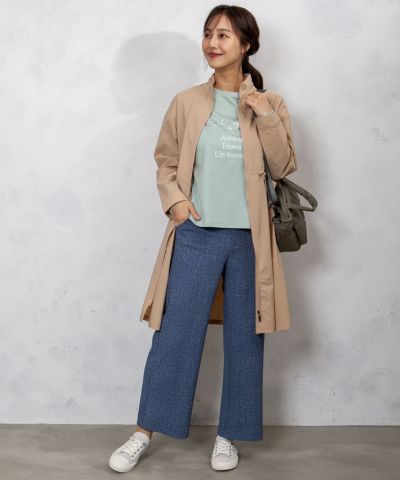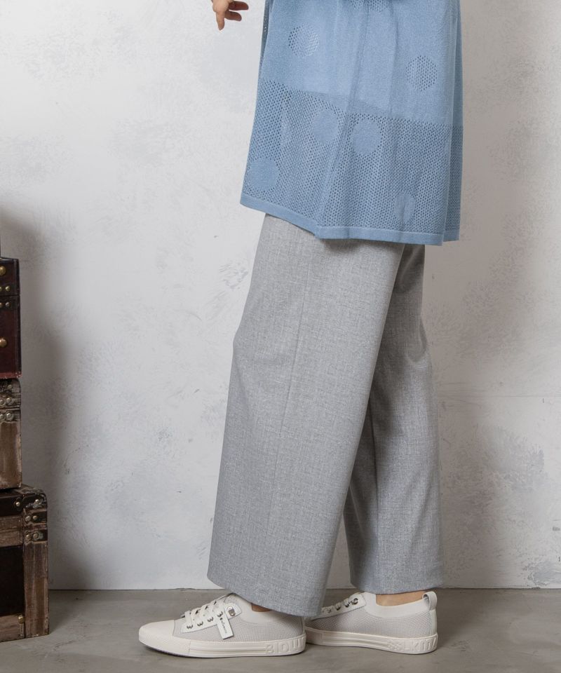 落ち感のある、ストレッチ素材がはき心地抜群! ワイド目のクロプトパンツで、適度な裾幅で動きやすく、脚裁きも良し。 ストレッチ素材で脚の曲げ伸ばしも楽で、長時間の着用も疲れにくい。 綺麗めスタイル、カジュアルスタイルと幅広いスタイリングにおすすめです。
