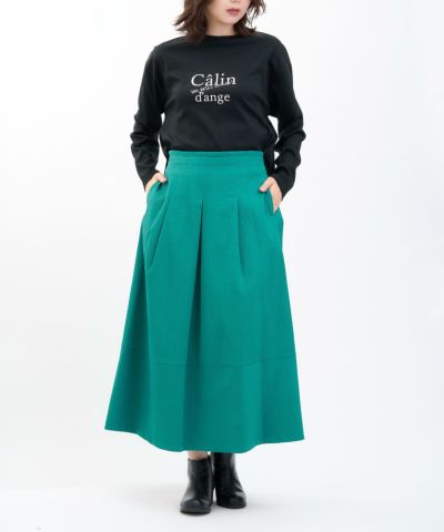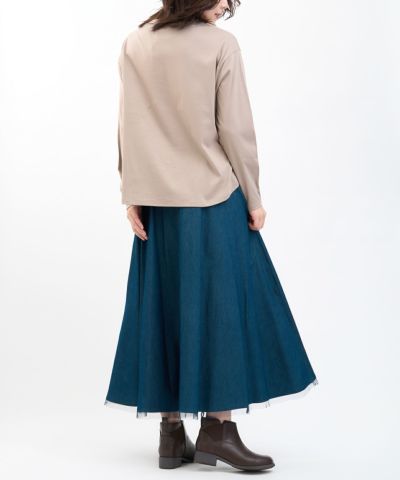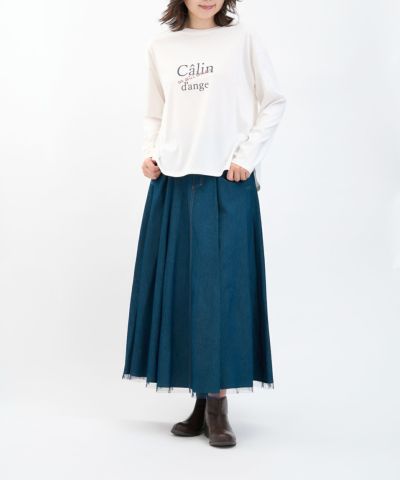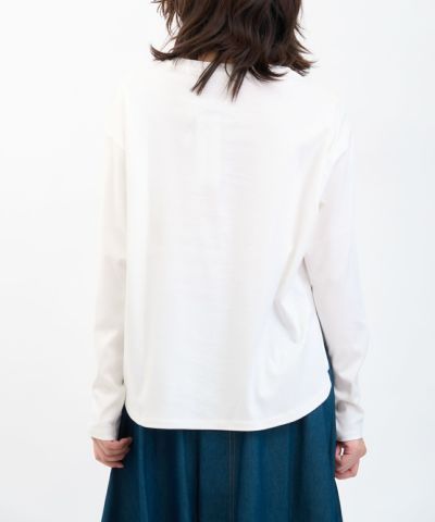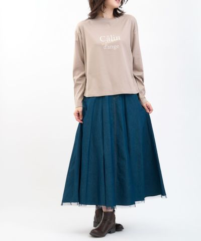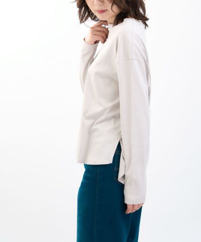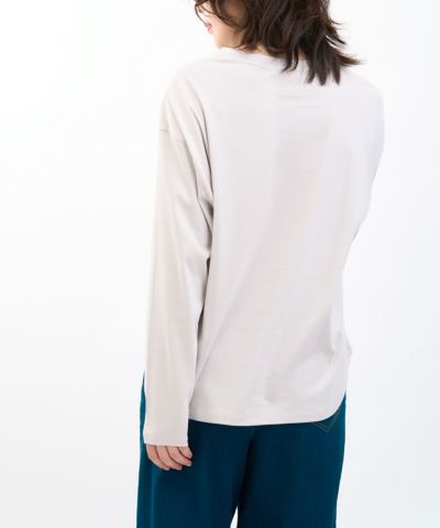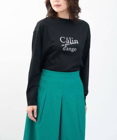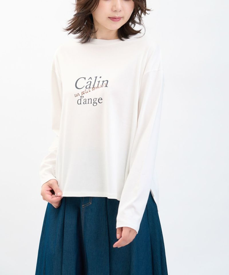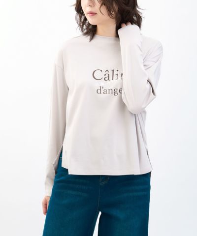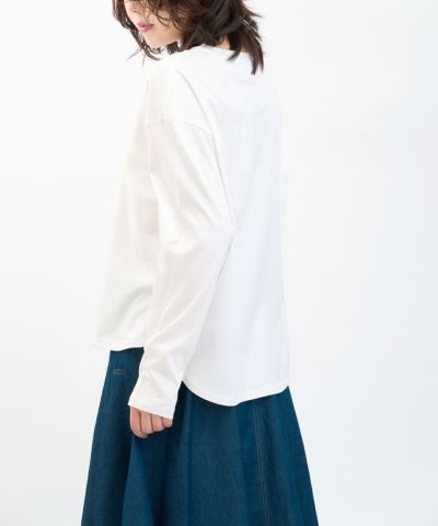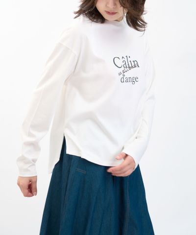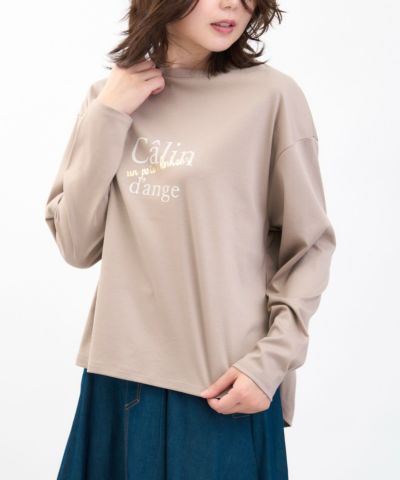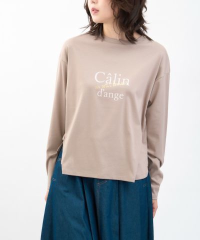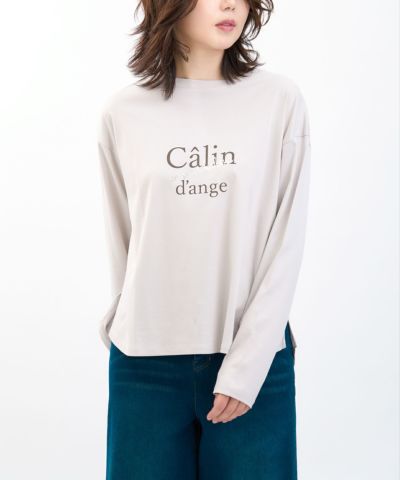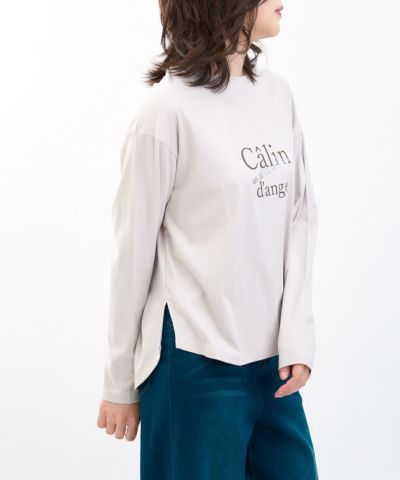 滑らかな綿100%の大人ロゴT。 ドロップショルダーで、ゆとりのあるシルエット。 斜めにキラッと光るロゴをいれ、大人な雰囲気をプラス。 生地は薄すぎず、一枚でも安心して着られ、ジャケットや、ベストと組み合わせても、全面のロゴが着こなしのアクセントに。 裾スリット入りで、前だけボトムにインして着ても良し。 前後差のある着丈で、ボトムとのバランスも取りやすいデザインです。
