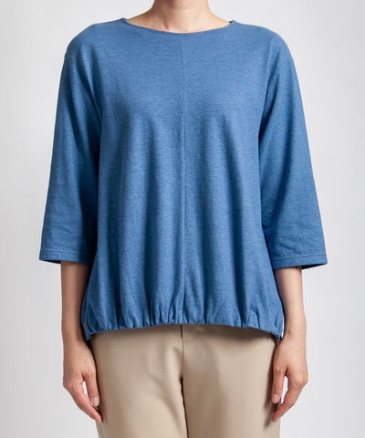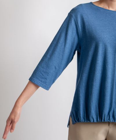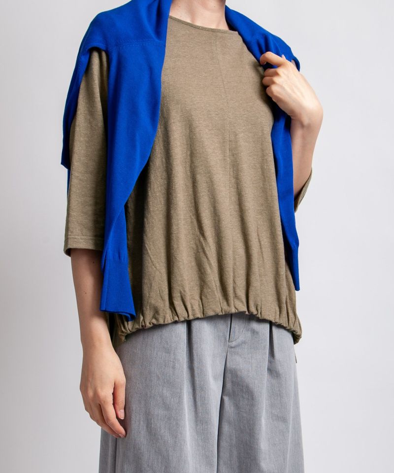 前裾にギャザーをいれたふんわり七分袖のシルエット。