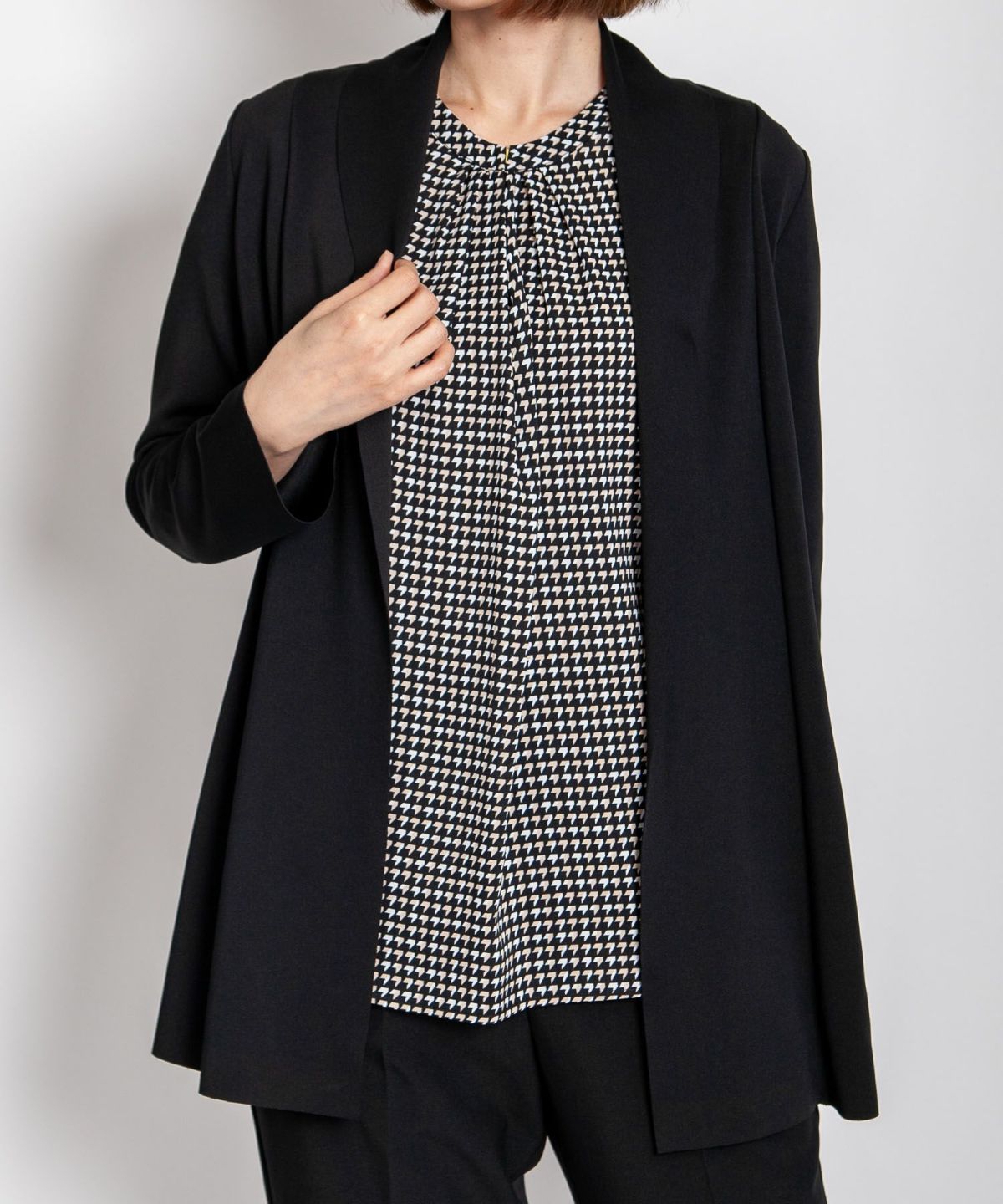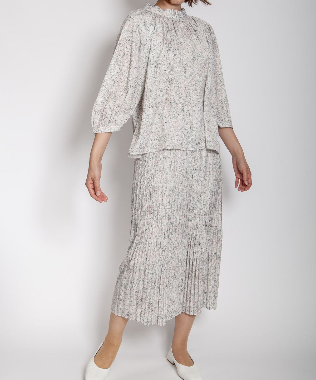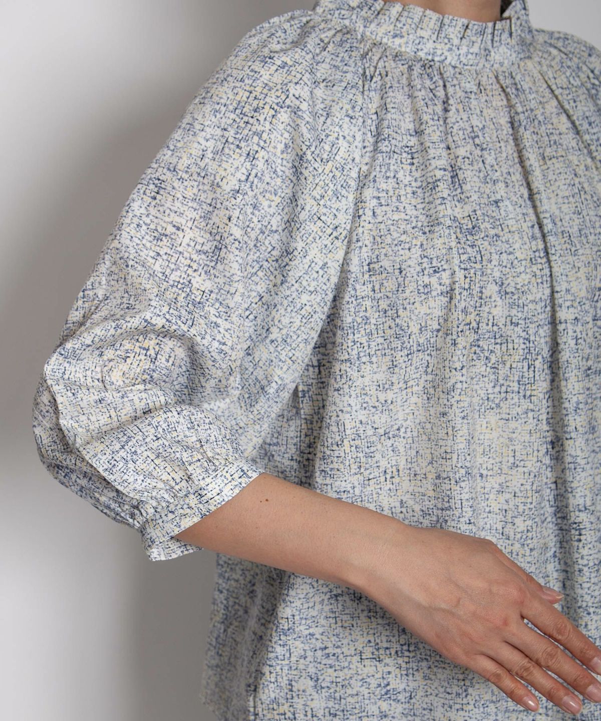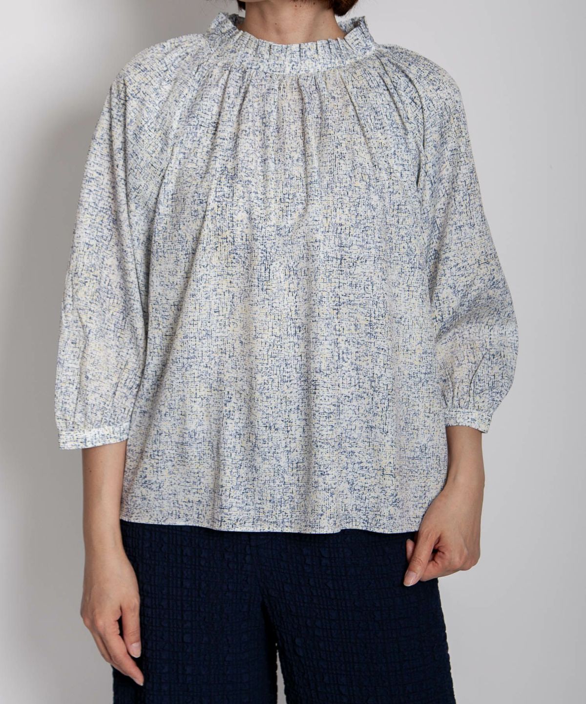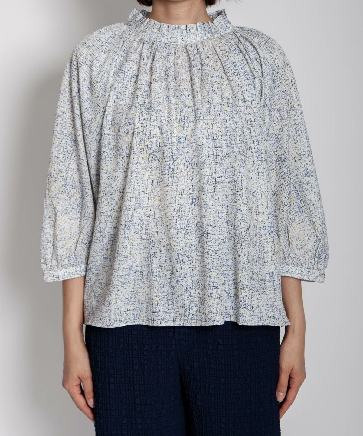 サマーツイード風プリントブラウス