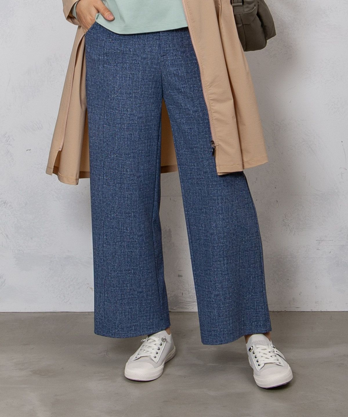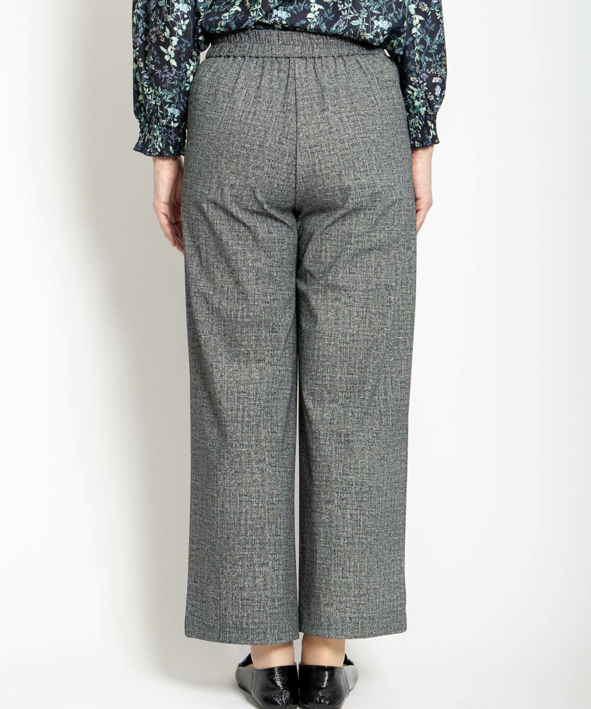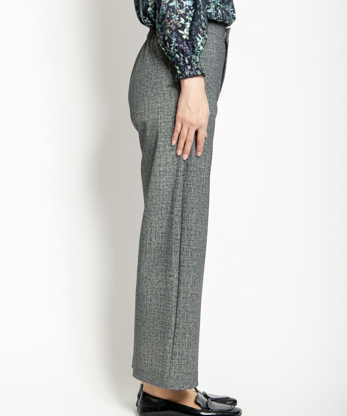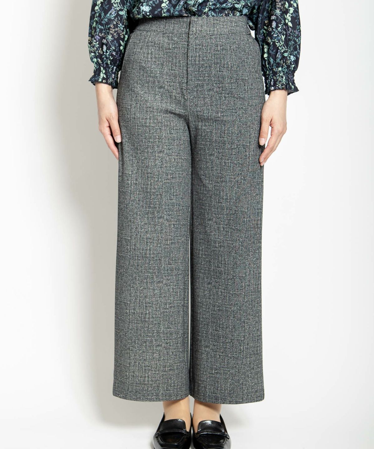 ツイード風プリントストレッチワイドクロプトパンツ