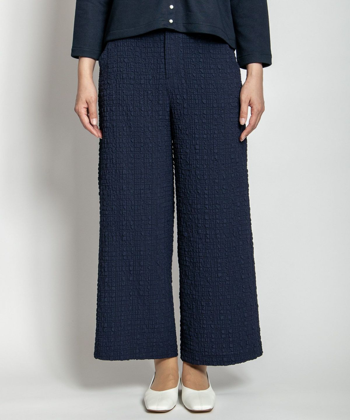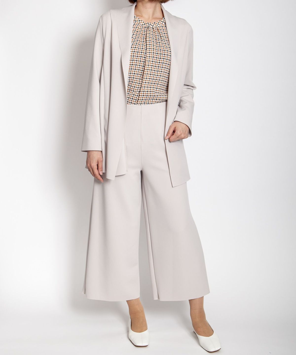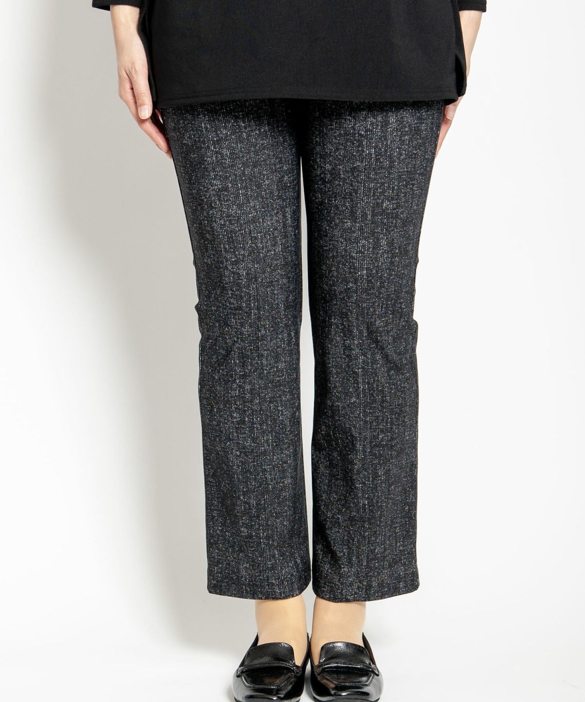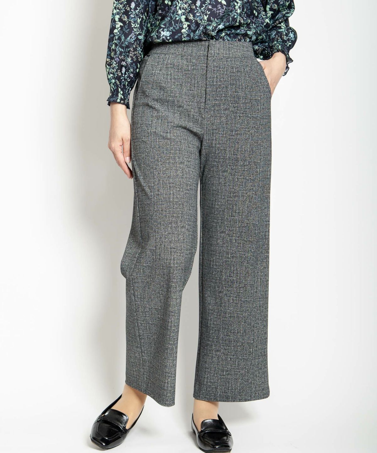 ツイード風プリントストレッチワイドクロプトパンツ