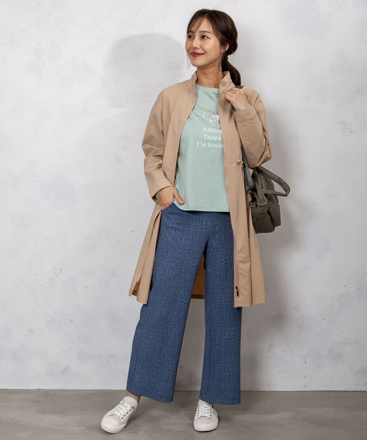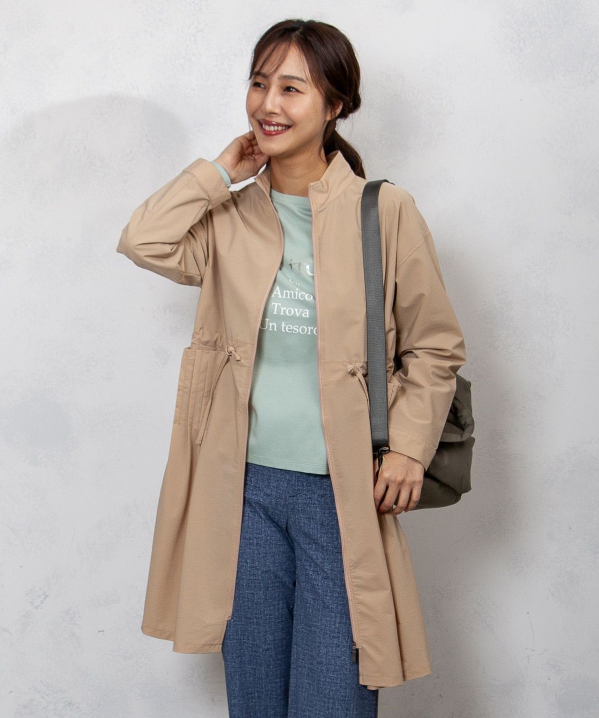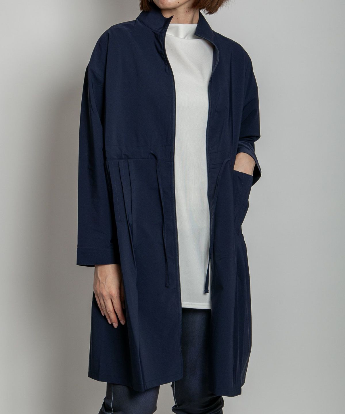 アジャスタブルスタンドカラーストレッチコート