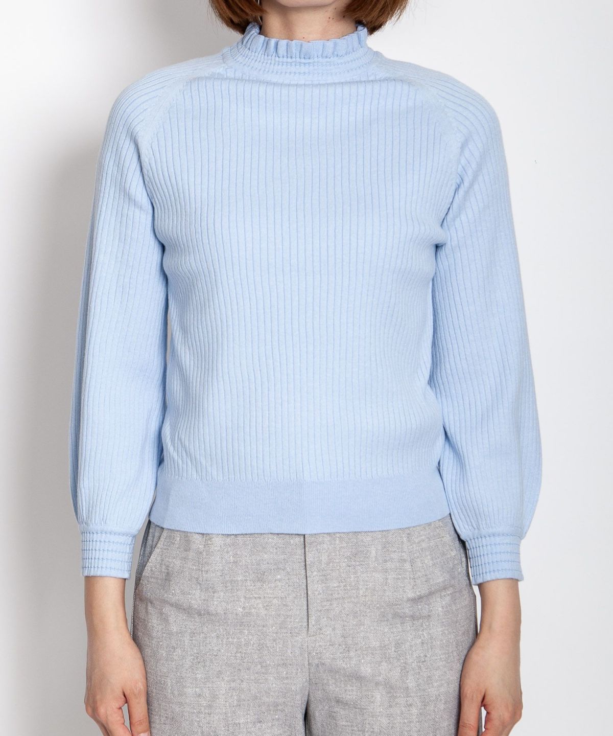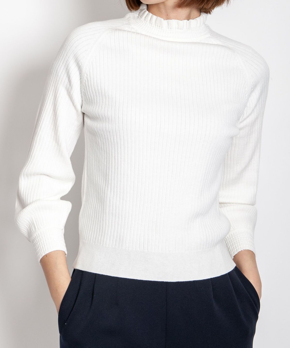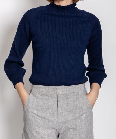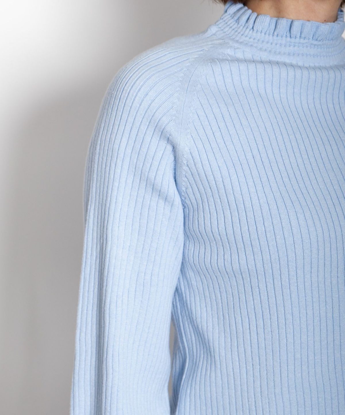 コットンストレッチ14Gリブフリルニット