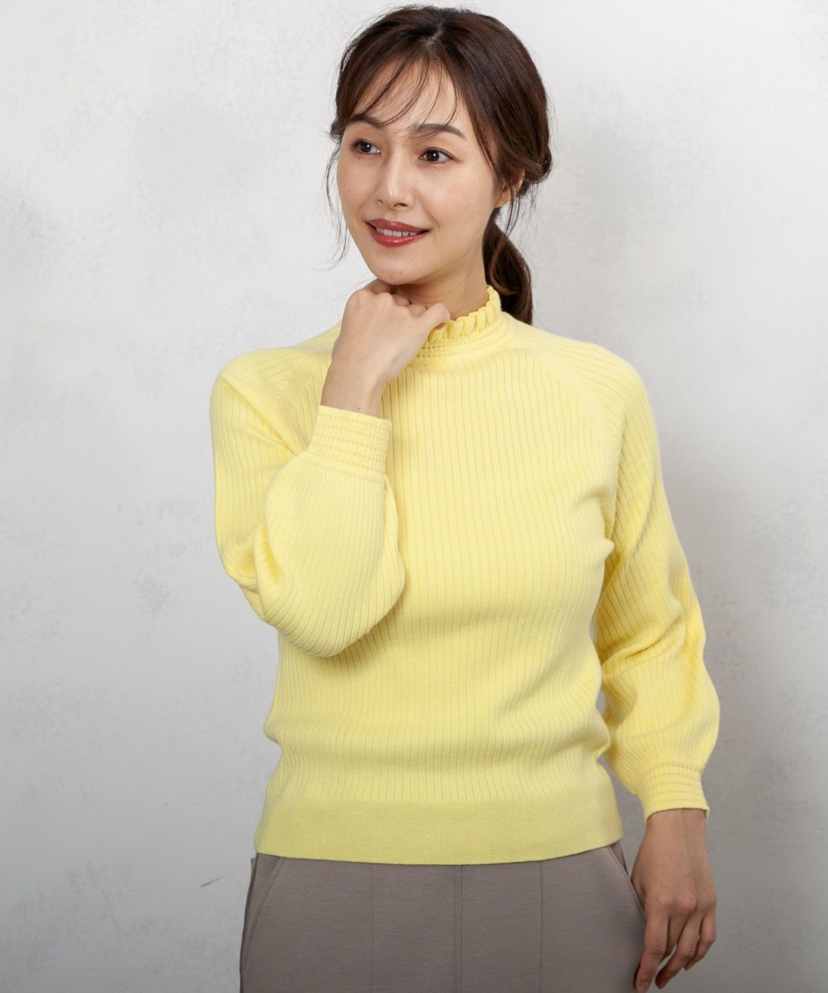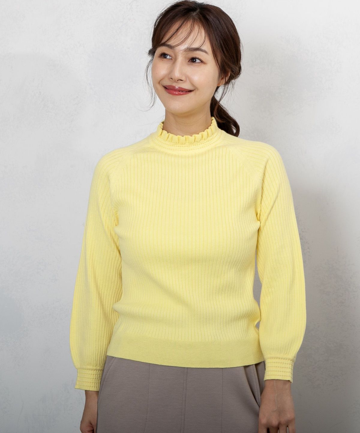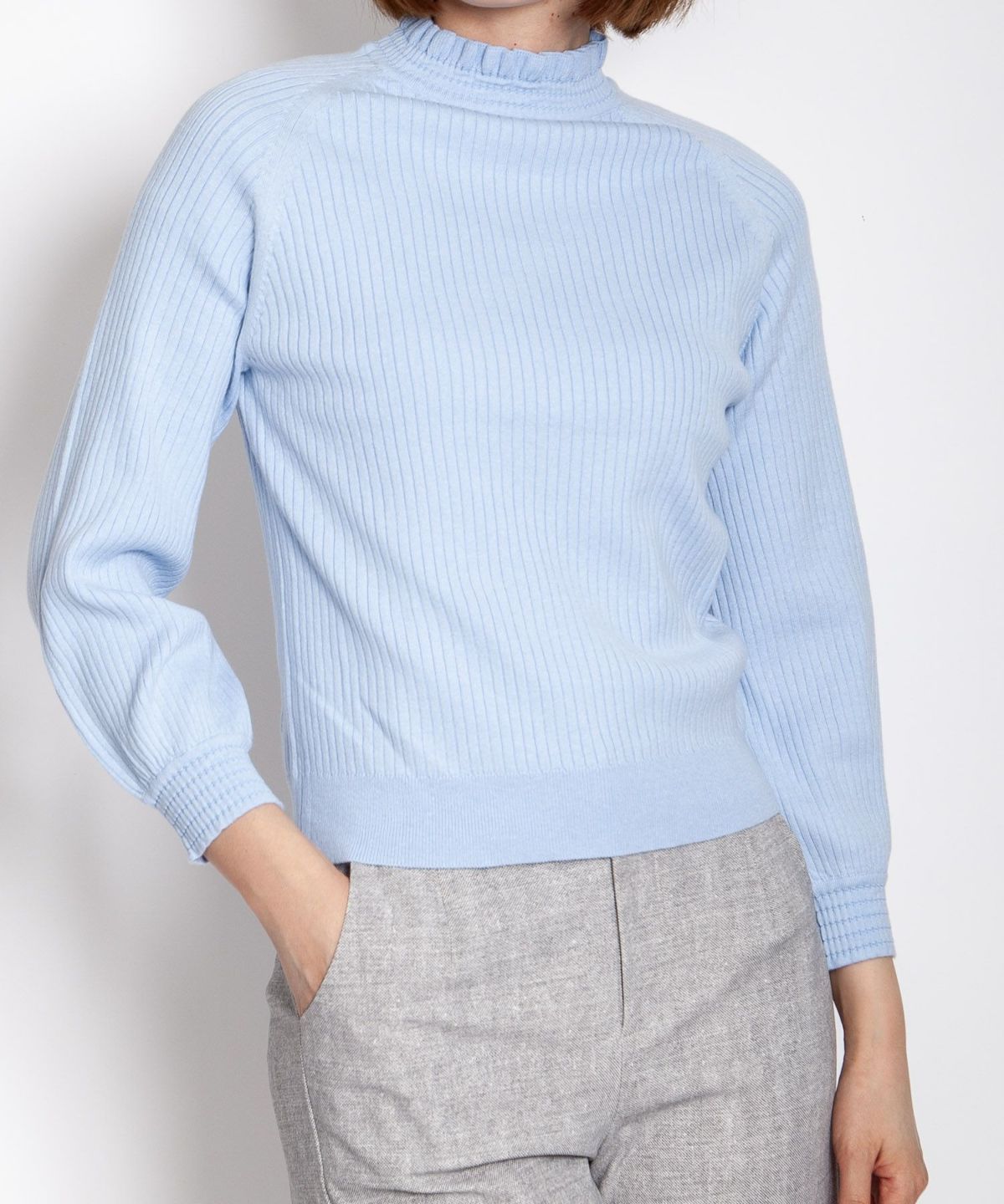 コットンストレッチ14Gリブフリルニット