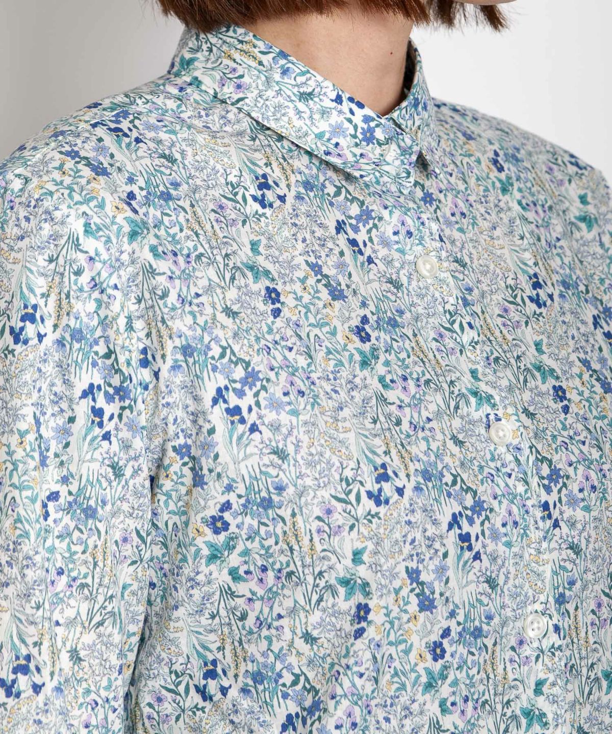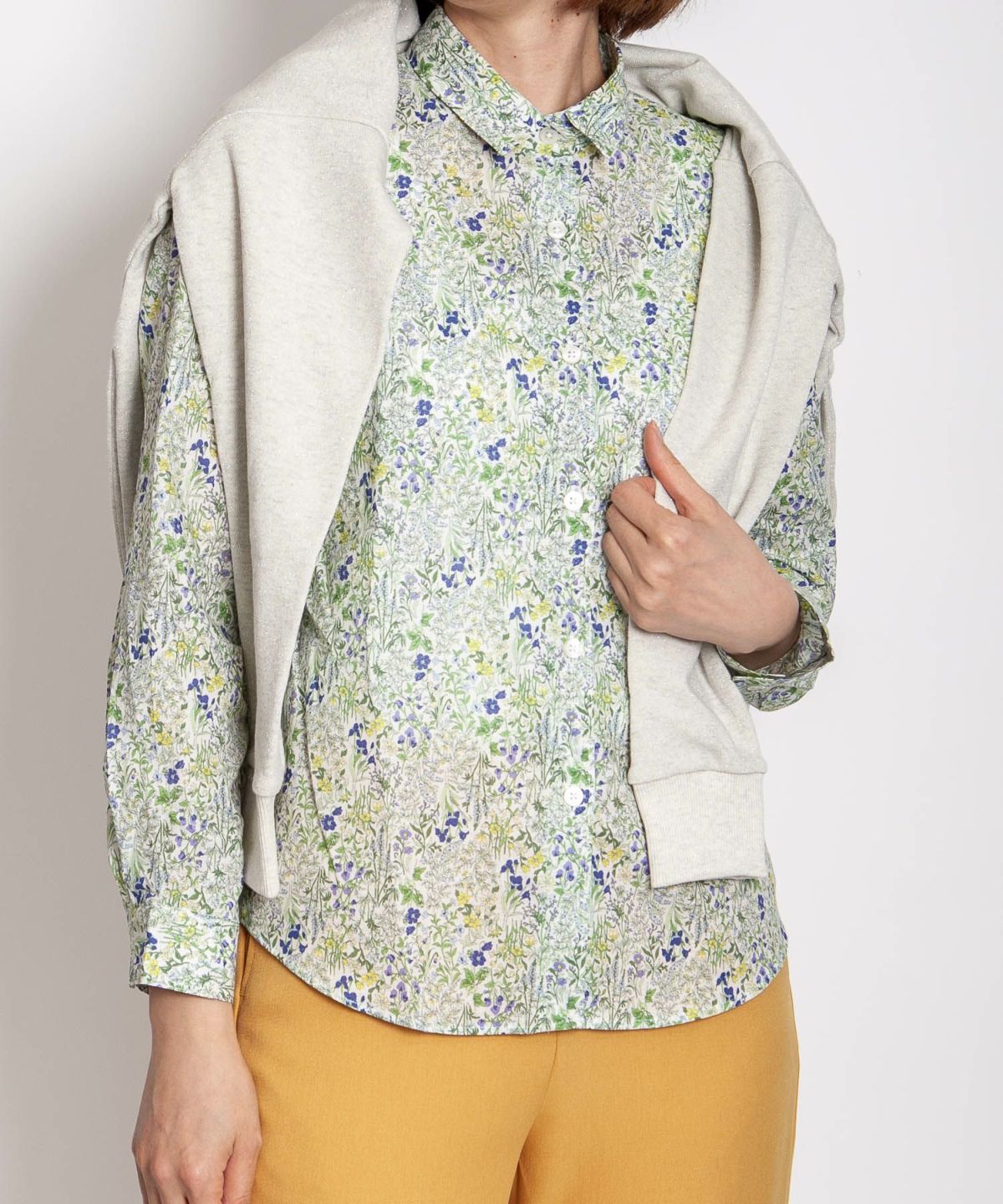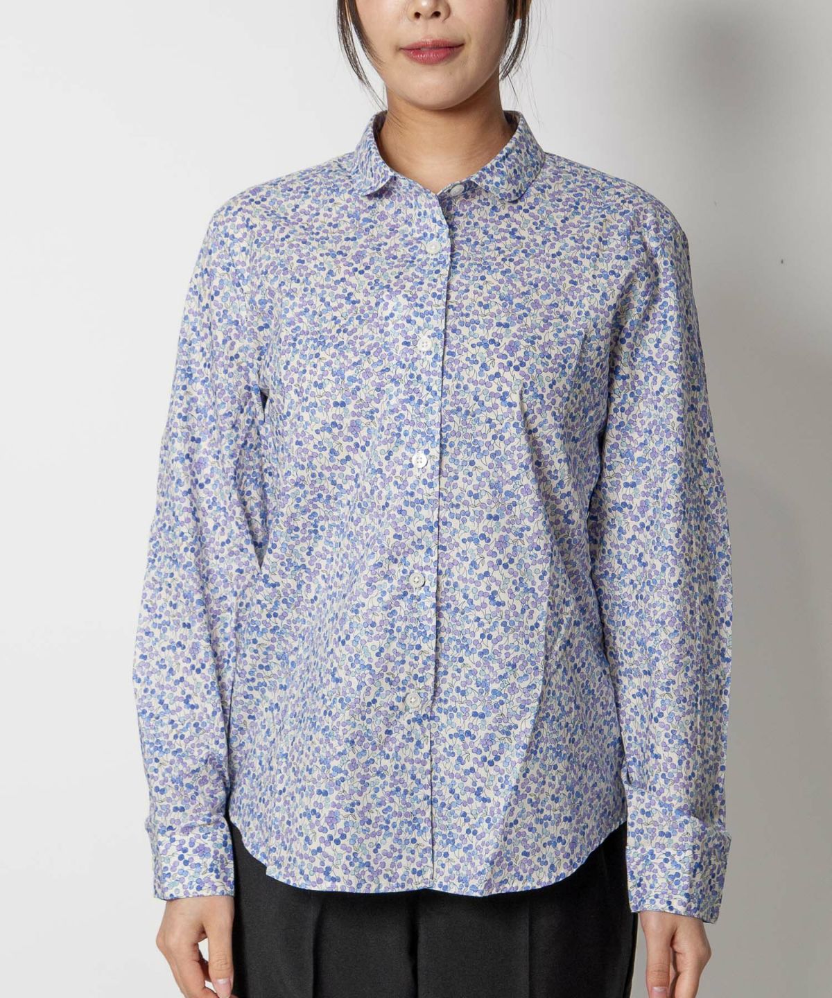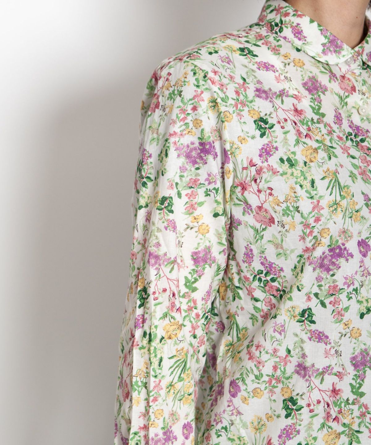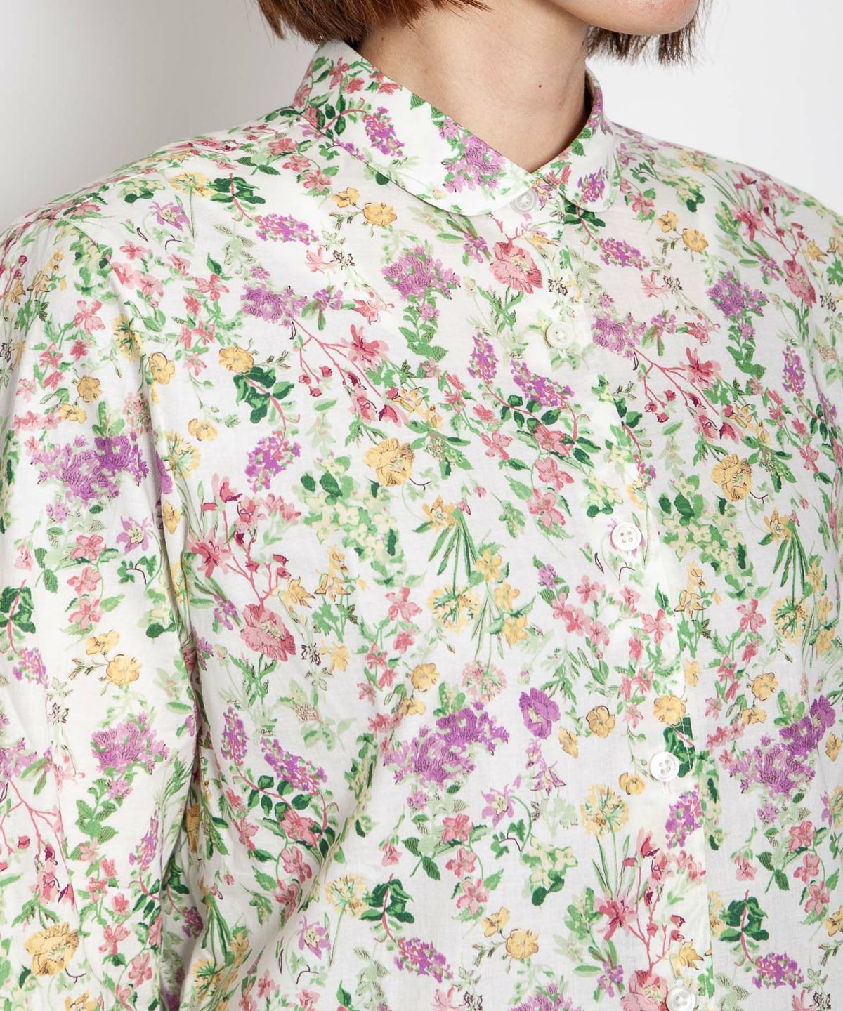 丸衿フラワープリントシャツ