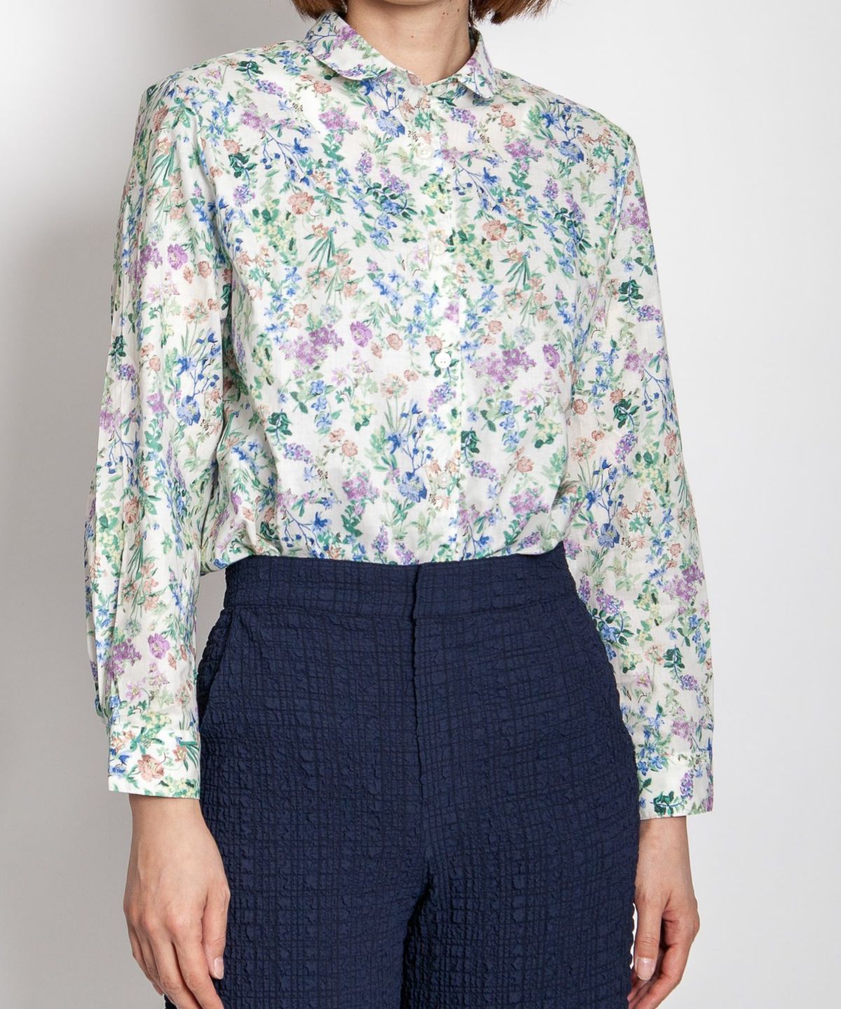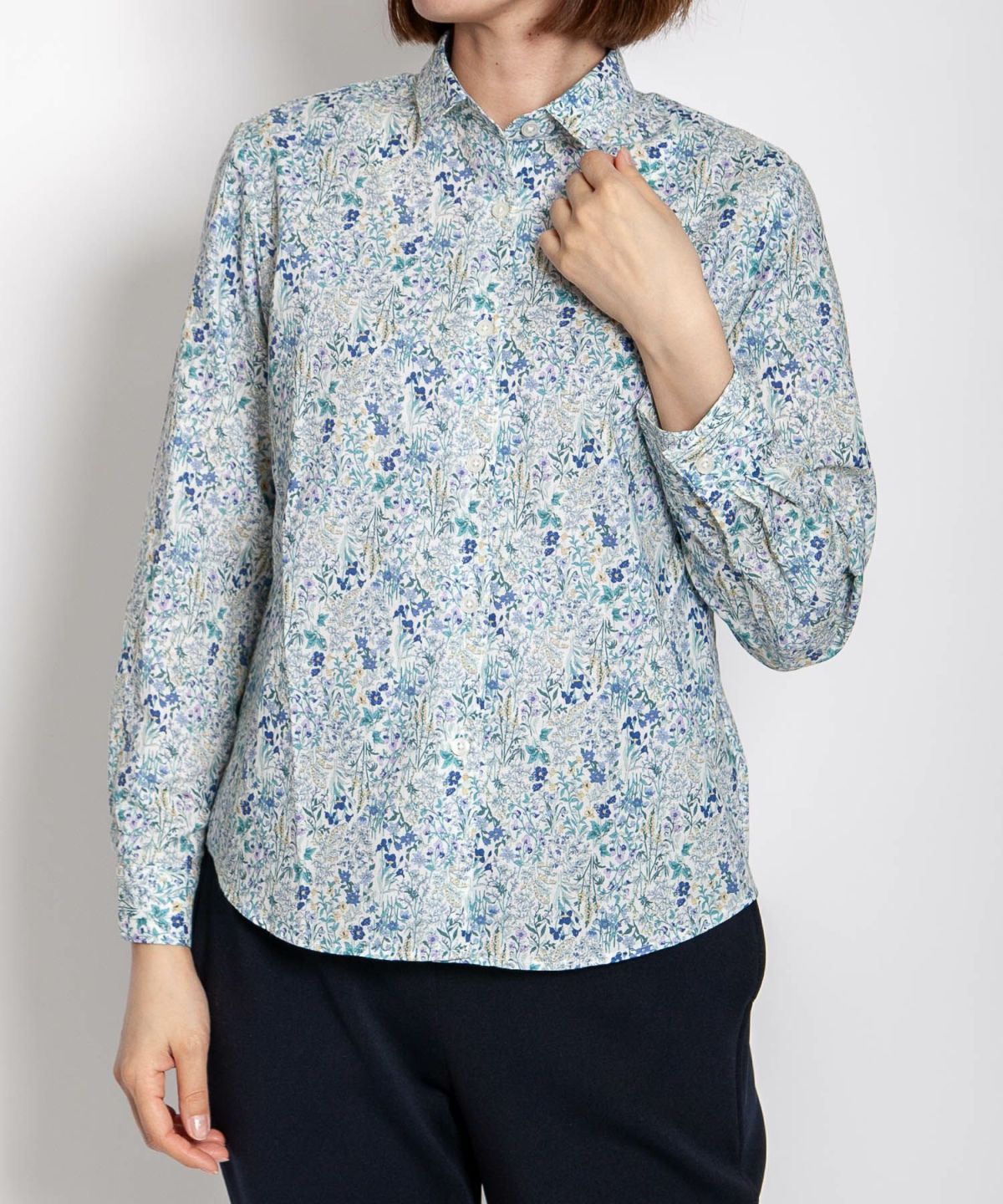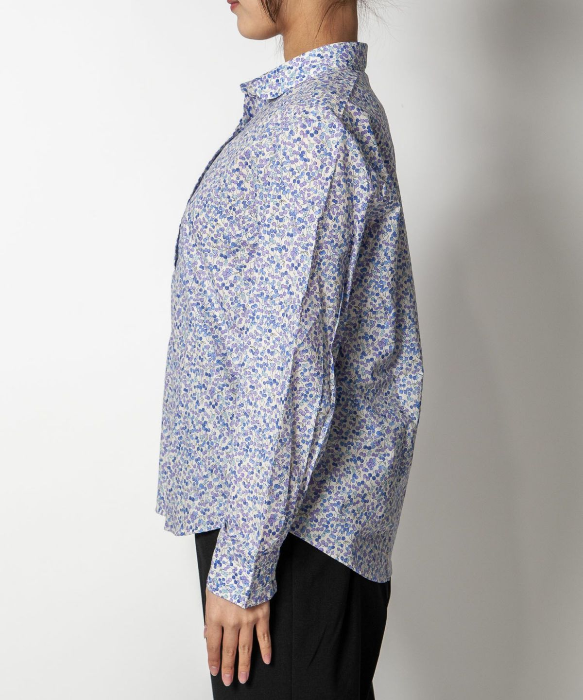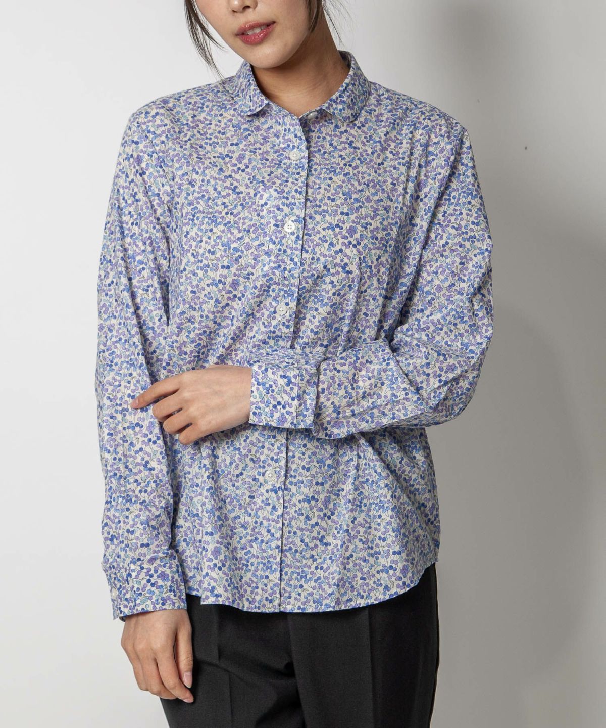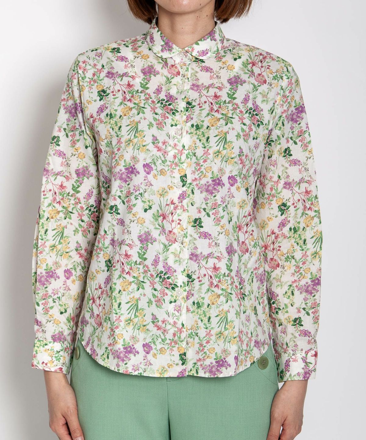 丸衿フラワープリントシャツ