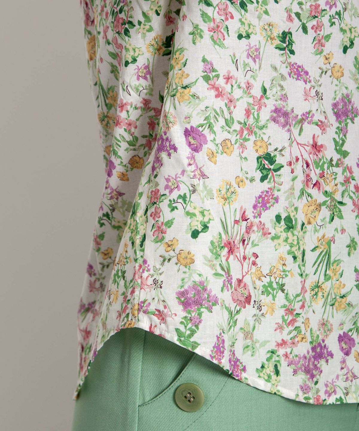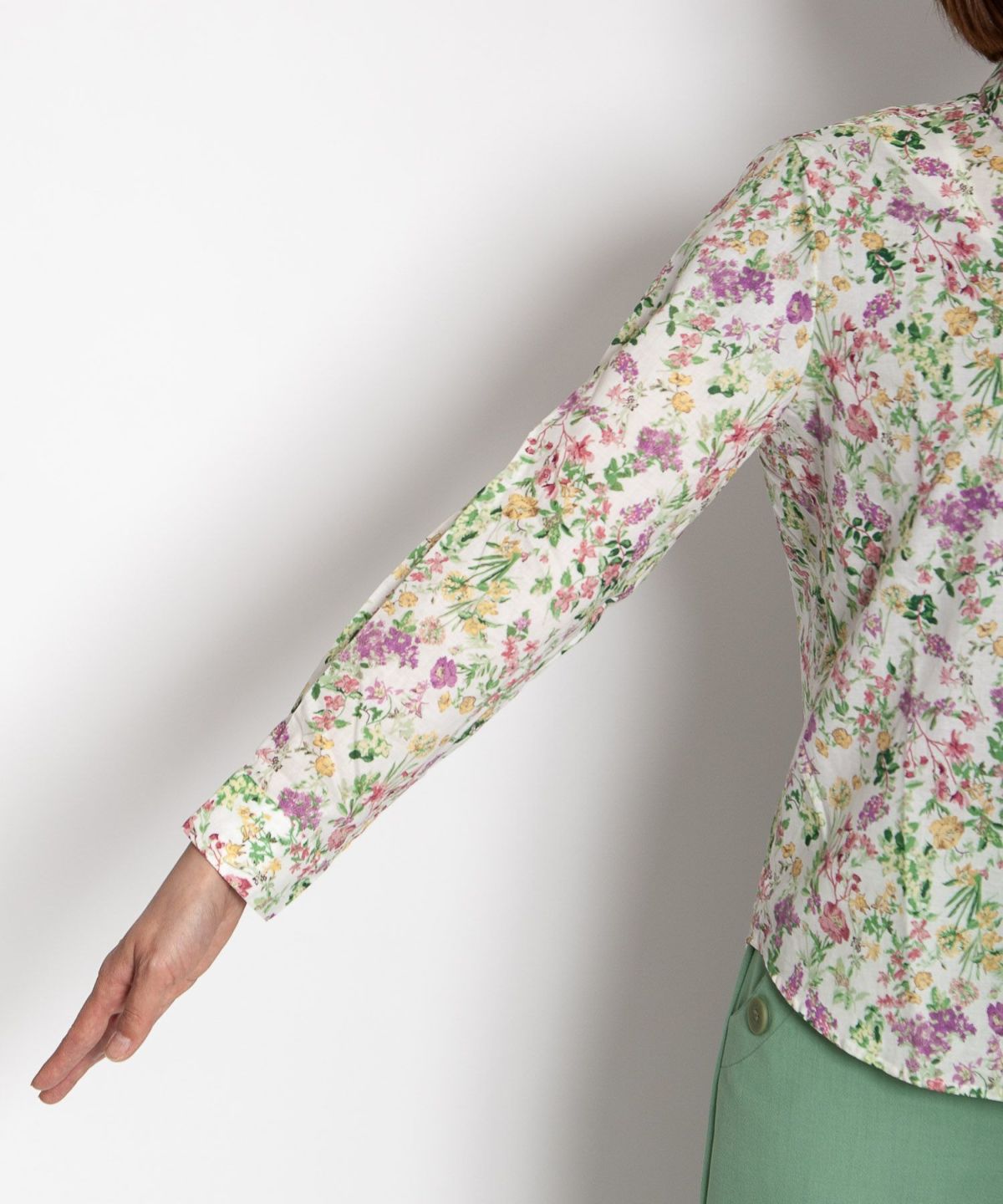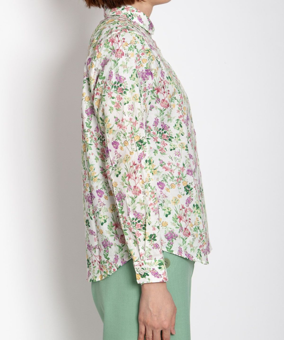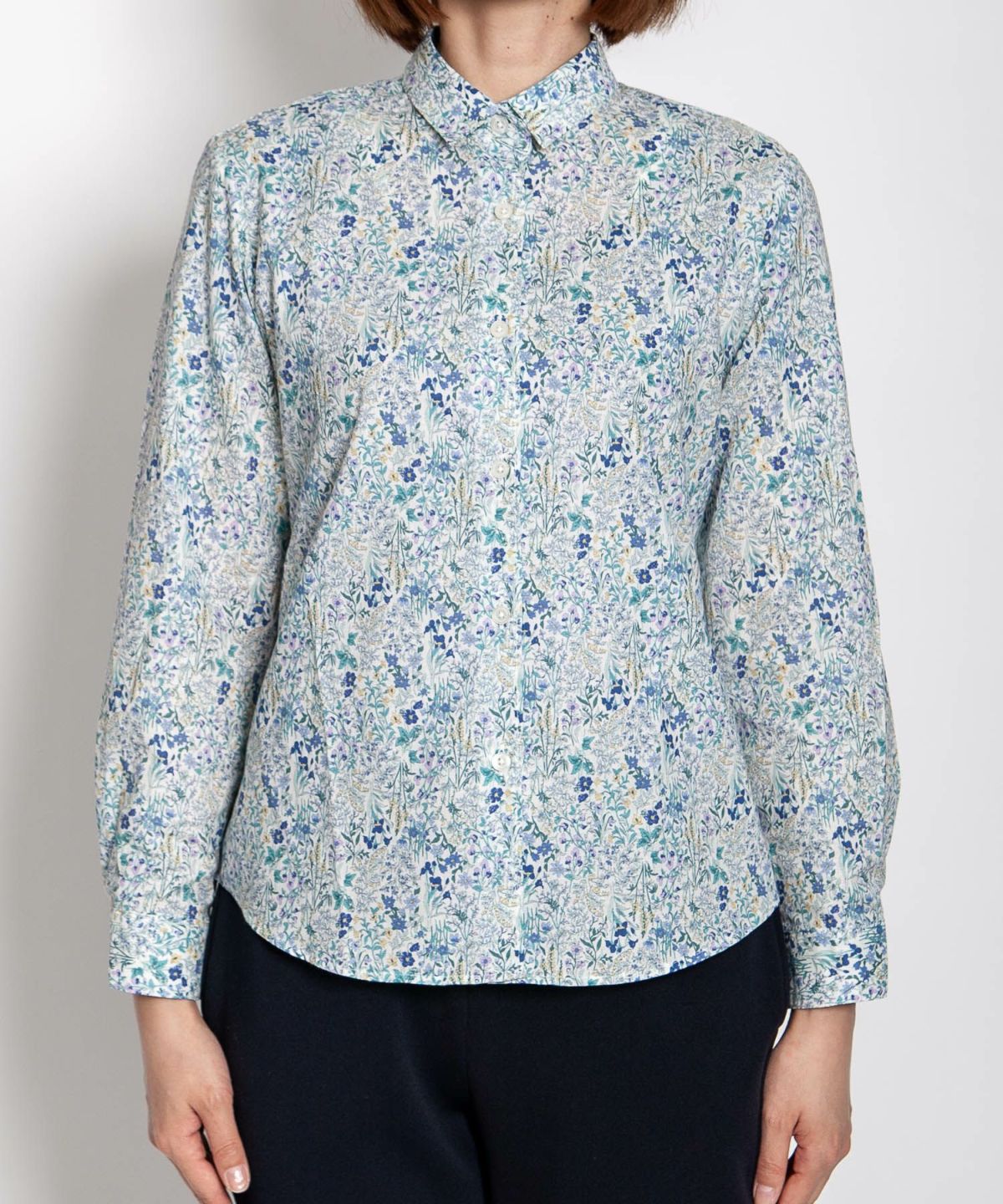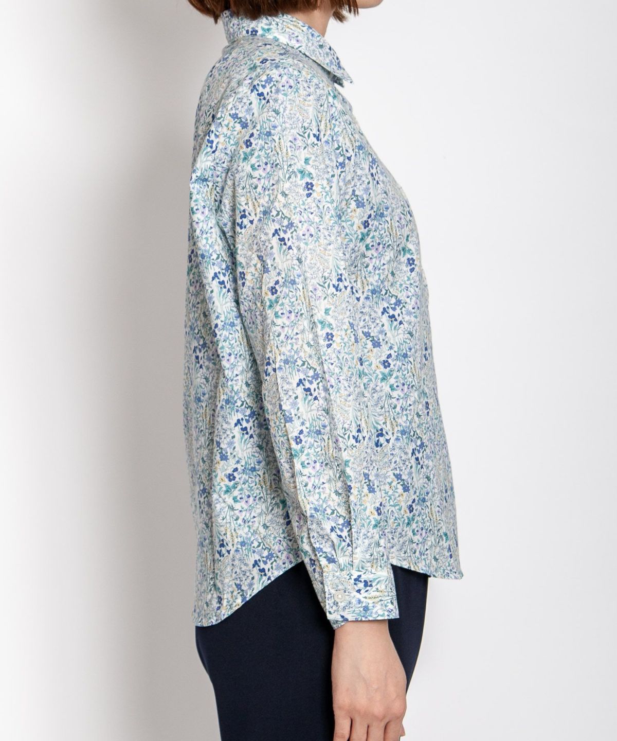 丸衿フラワープリントシャツ