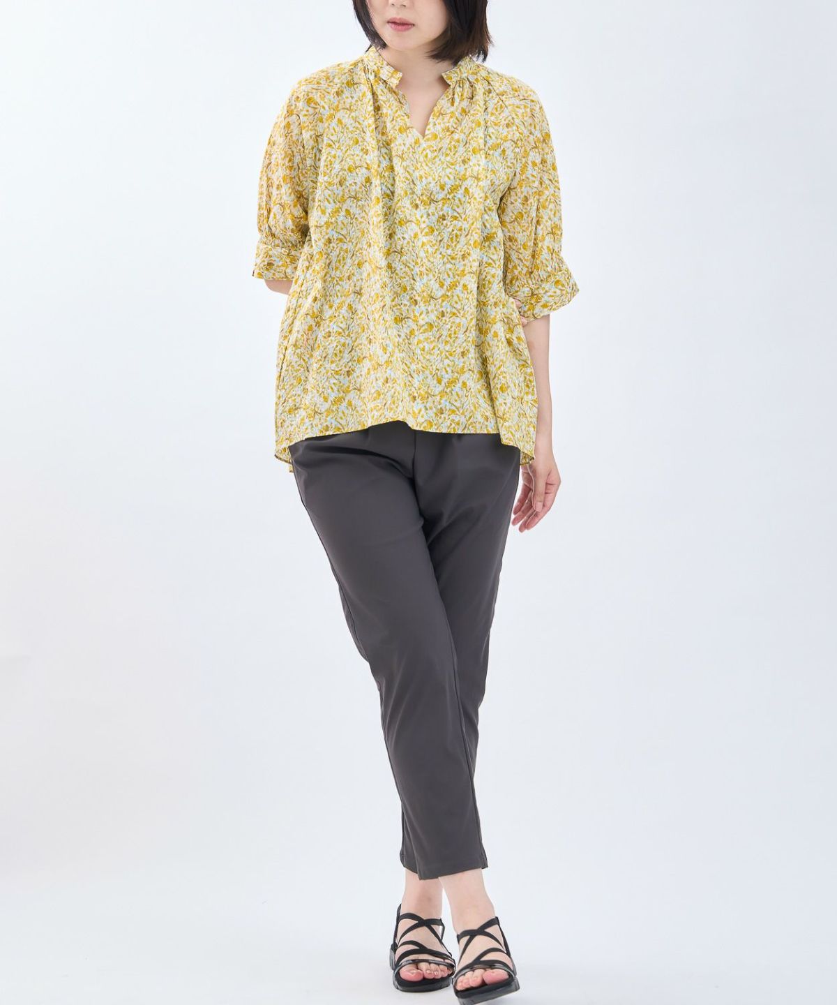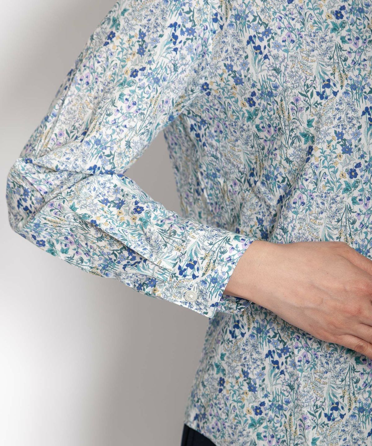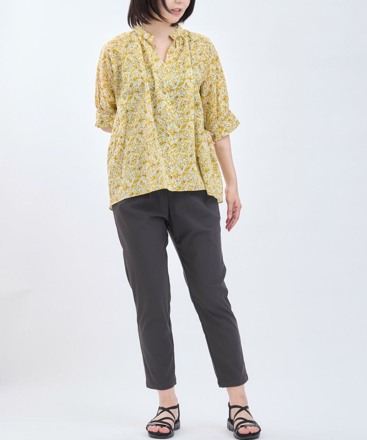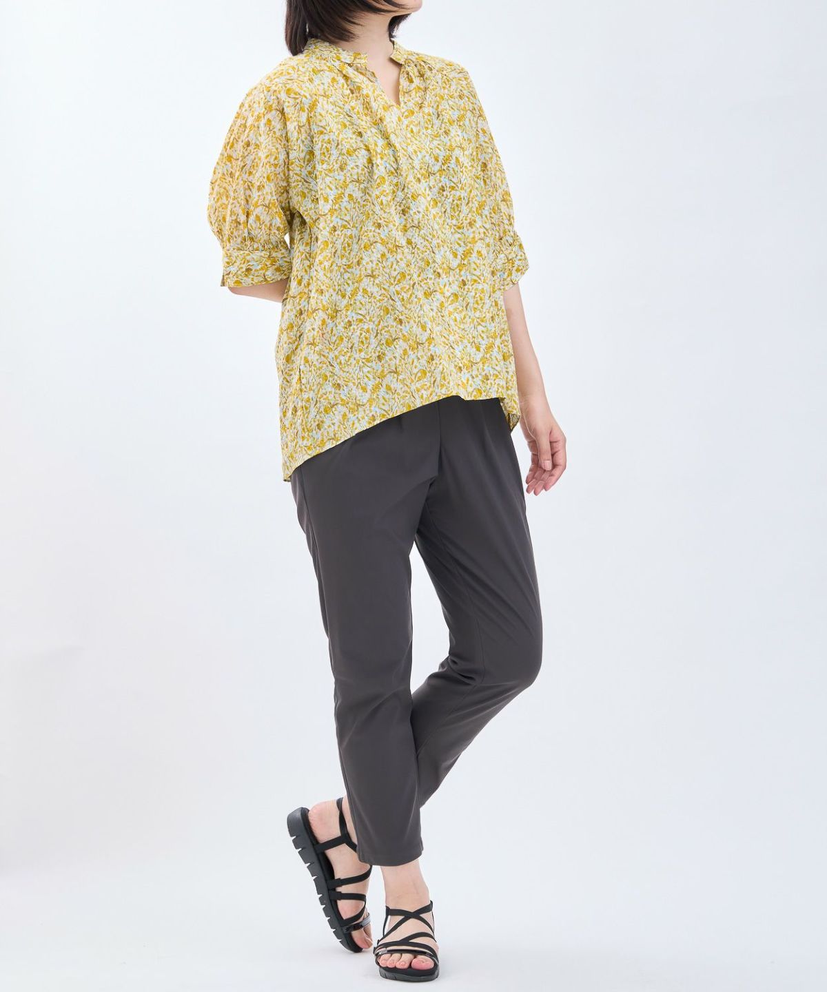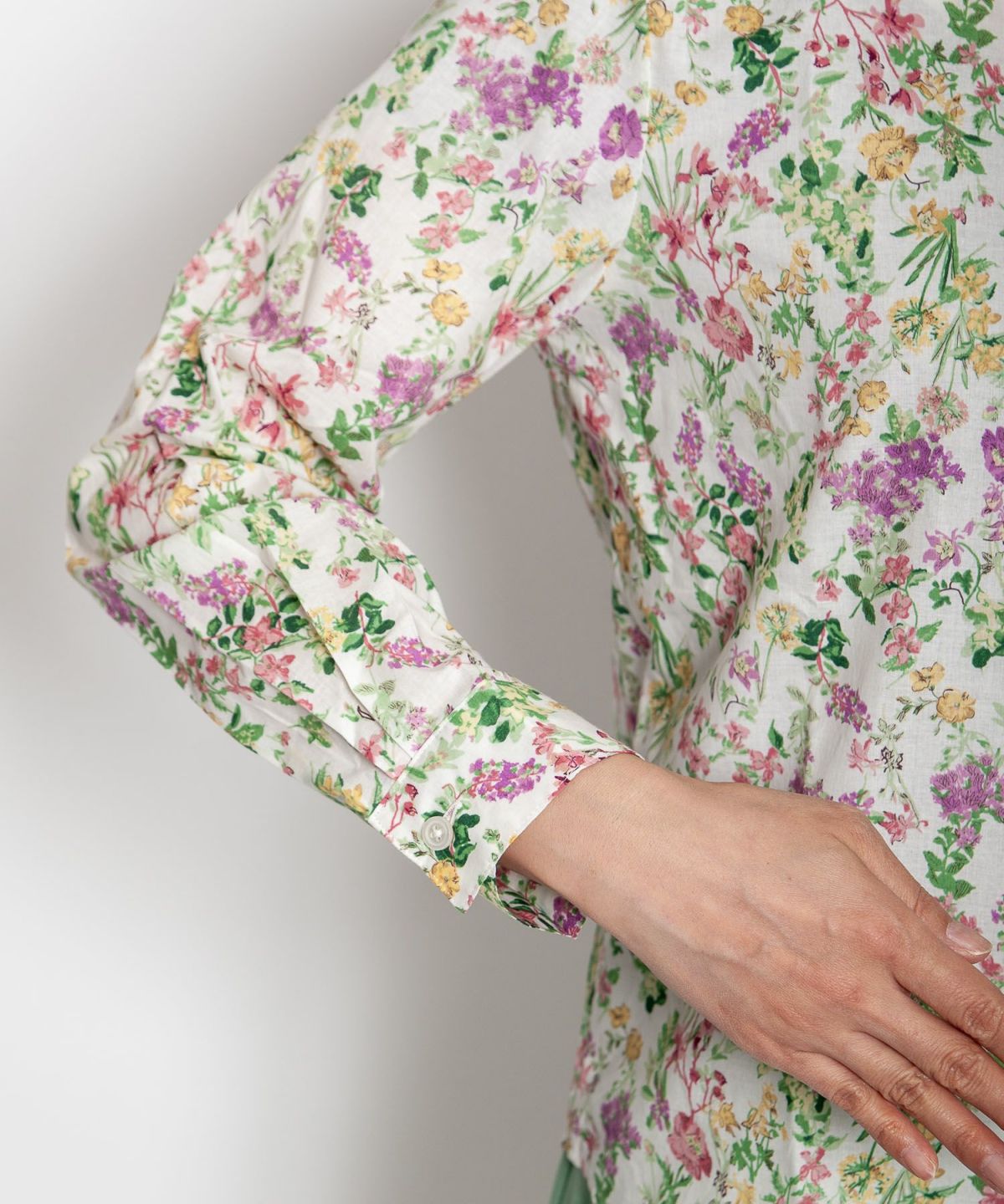 丸衿フラワープリントシャツ
