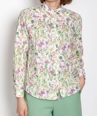シャツカラーフラワープリントシャツ