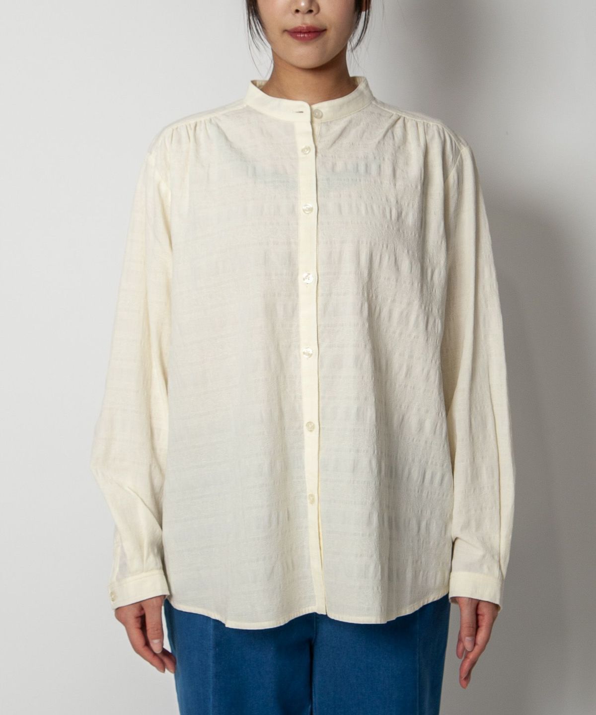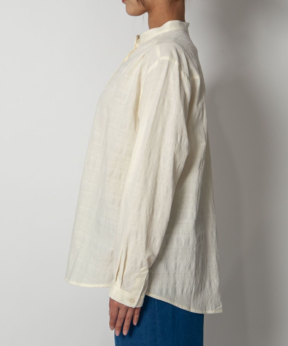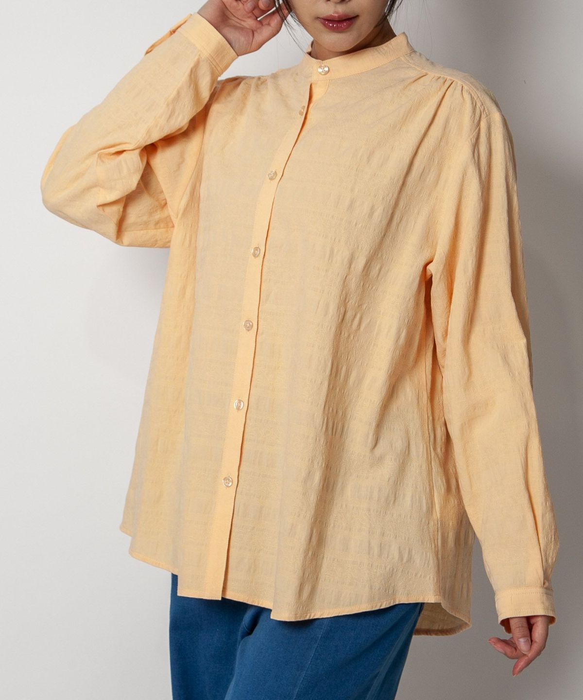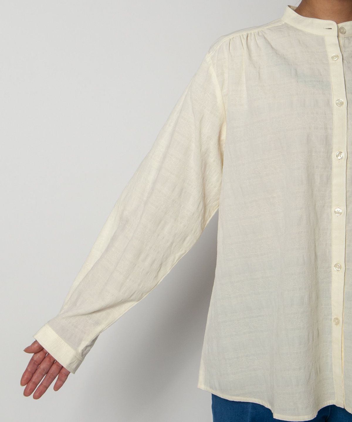 コットン織柄スタンドカラーシャツ