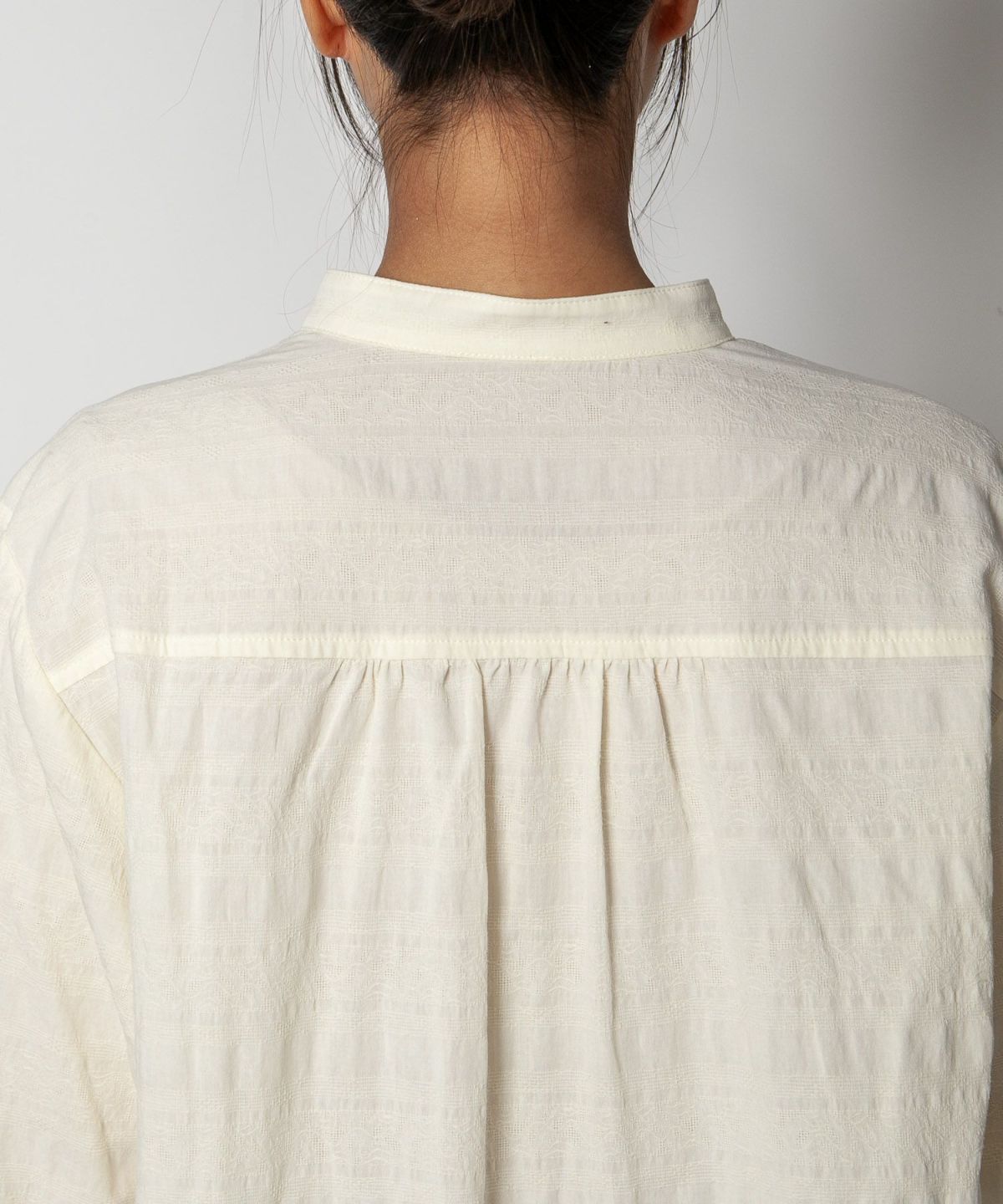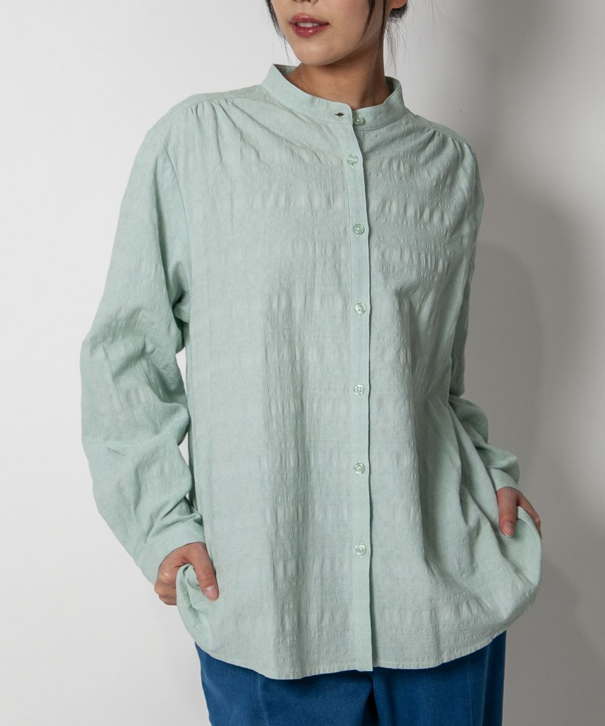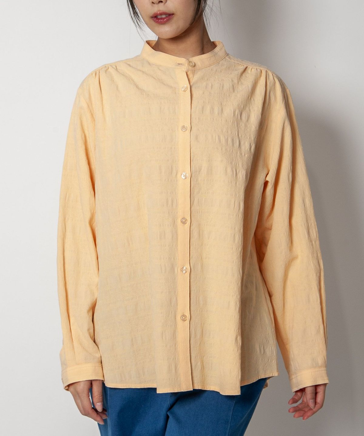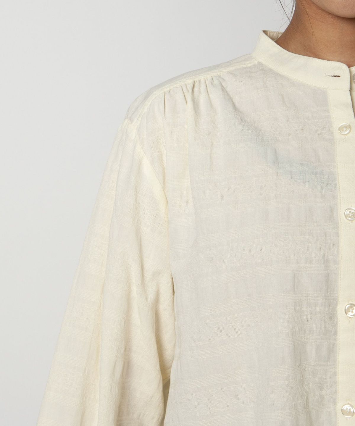 コットン織柄スタンドカラーシャツ