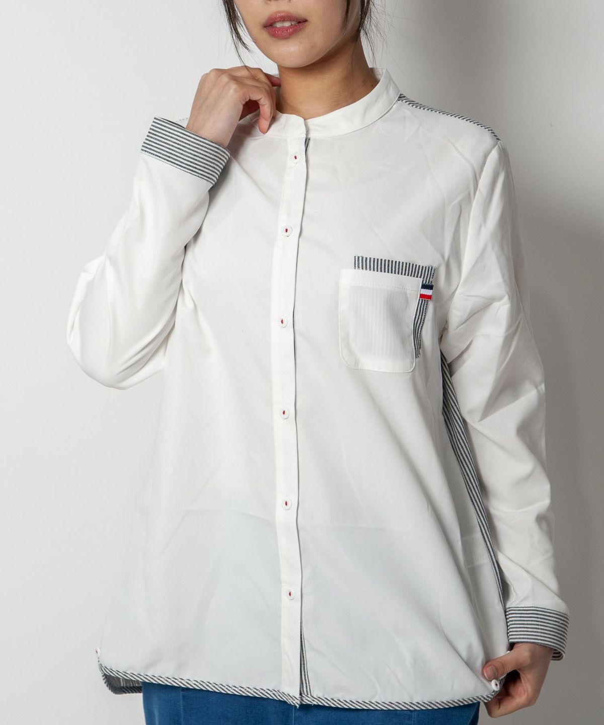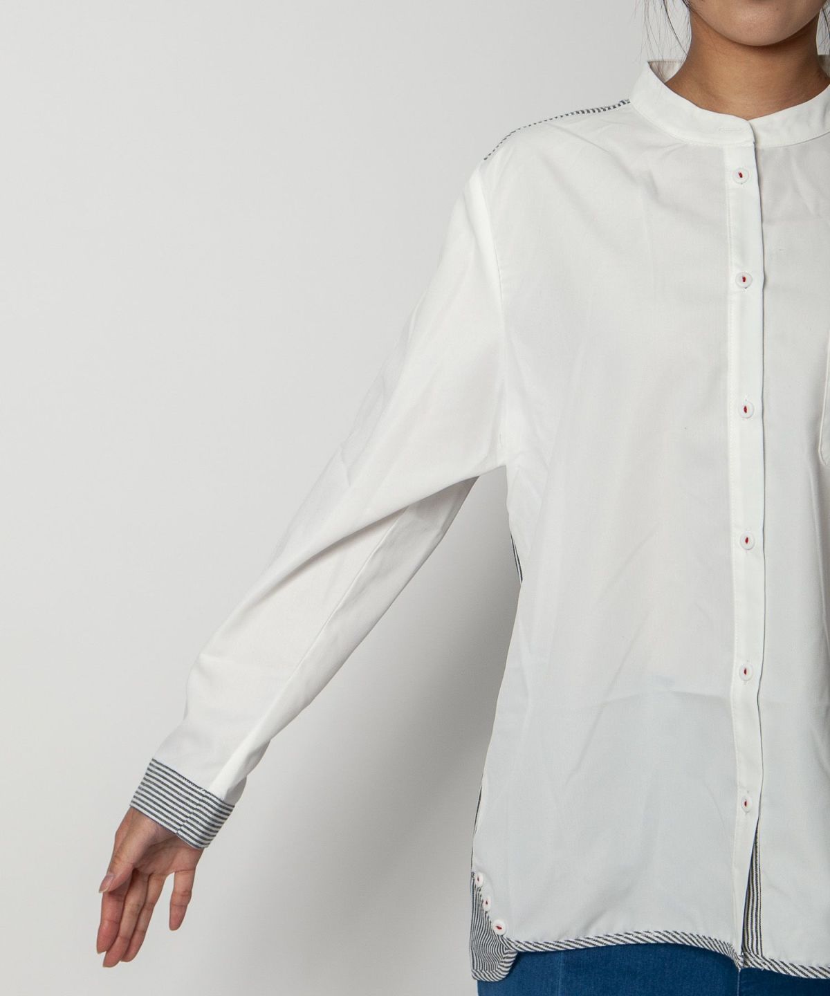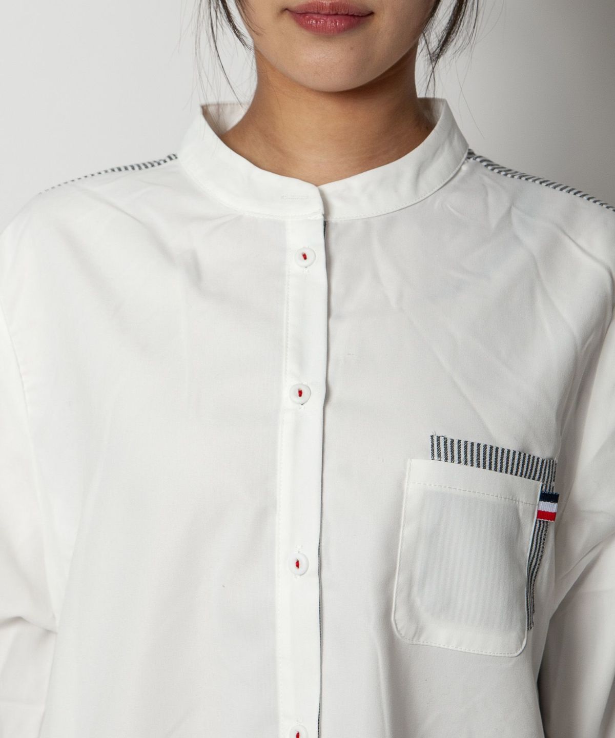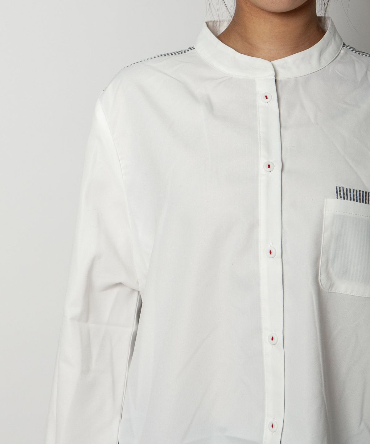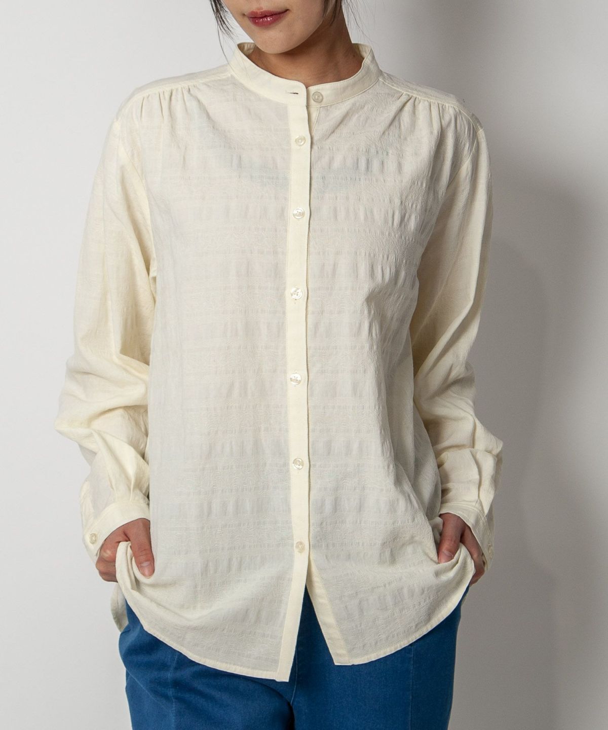 コットン織柄スタンドカラーシャツ