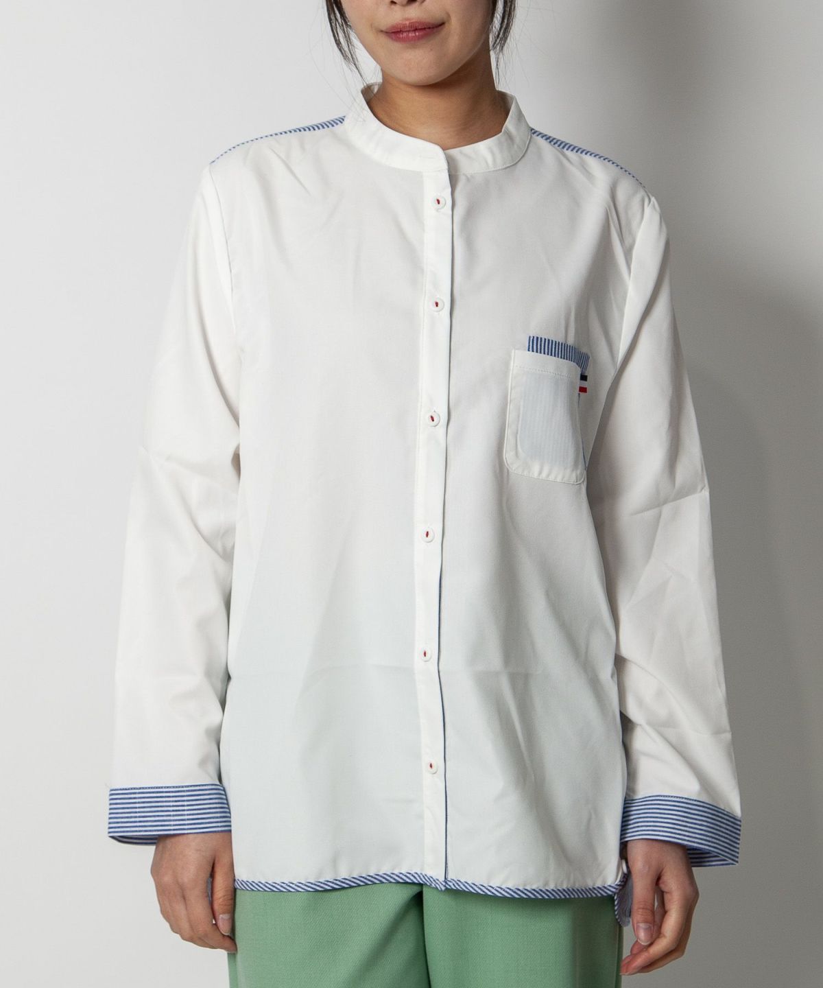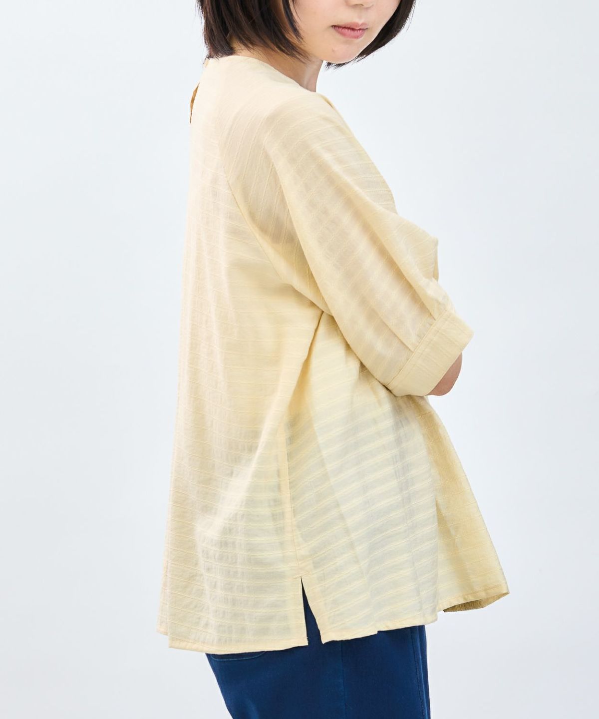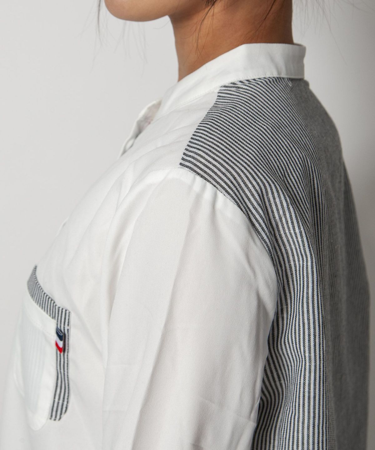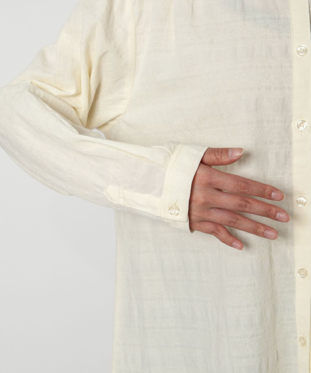 コットン織柄スタンドカラーシャツ