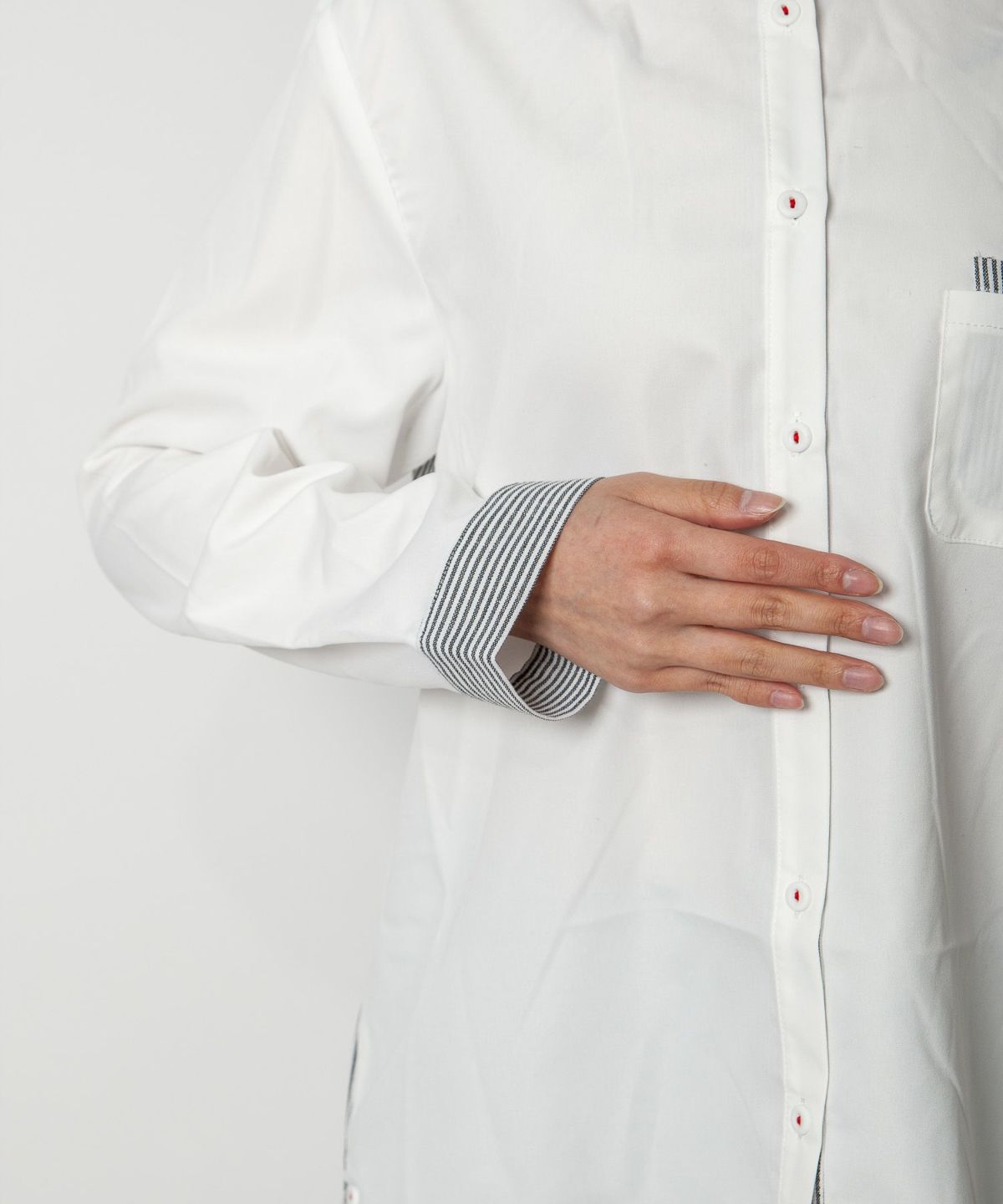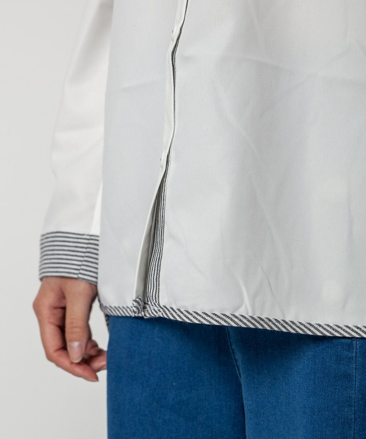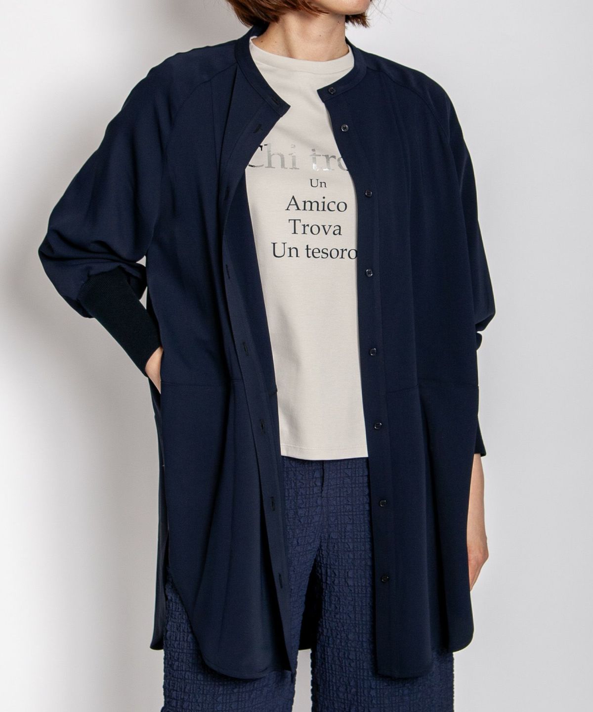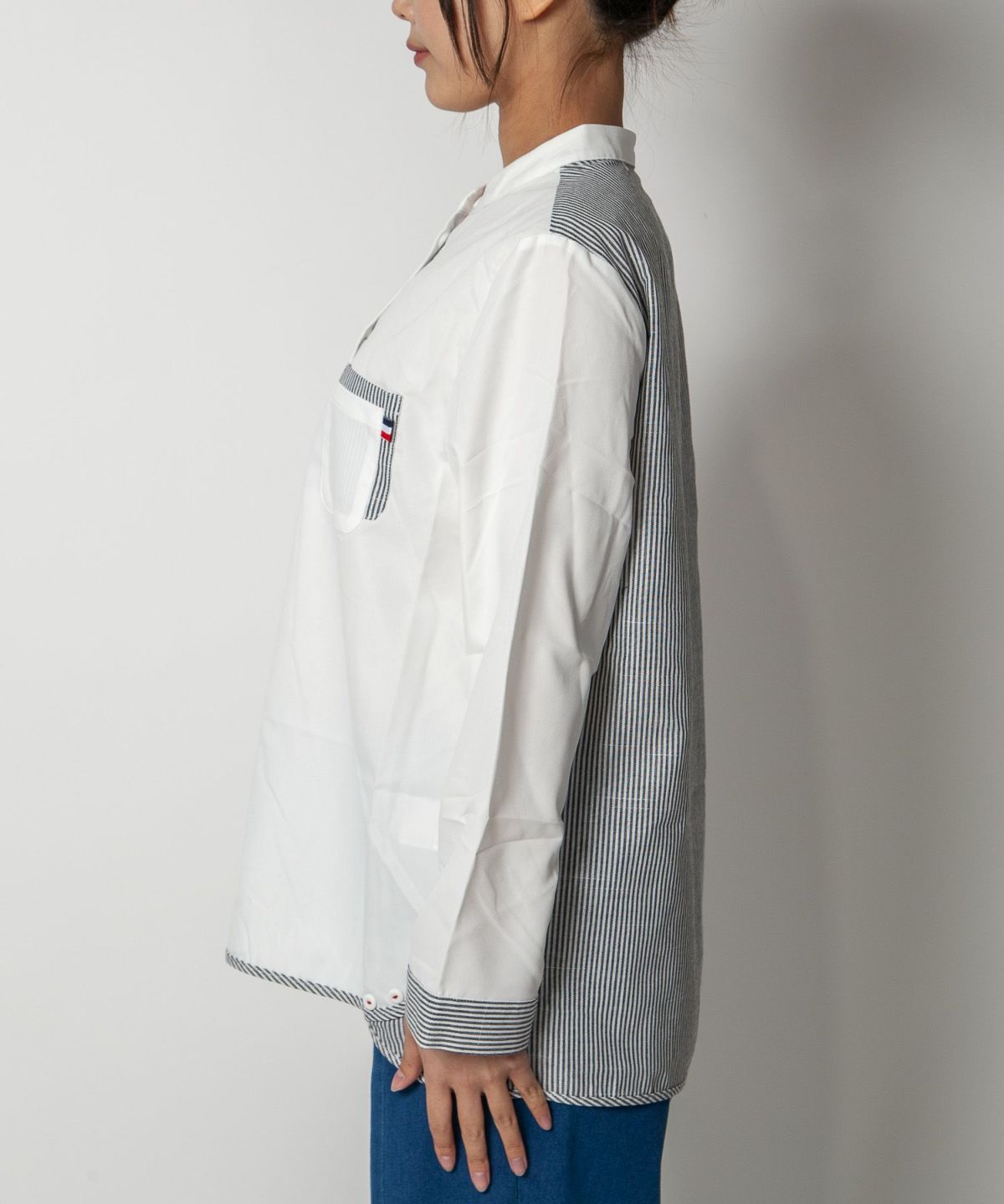コットン織柄スタンドカラーシャツ