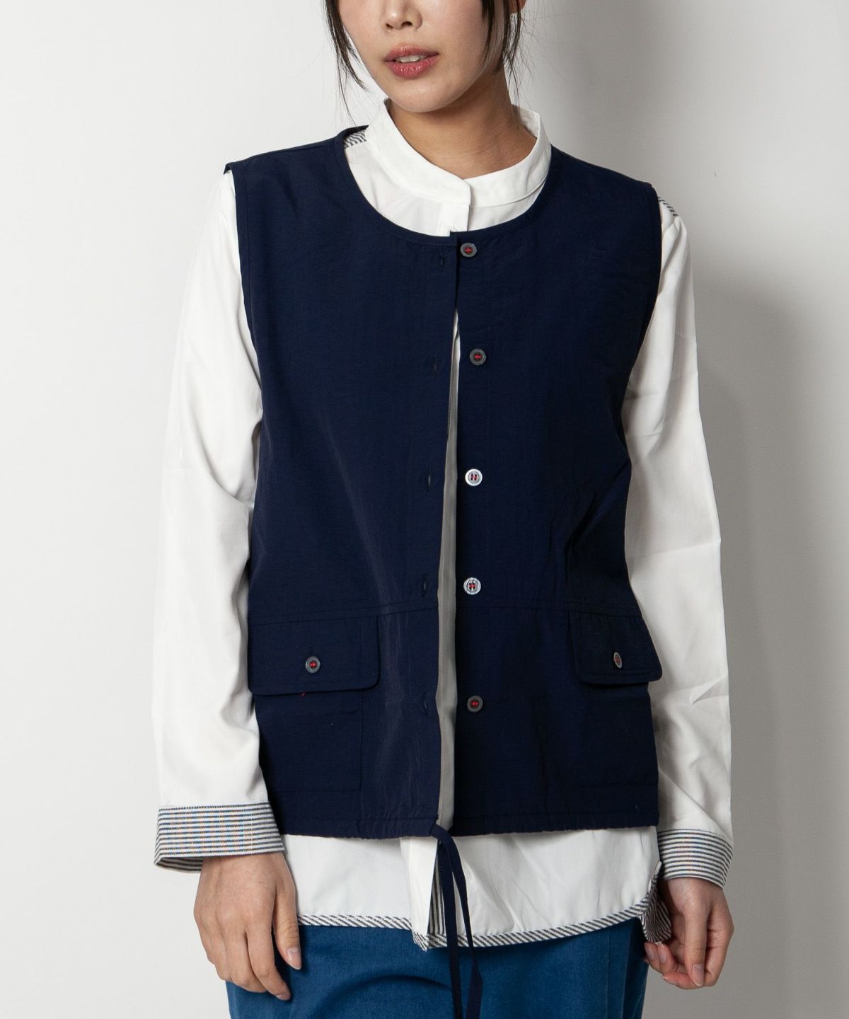 クルーネックポケット付きベスト
