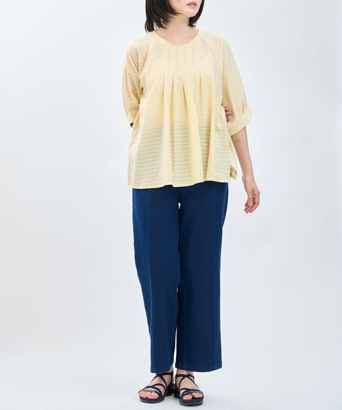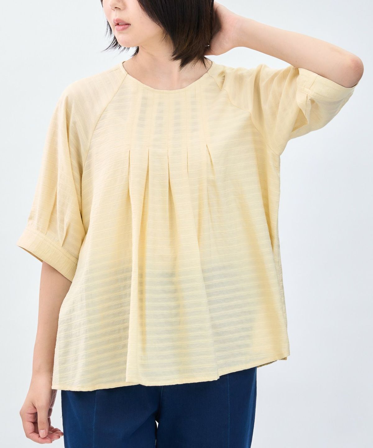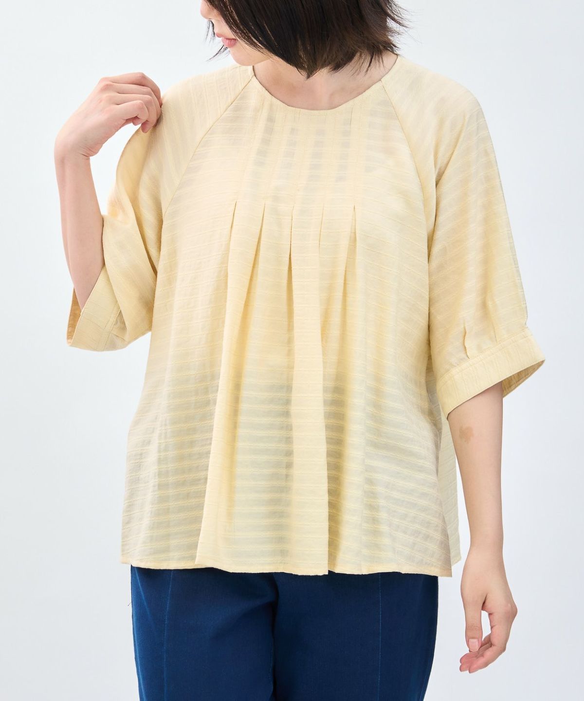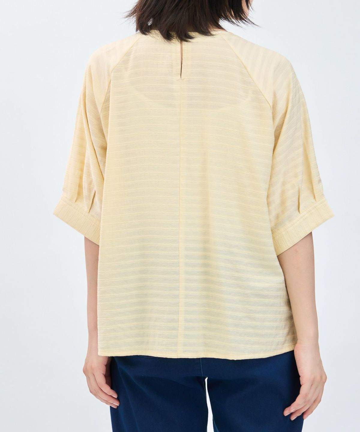 透かしボーダータックブラウス