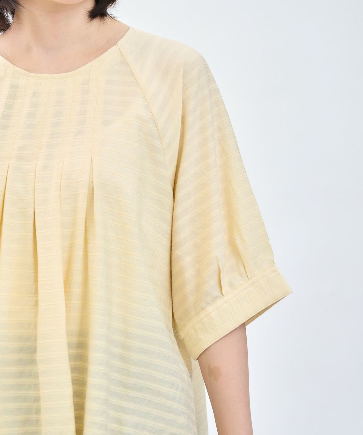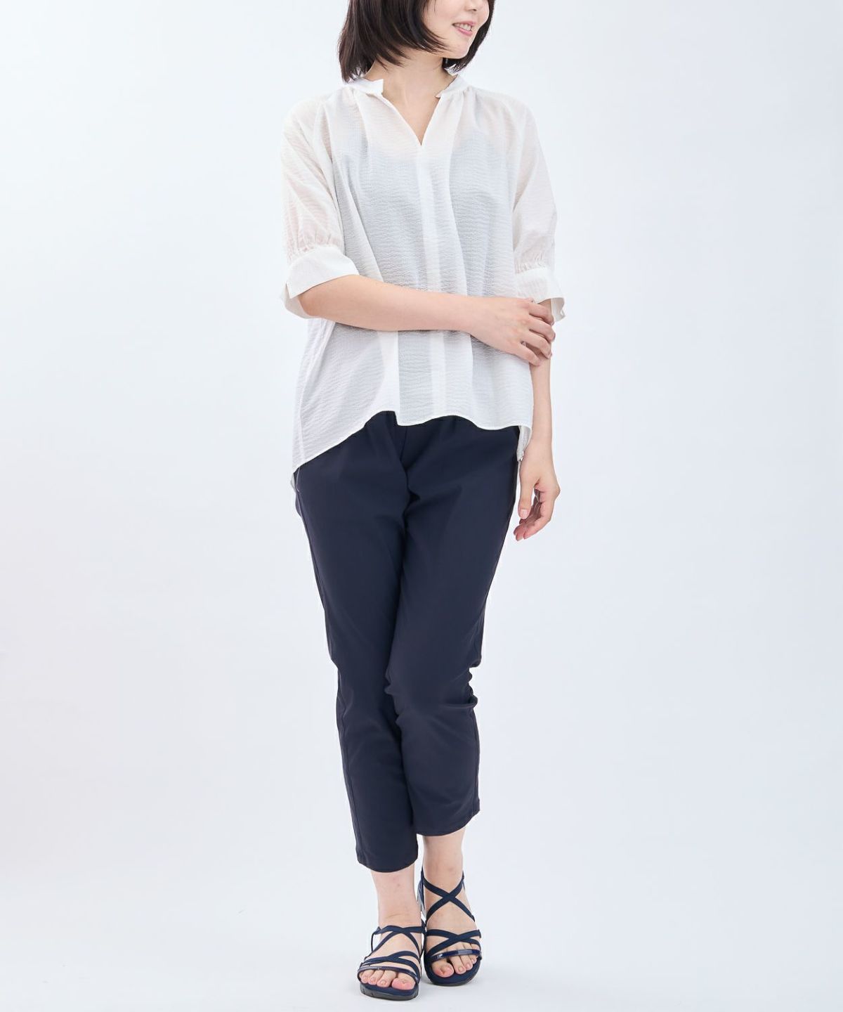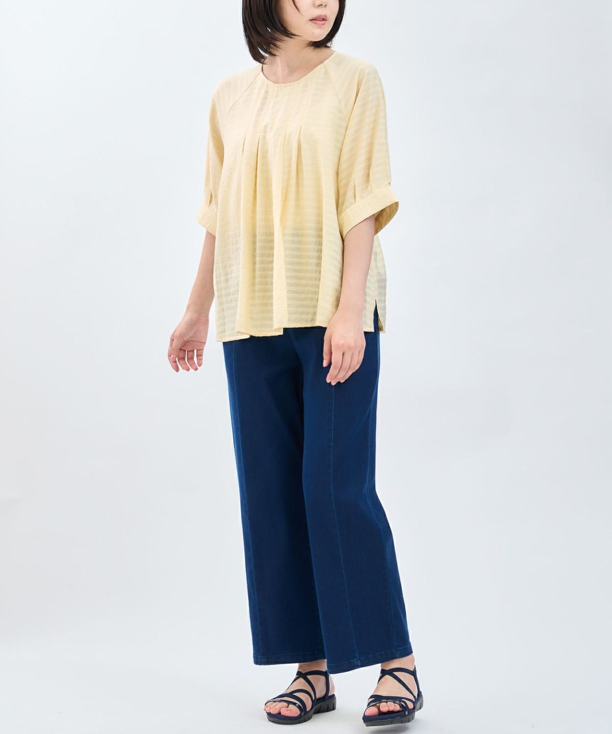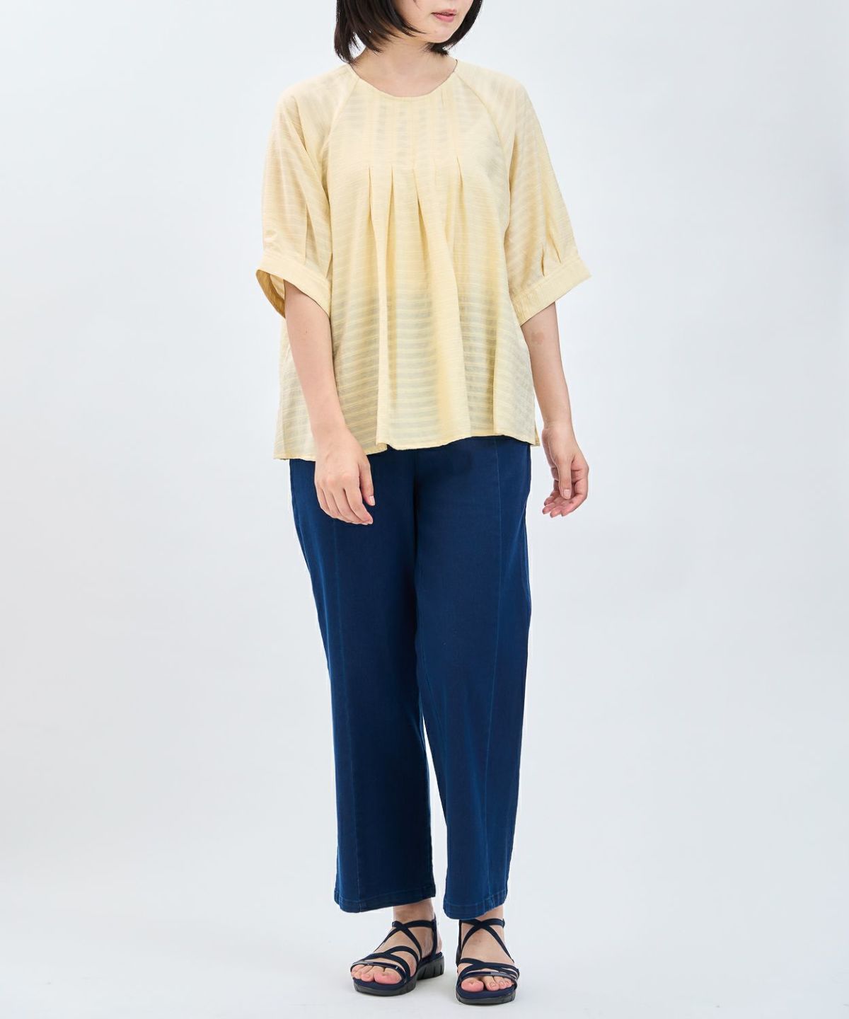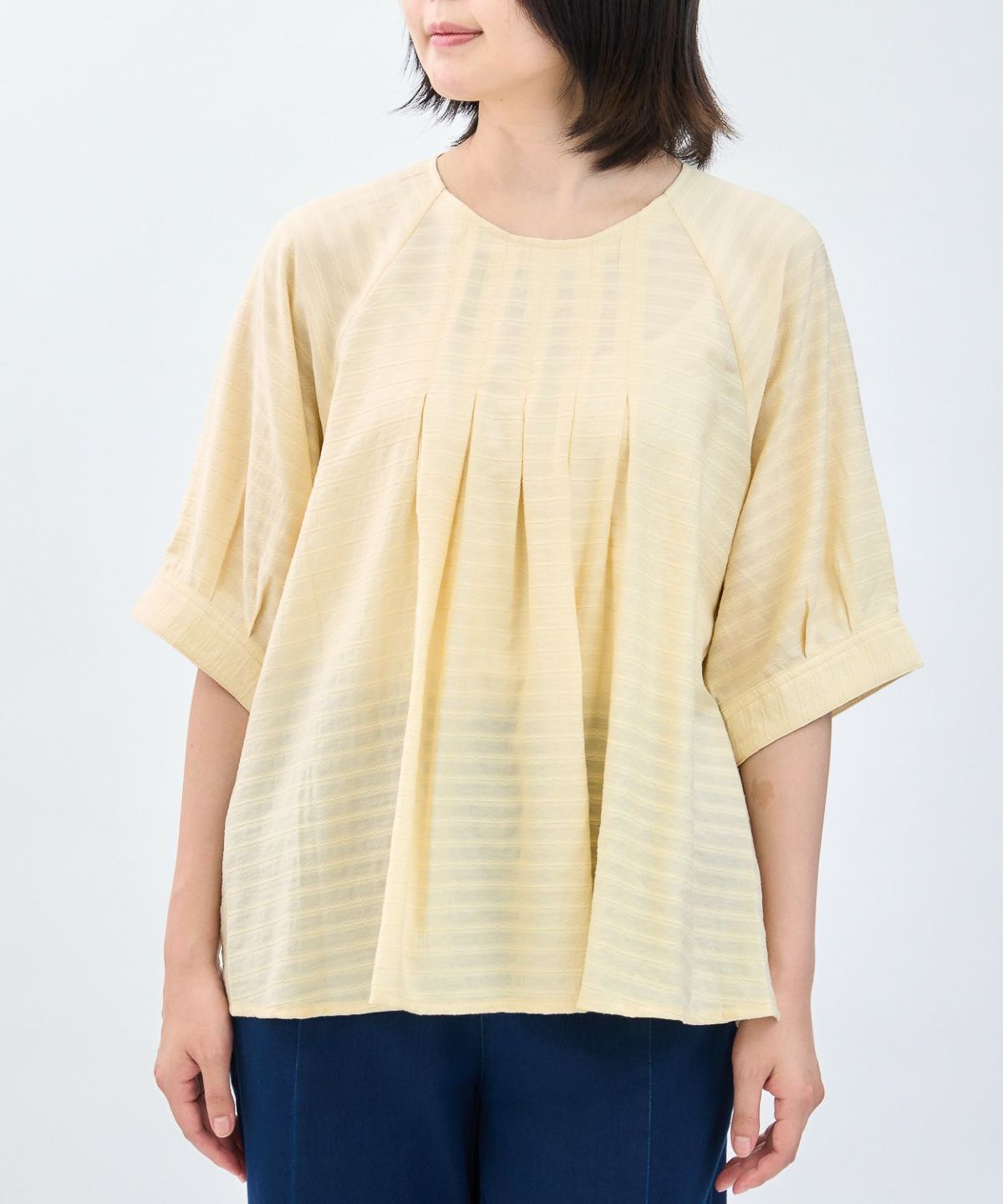 透かしボーダータックブラウス