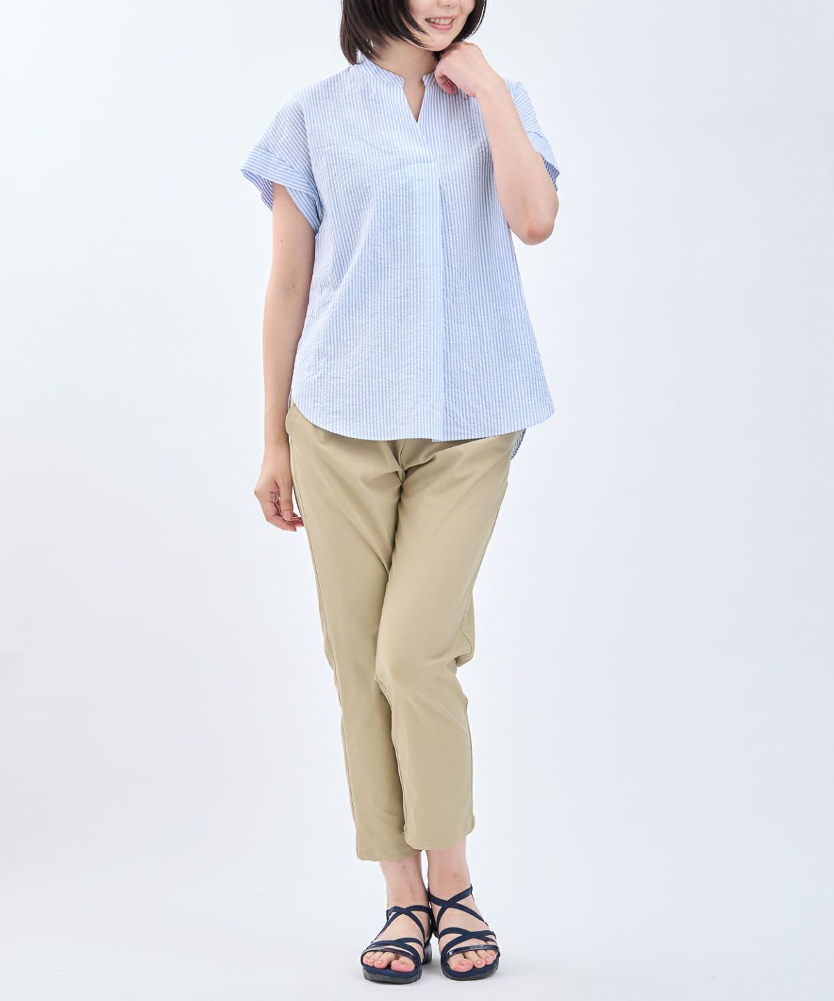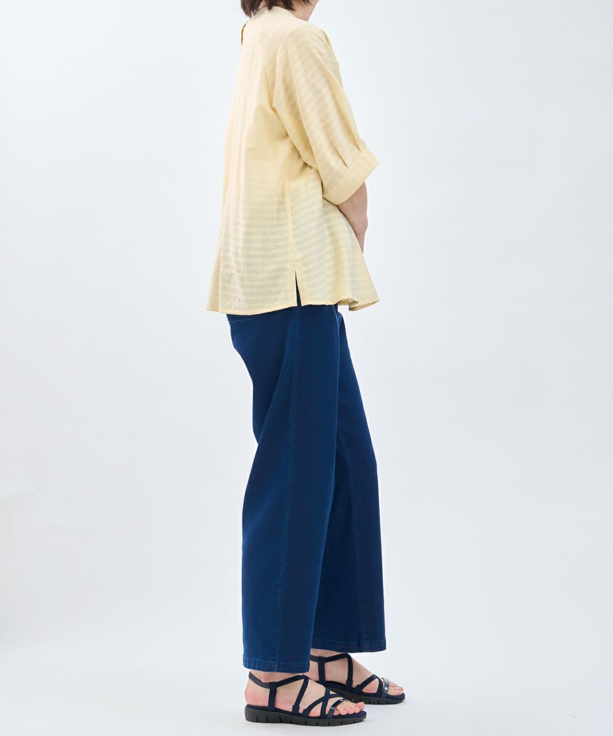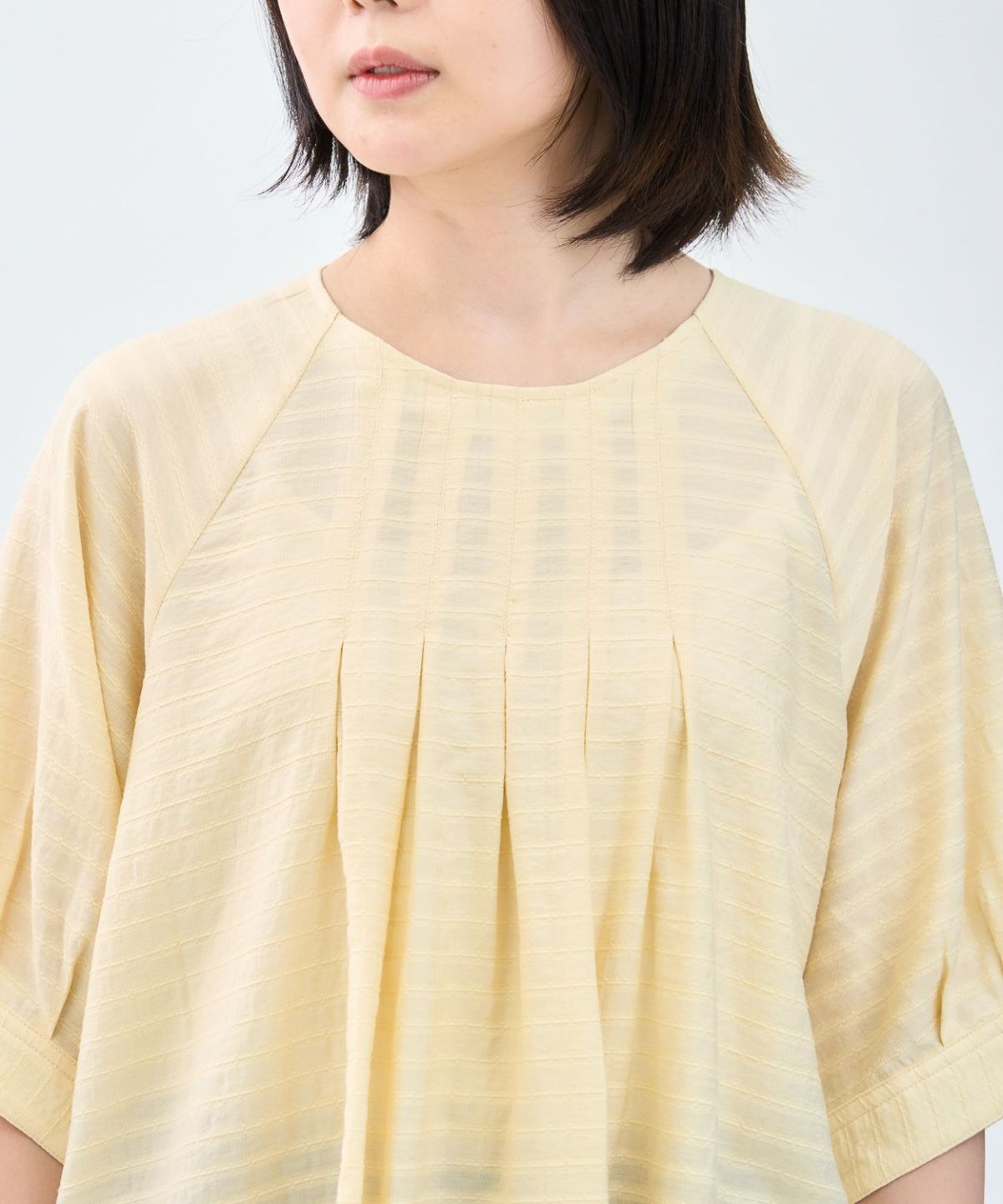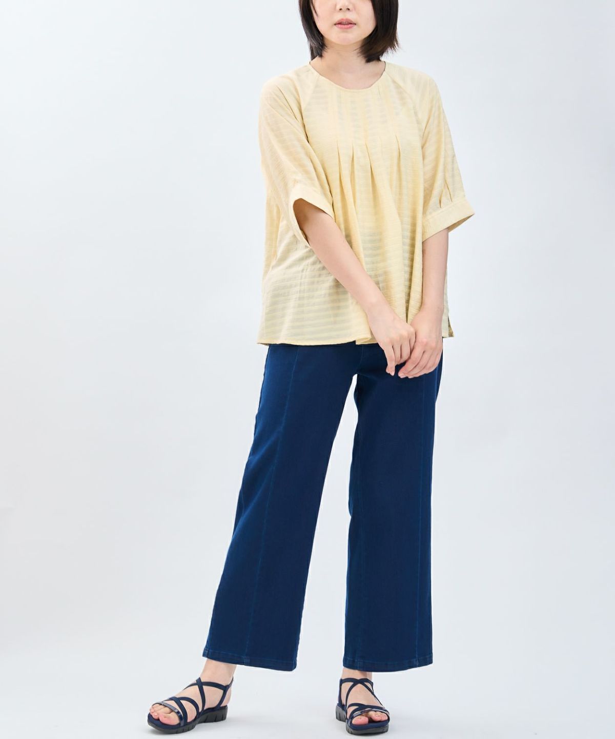 透かしボーダータックブラウス