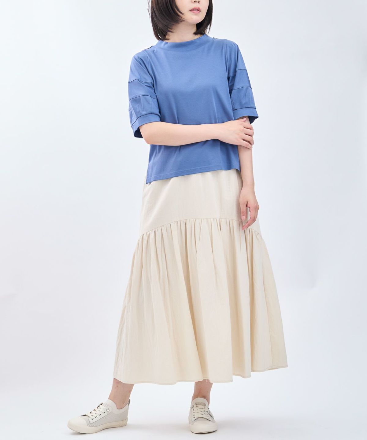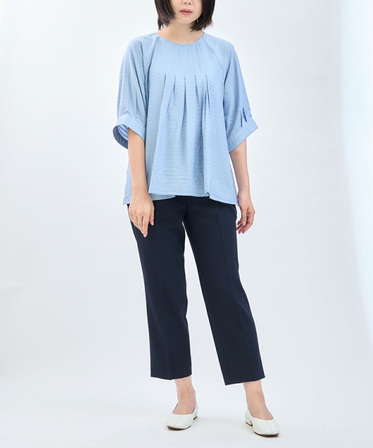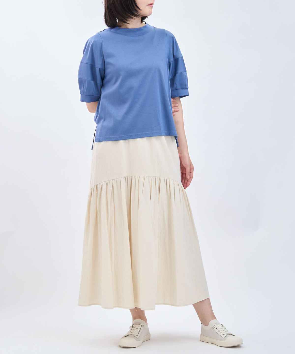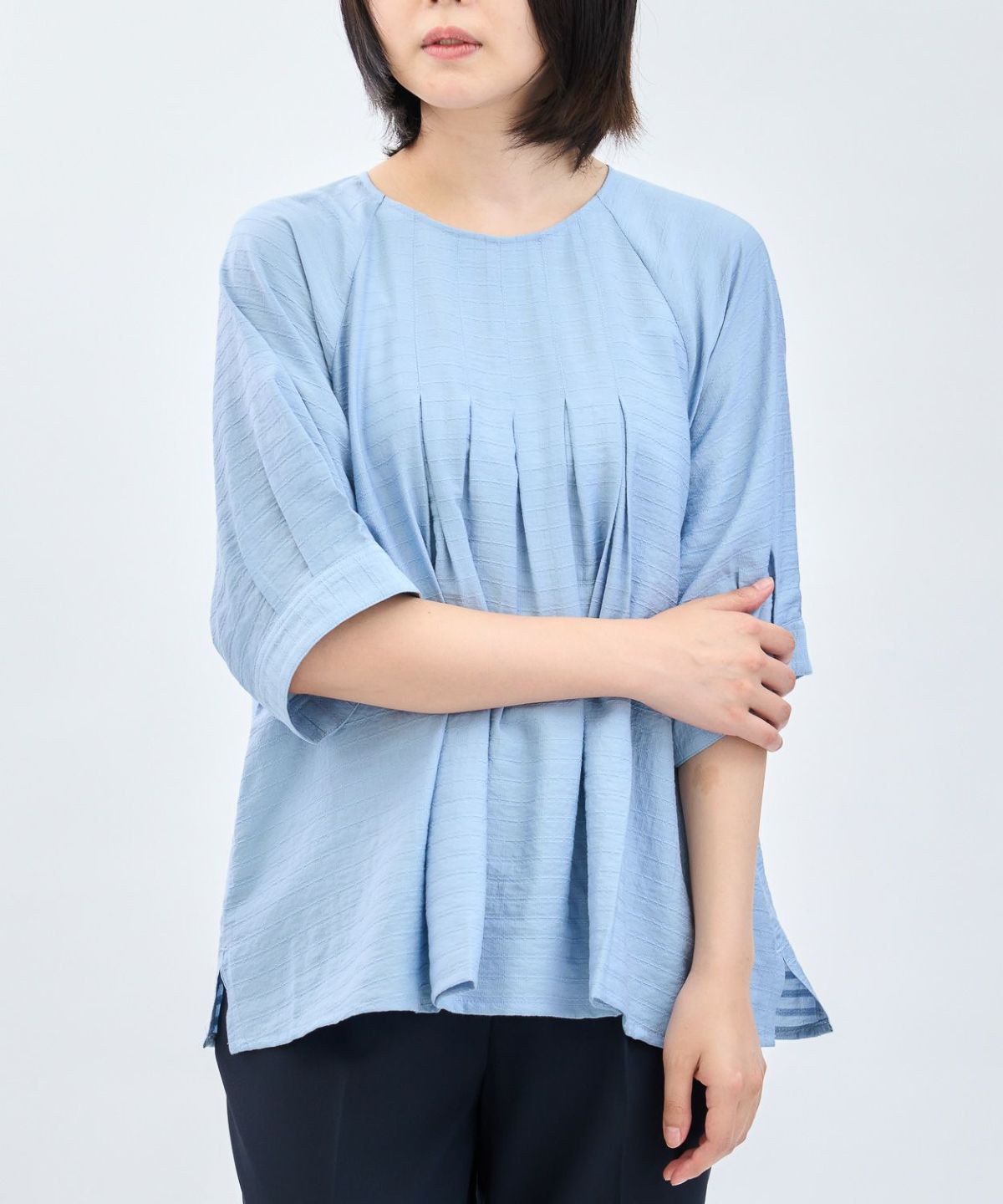 リブ袖チュニックブラウス