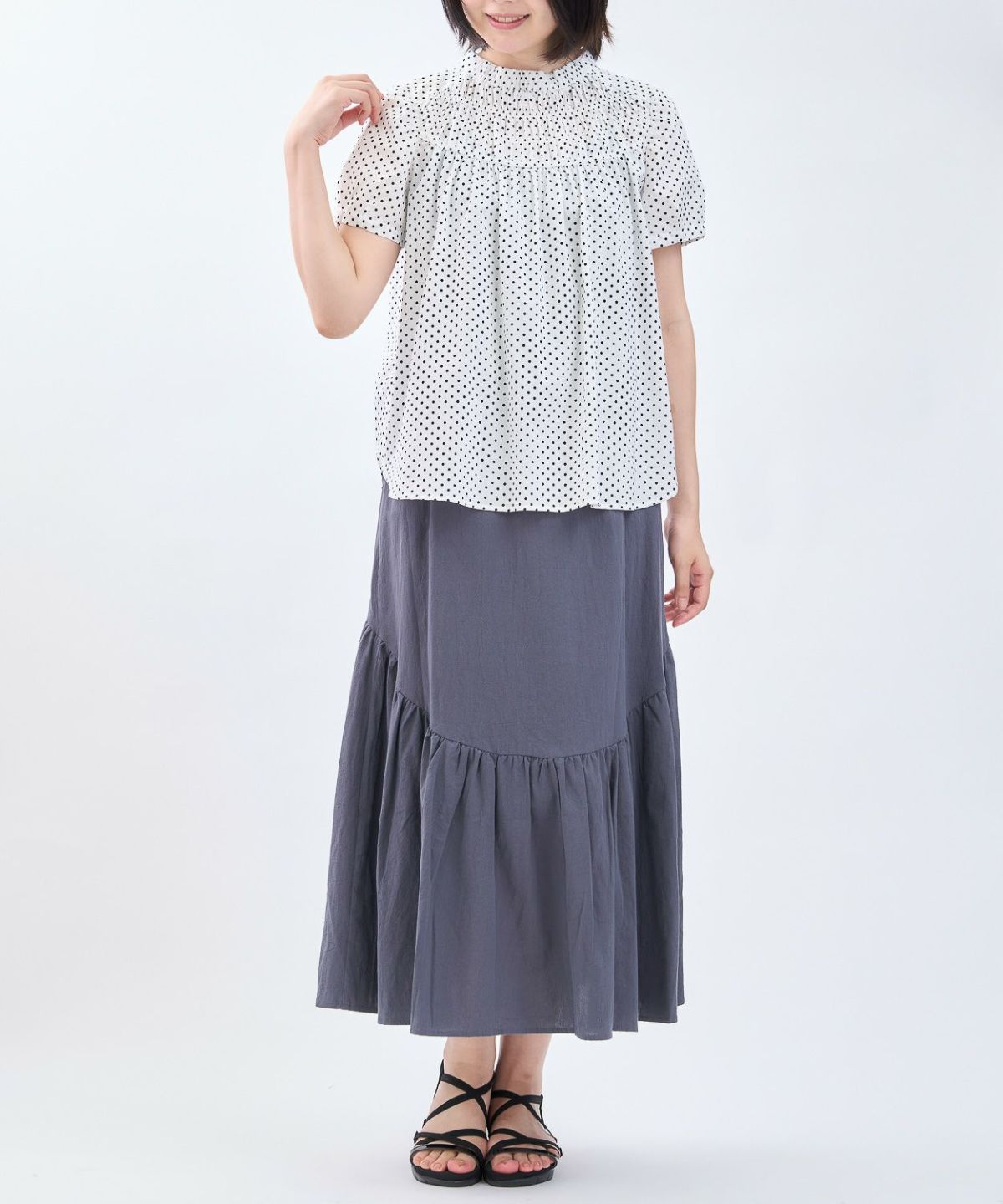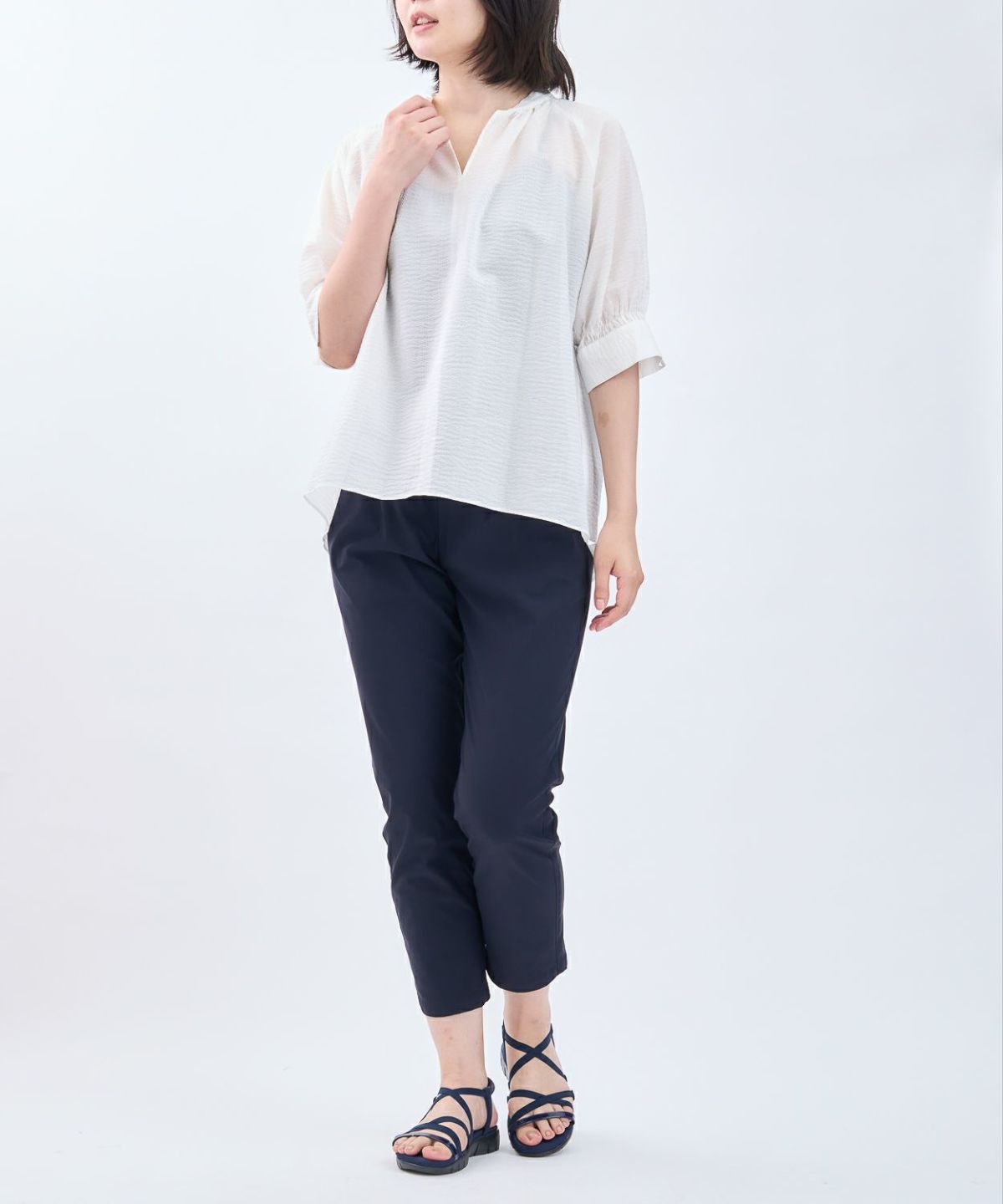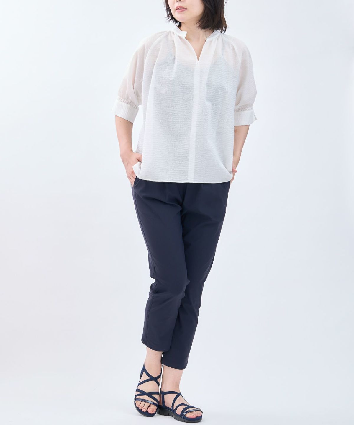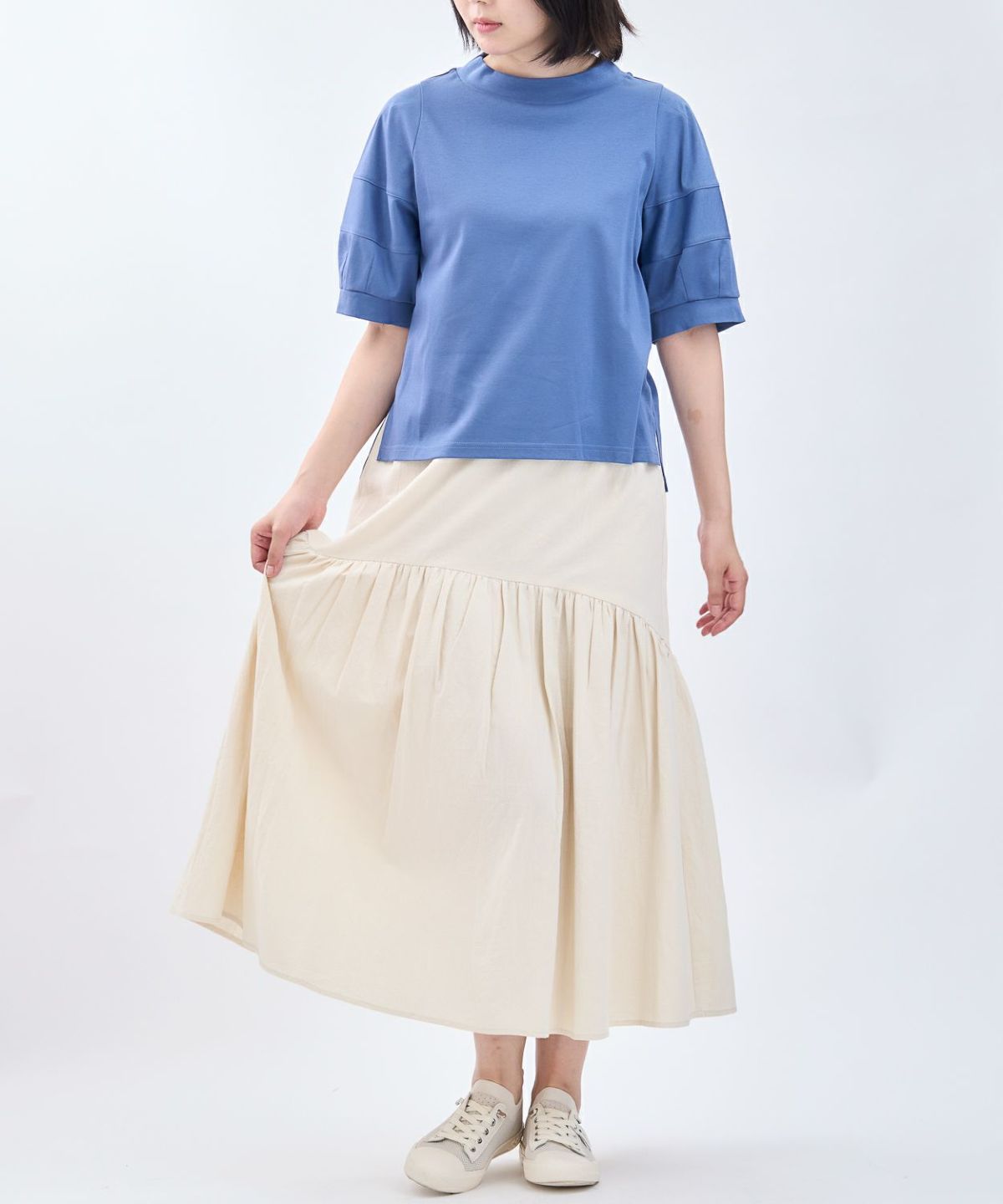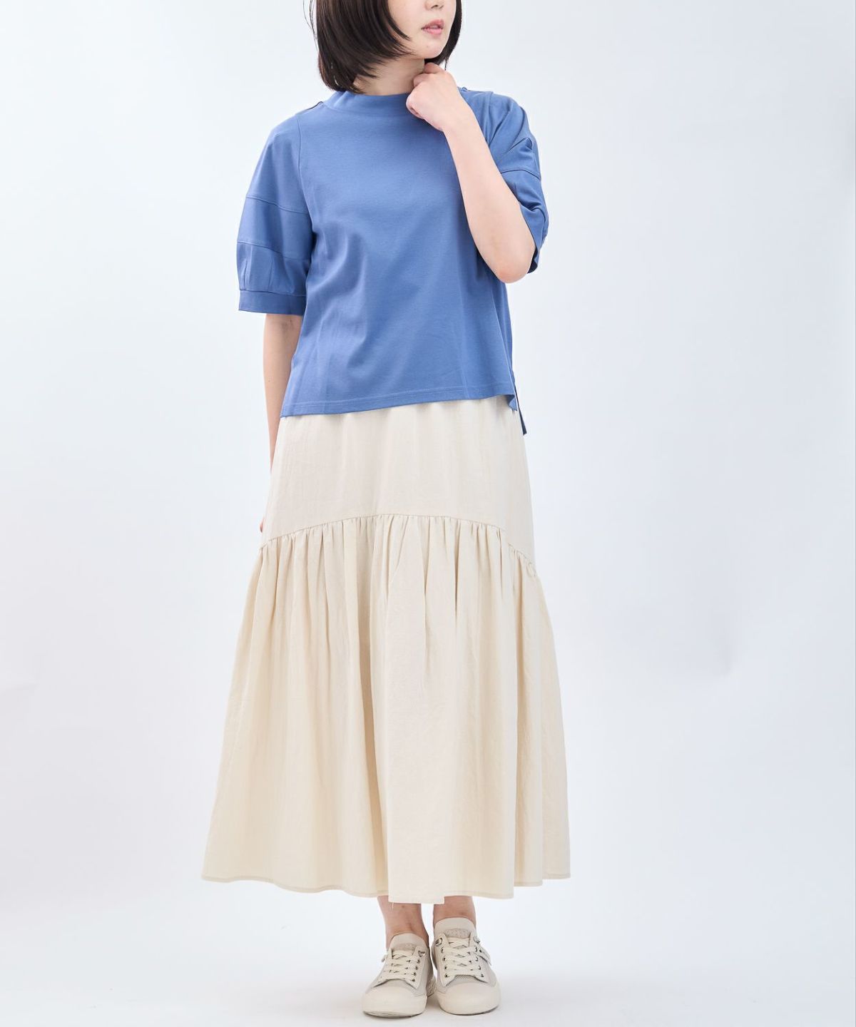 リブ袖チュニックブラウス