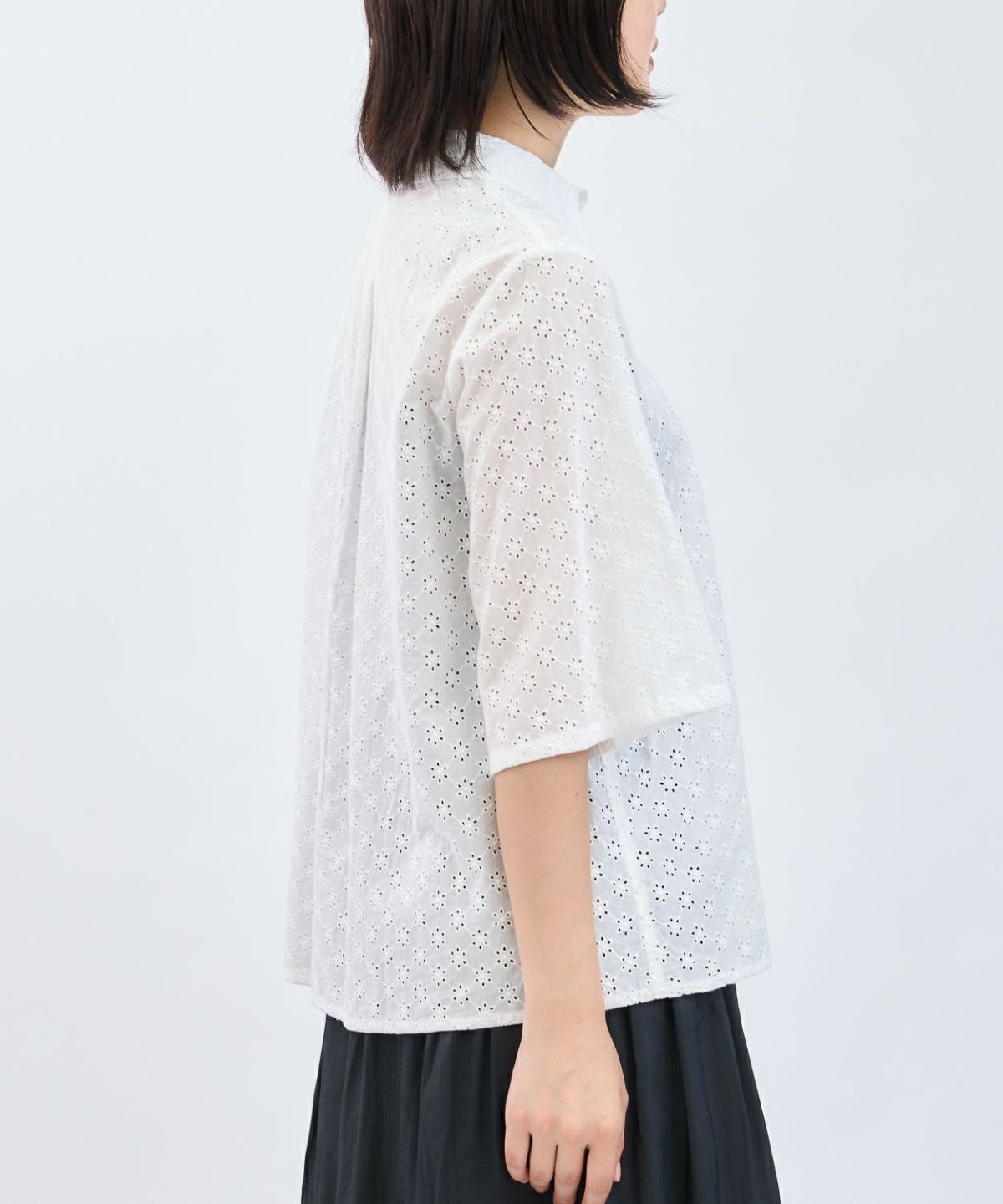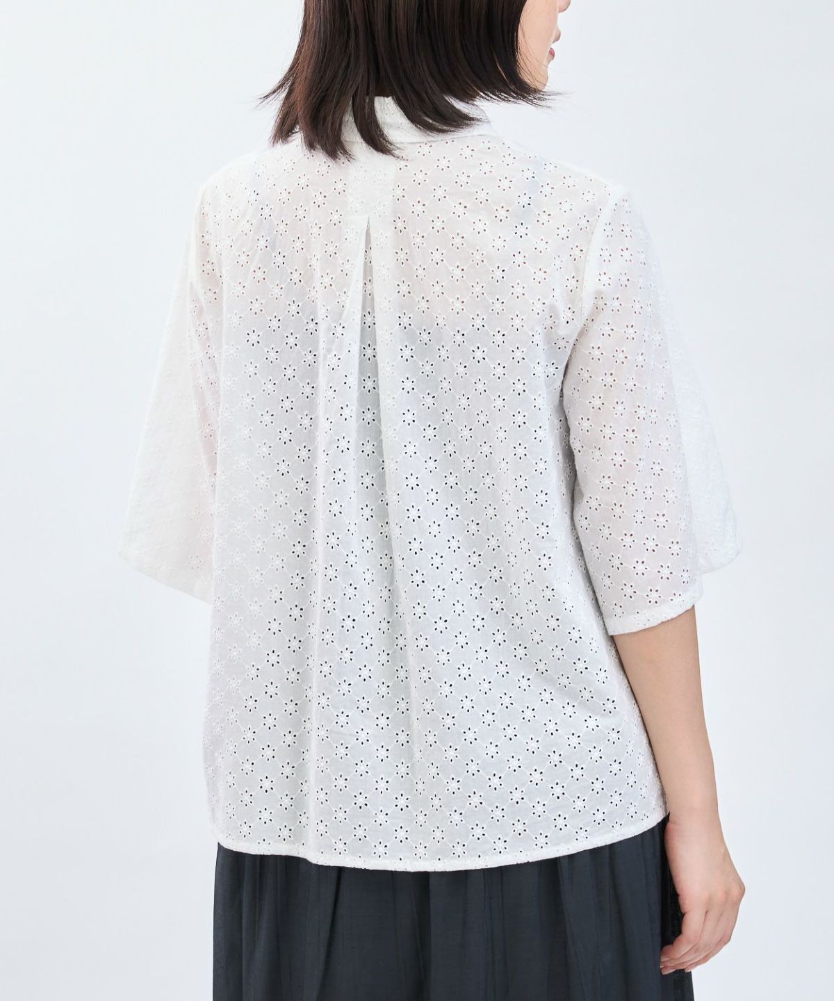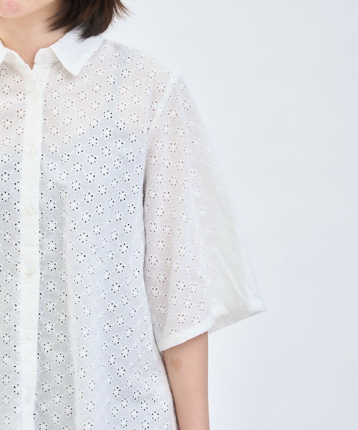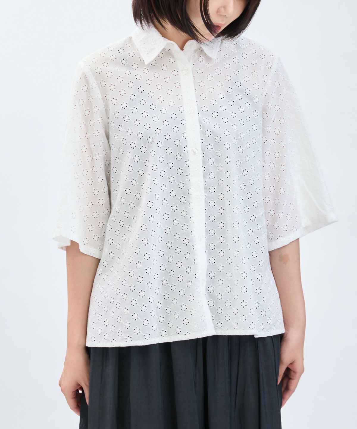 カットレース6分袖シャツ