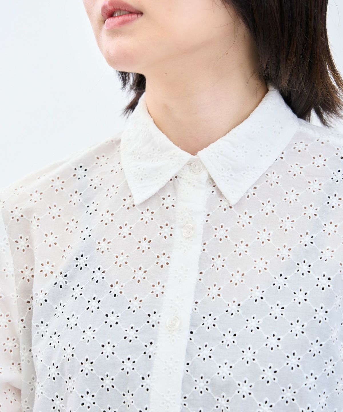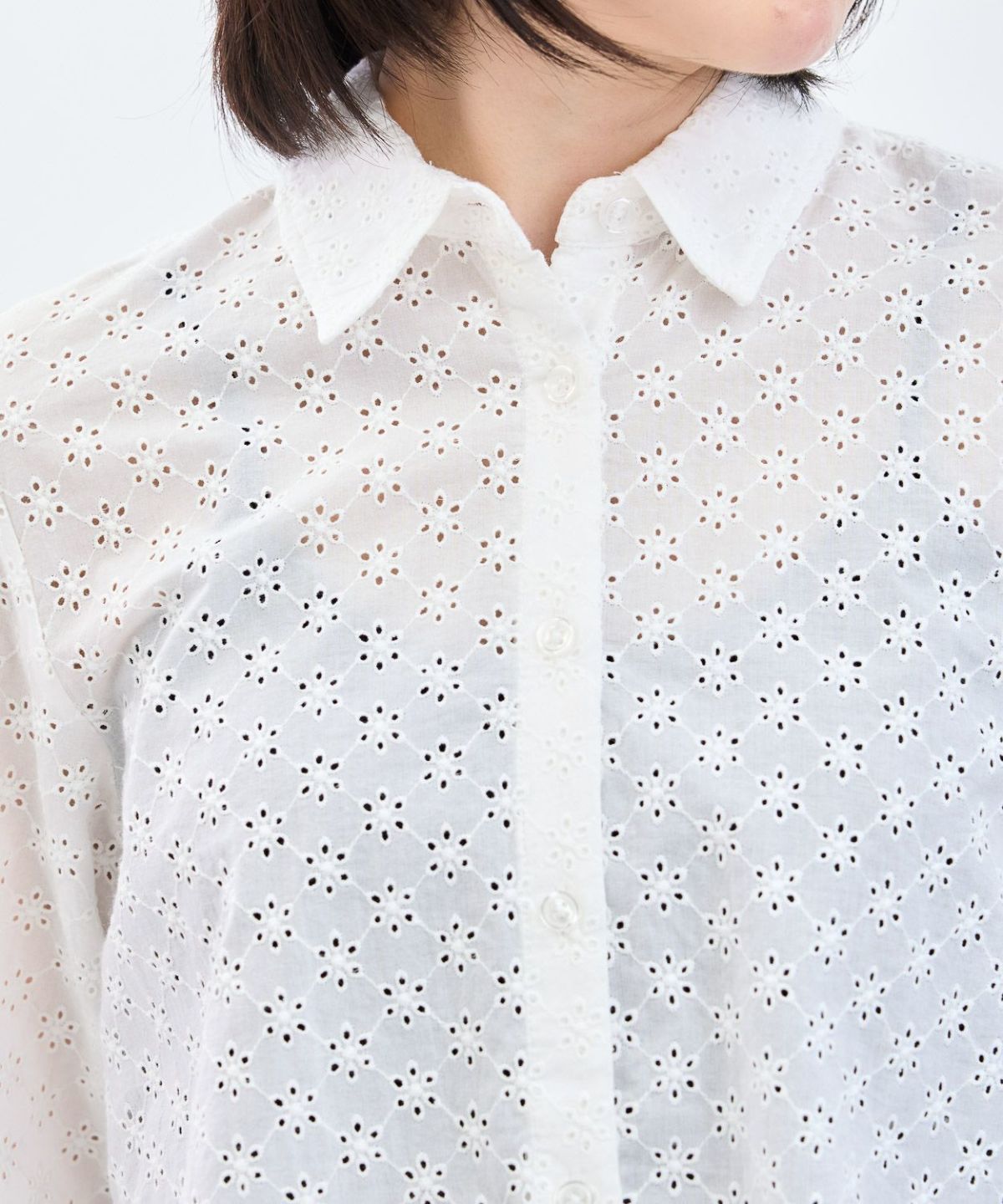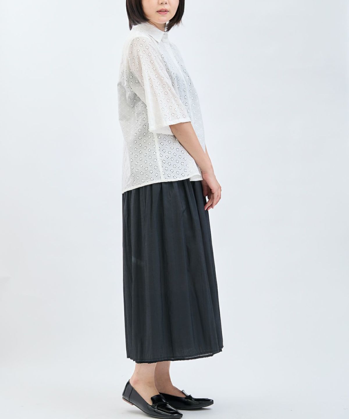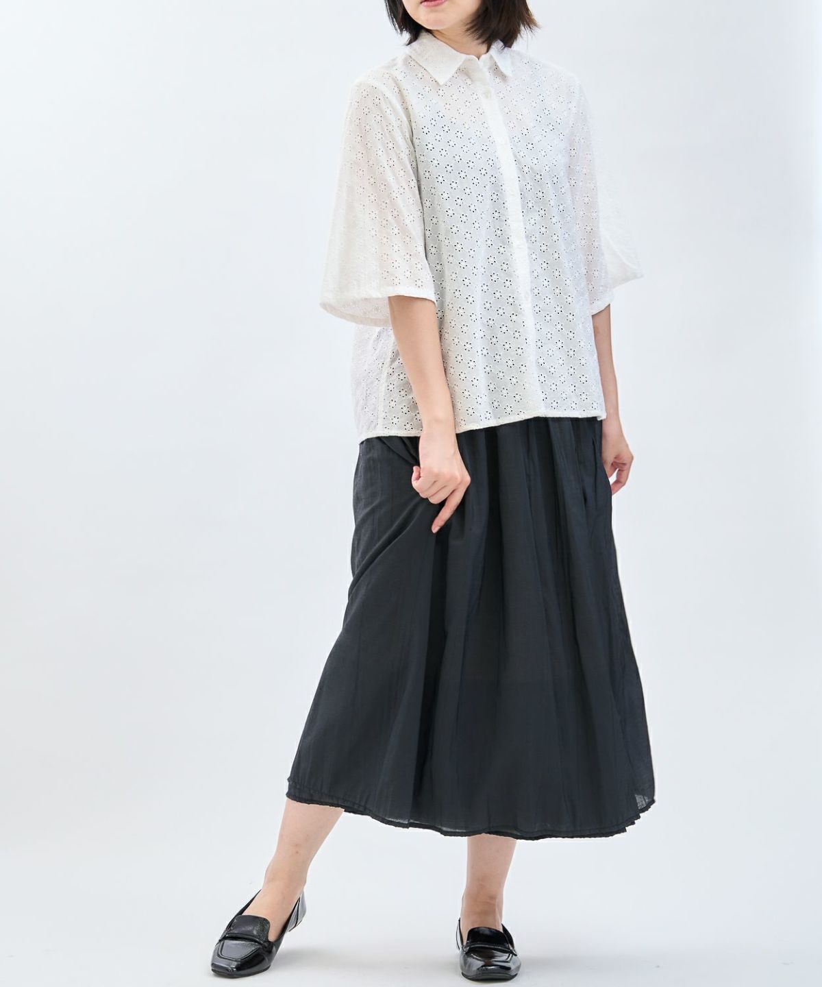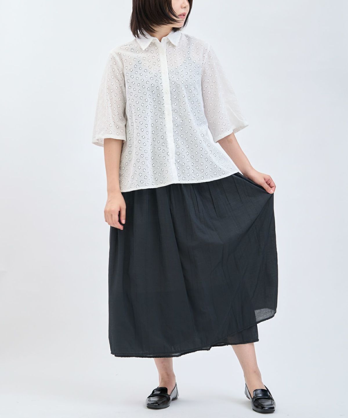 カットレース6分袖シャツ