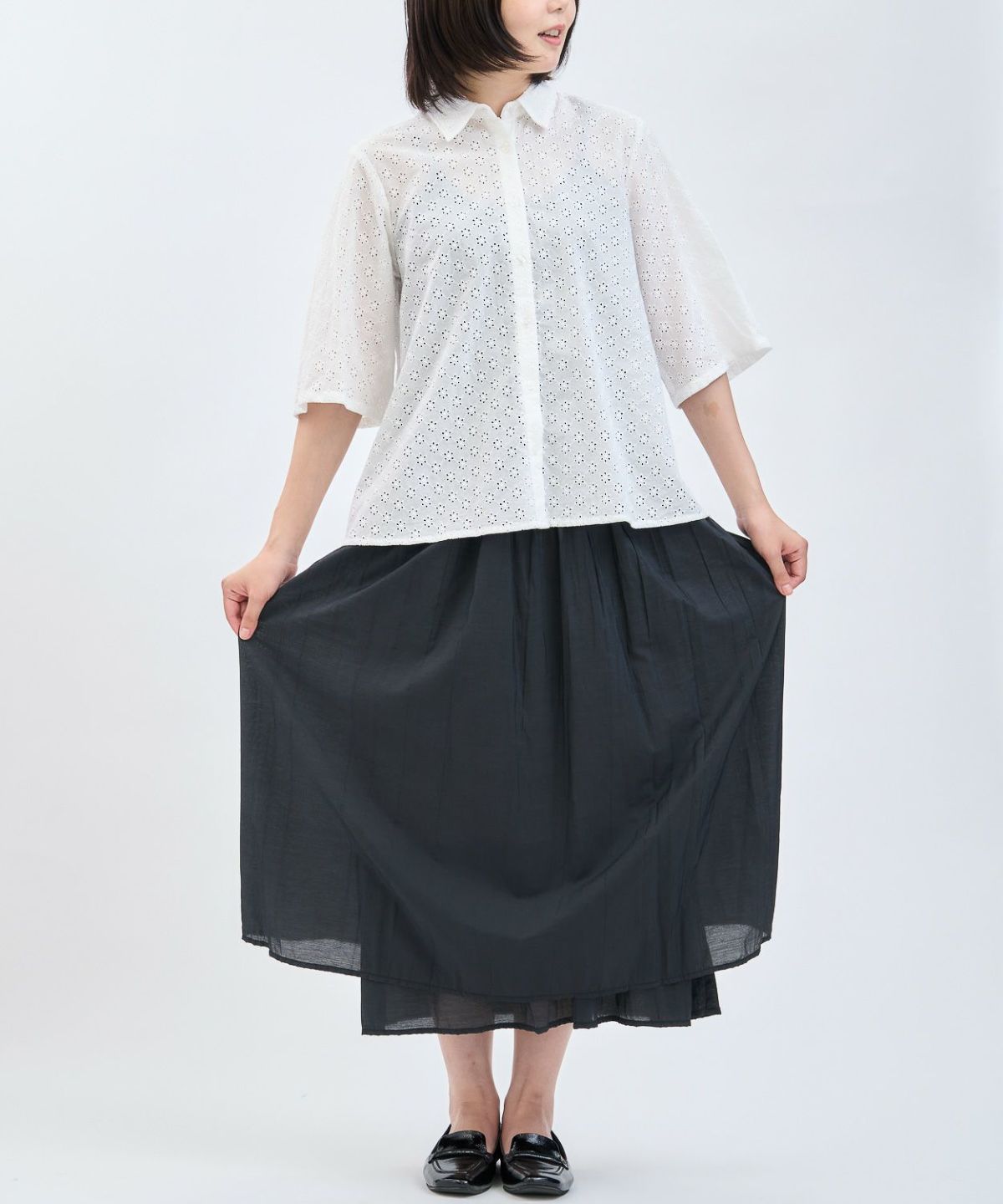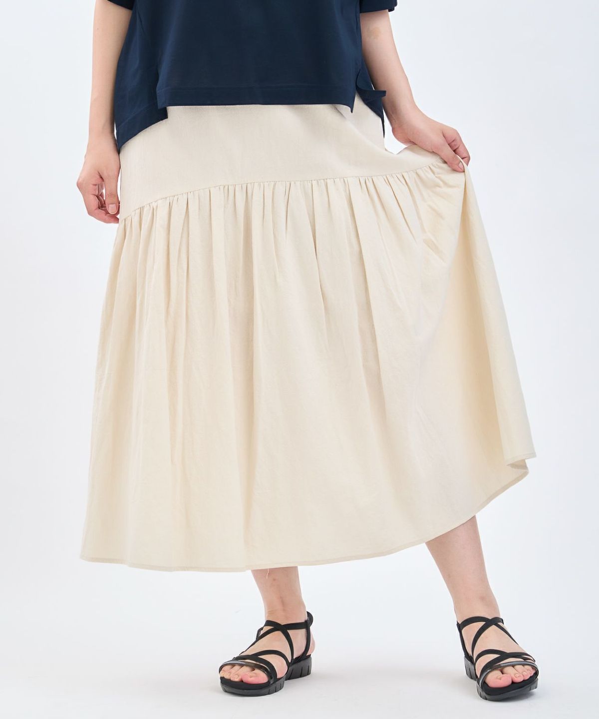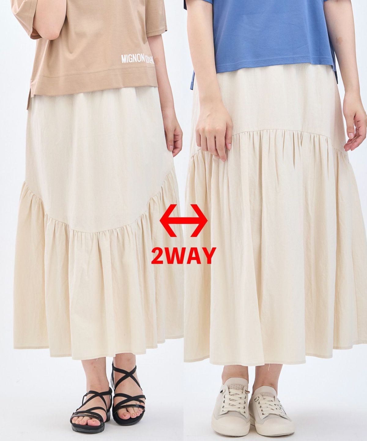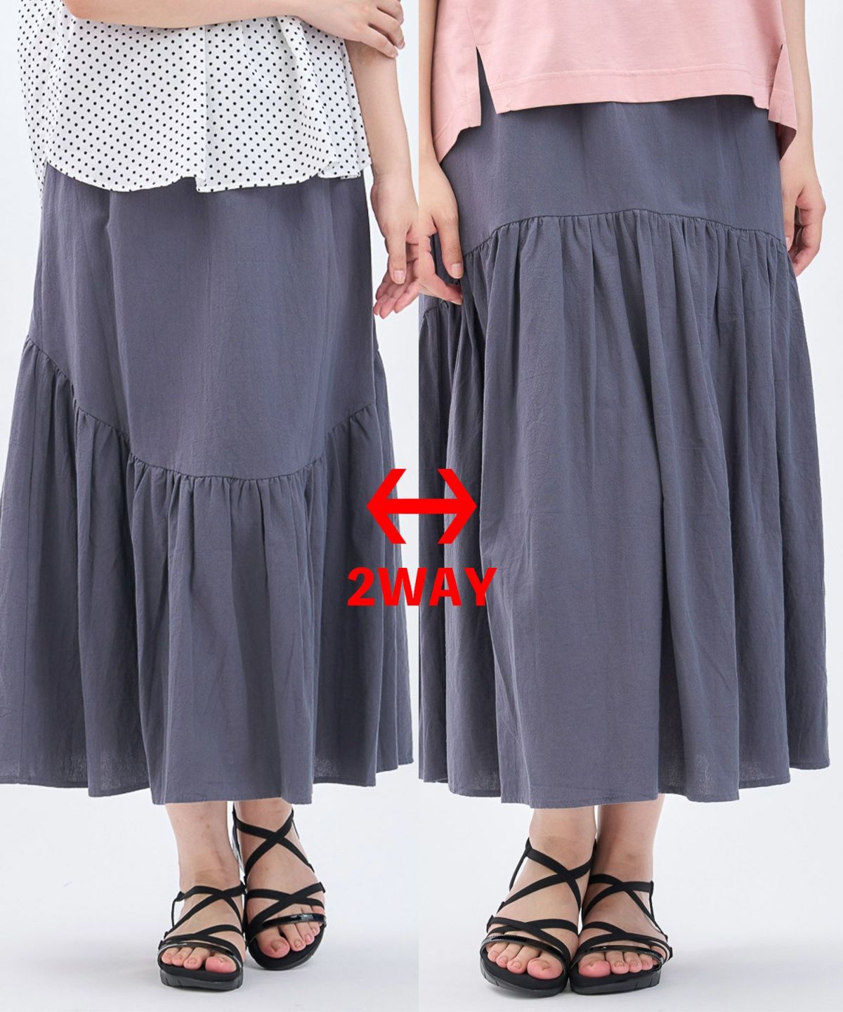 綿エンボス前後2WAYフレアスカート