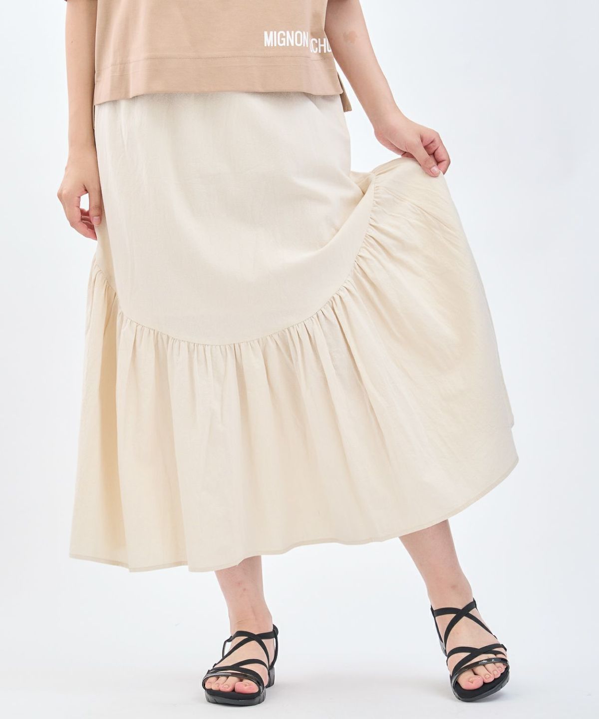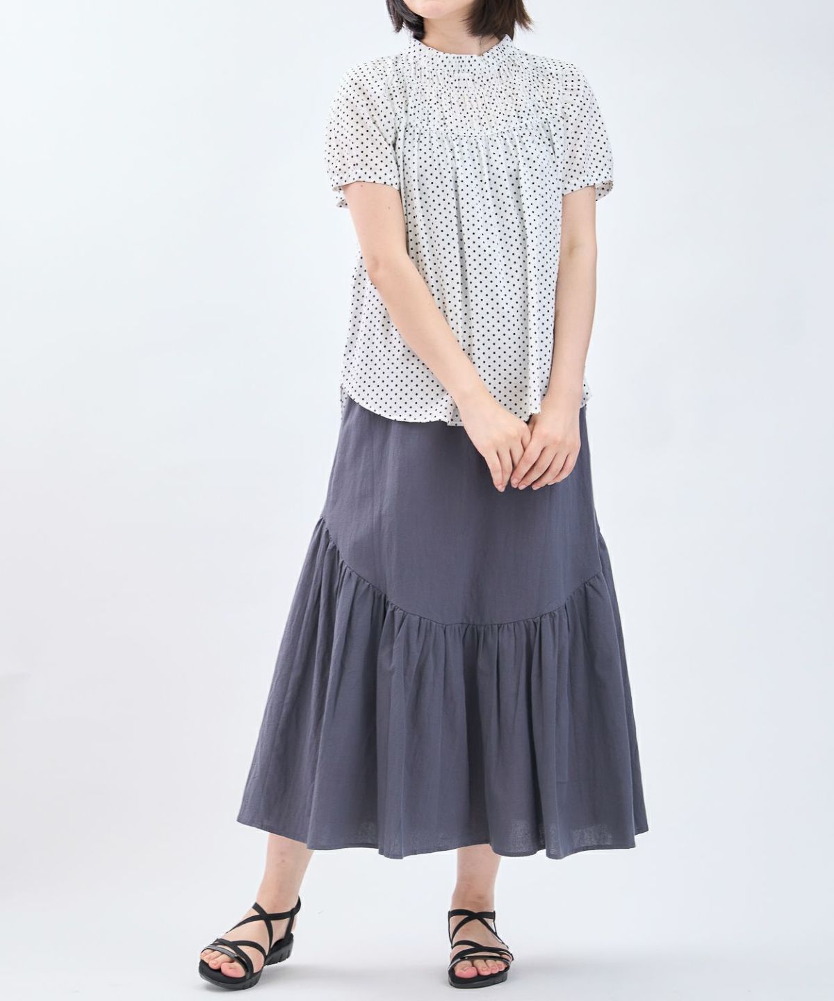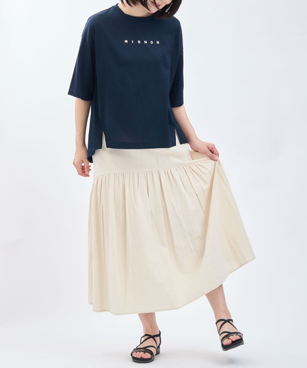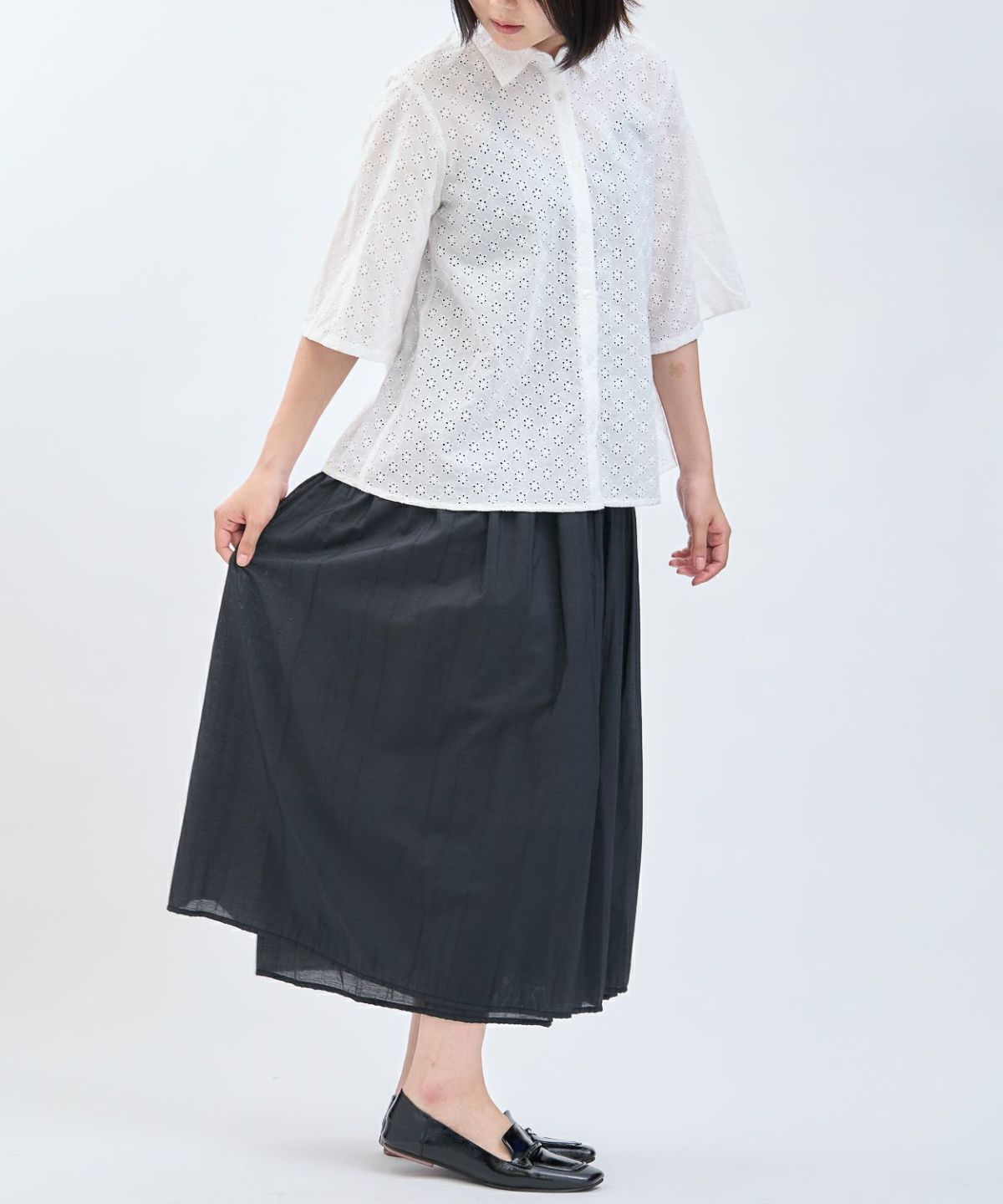 綿エンボス前後2WAYフレアスカート