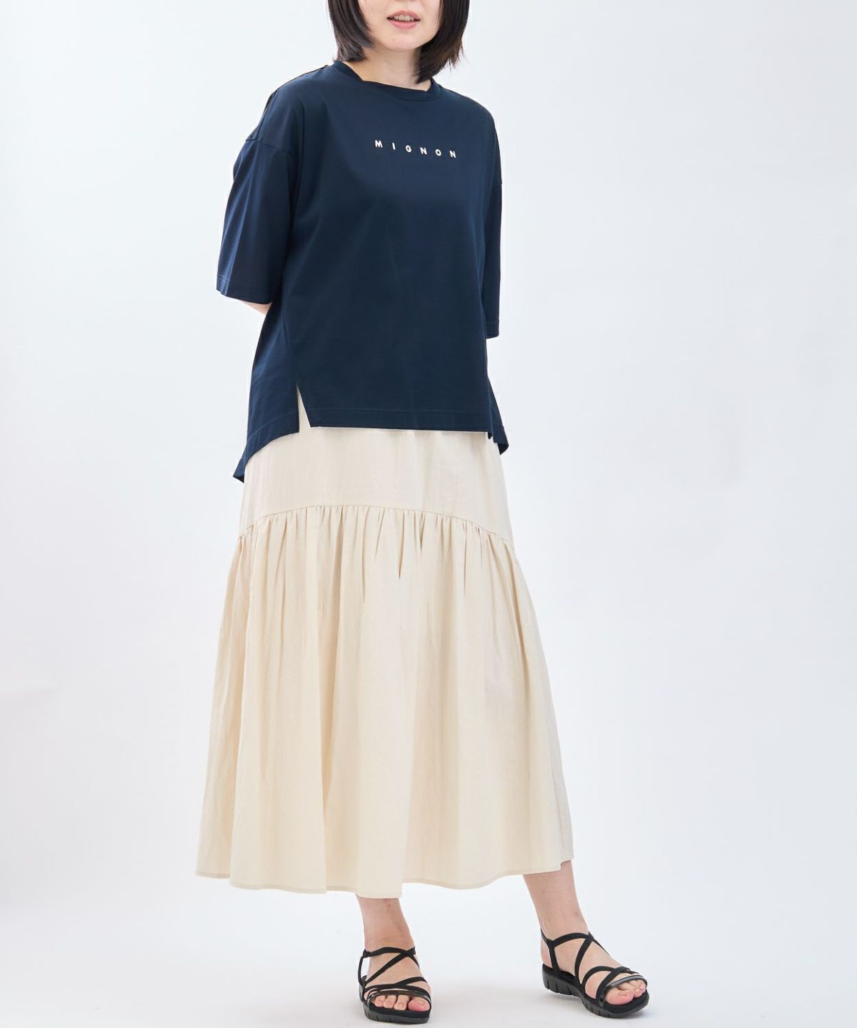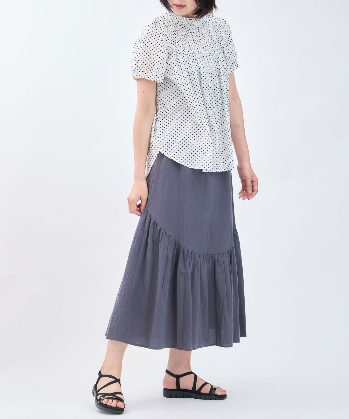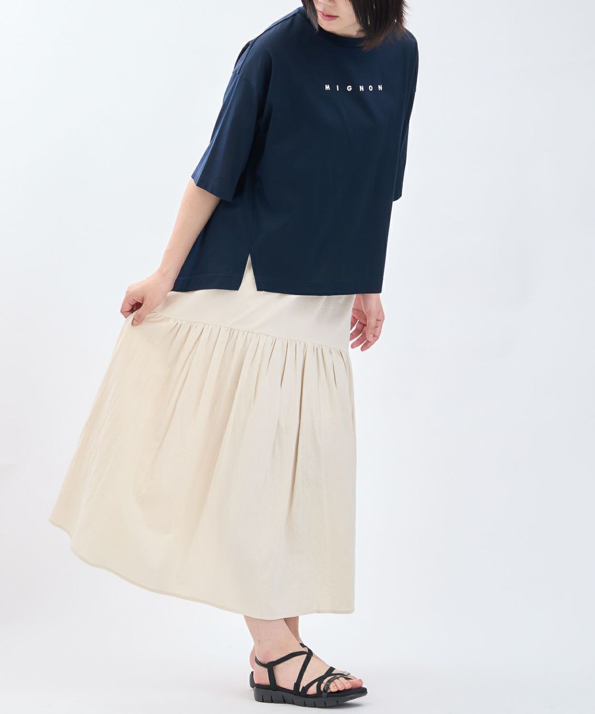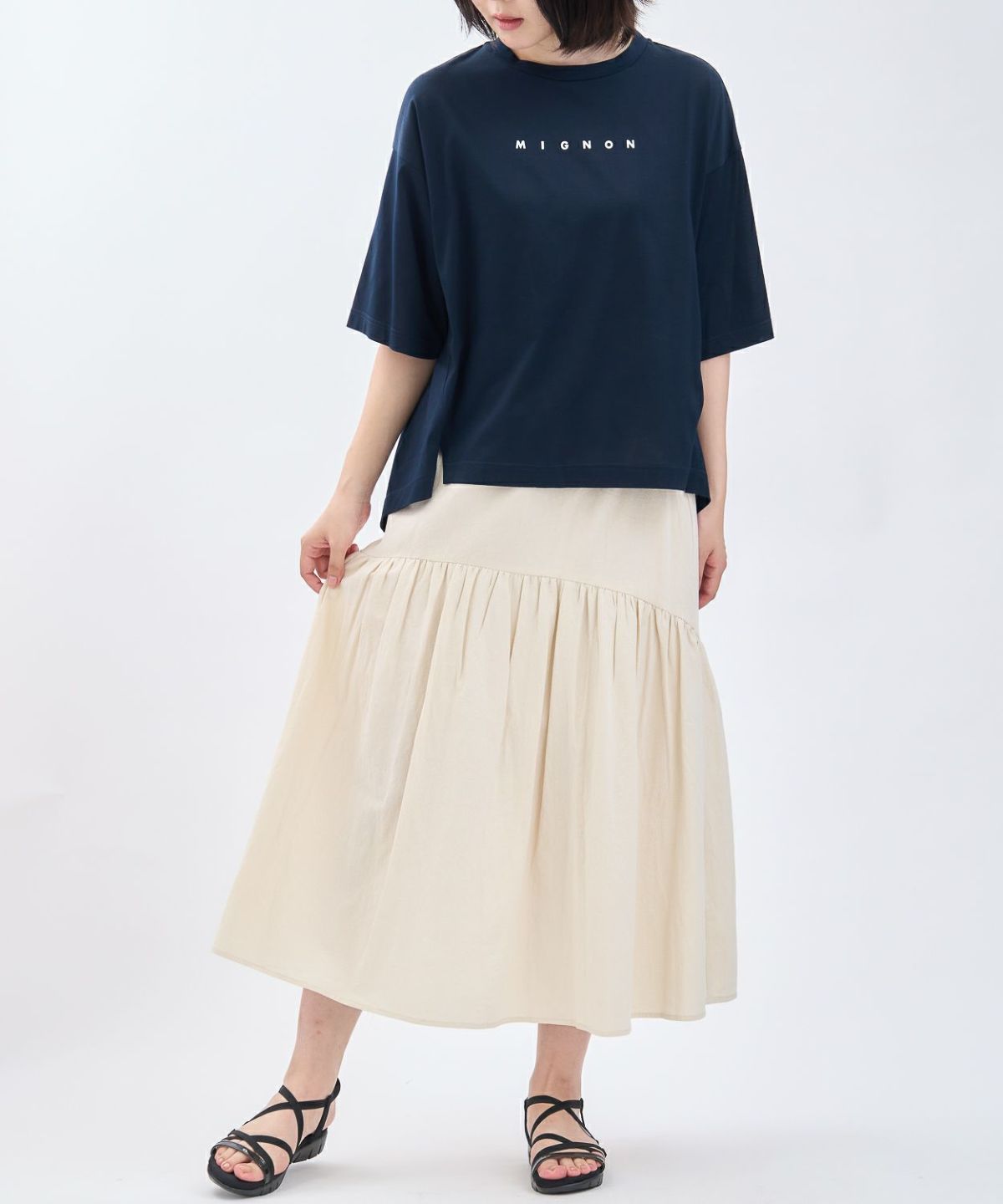 綿エンボス前後2WAYフレアスカート