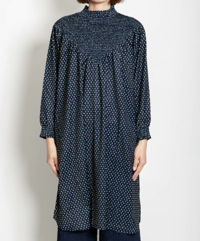 細かいプリントに、ポイントとなる色が使用されているため、アウターや重ね着するボトムスと色を合わせた、カラーコーディネートもお楽しみいただけます。