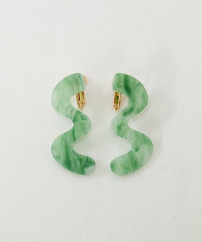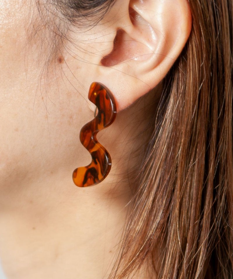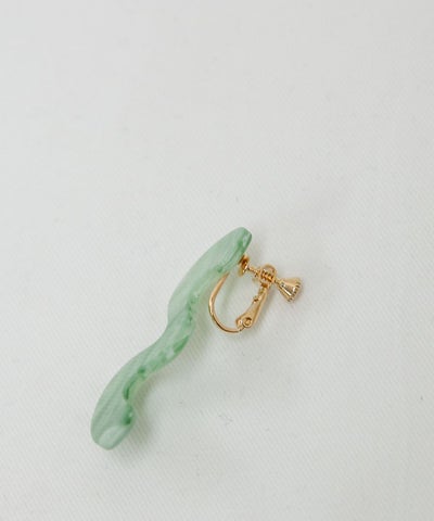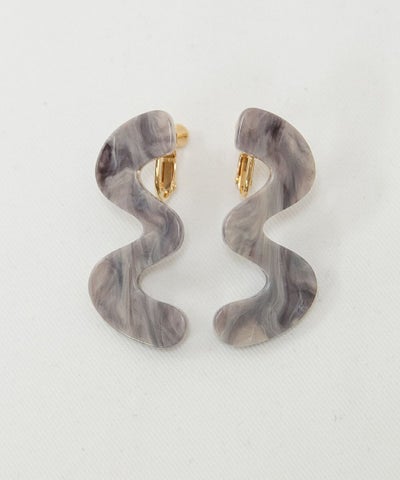 【デザイン】 ・カーブのデザインが遊び心のあるデザイン。 ・特徴のあるデザインながら、クリアなマーブル模様で、大人っぽい印象も。 ・アクリル樹脂素材でとても軽いので、ノンストレスで付けられます。
