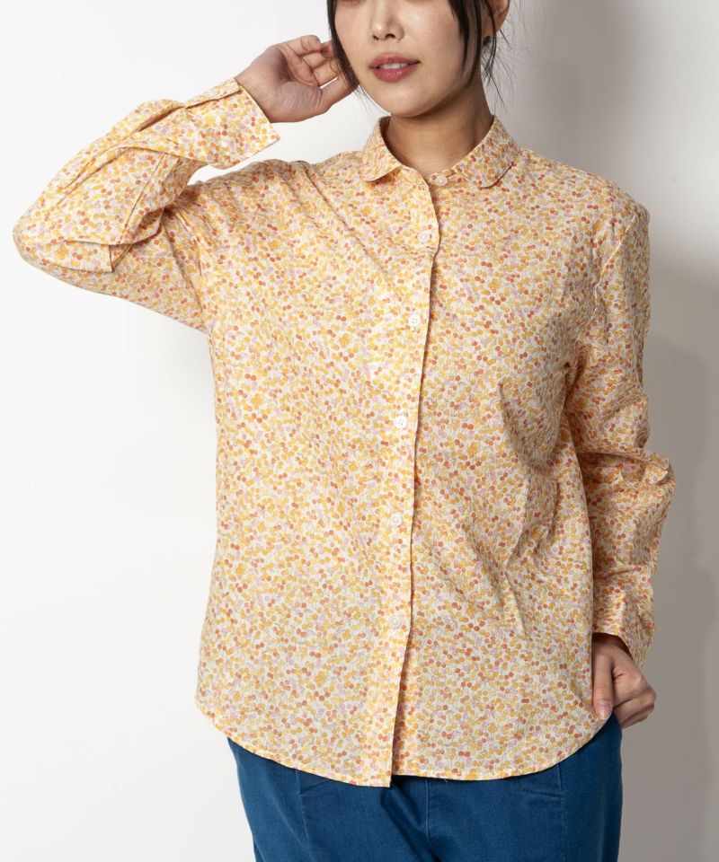 人気フラワープリントシャツシリーズ。 小さなベリー柄が可愛らしく、発色も明るめのプリントで、華やかな印象に。 小さめの柄なので、普段あまりプリントを着ない方にもオススメです。 デニムやシンプルなボトムスと合わせても映えるシャツです。 フラワープリントとは、少し違った印象をお楽しみいただけます。