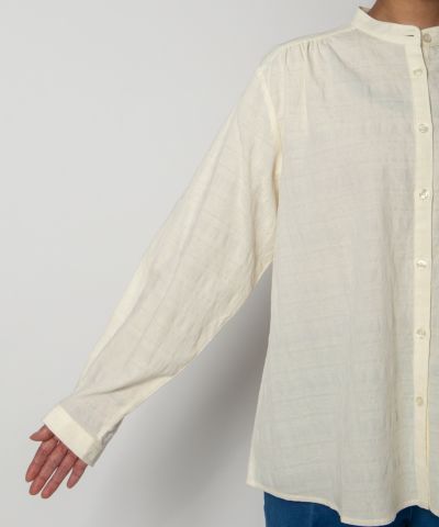 柄の織りで表面に変化をもたらせた素材を使用した、上品なシャツに仕上がっています。 綿100%の肌触りが良い素材なので、春~夏にかけて最適な商品です。