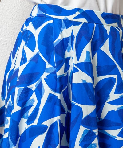 【デザイン】 ・マティスの「ブルーヌード」からインスピレーションを受けた、さわやかで爽快な印象のプリント素材で作られたフレアースカートです。 ・ハリのあるコットン素材を使用し、ウエスト前後の仕様を変え、バランス良くキレイな分量感をもたせました。 ・後ろウエストをゴム仕様にしているので、安心感のある穿き着心地です。 ・両脇ポケット付き。