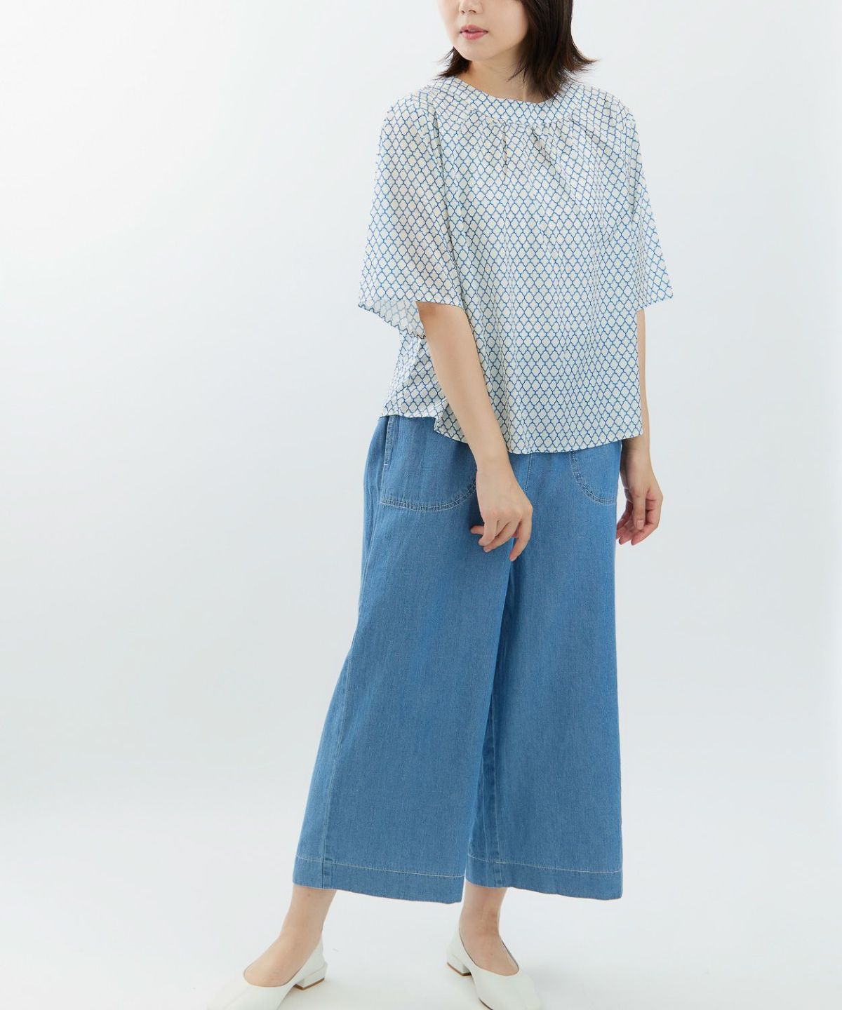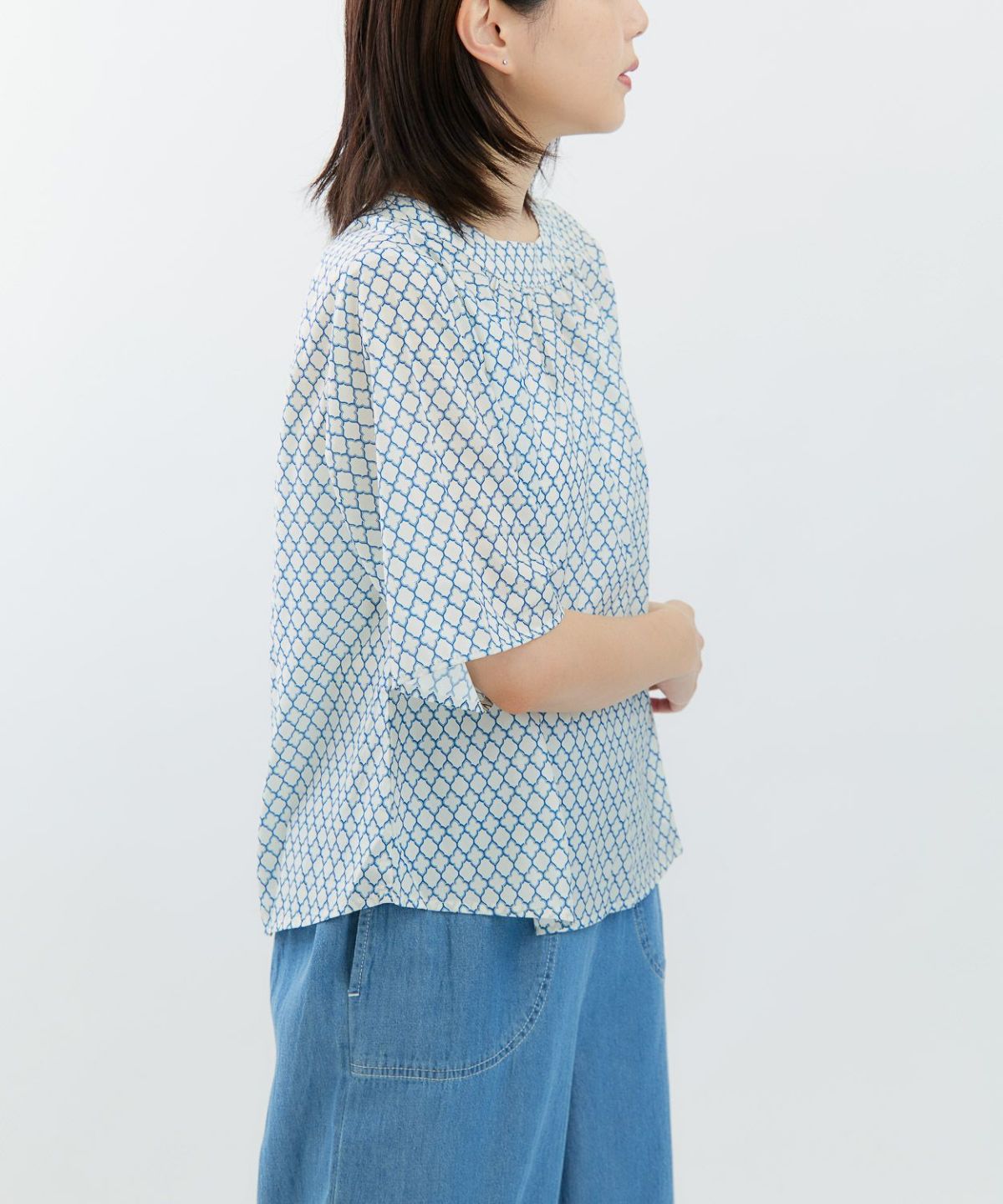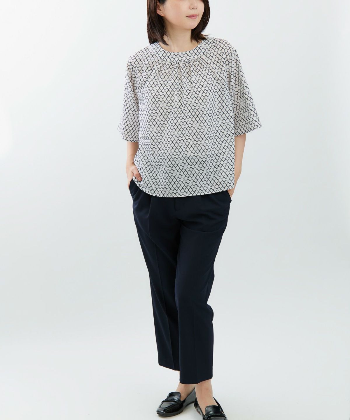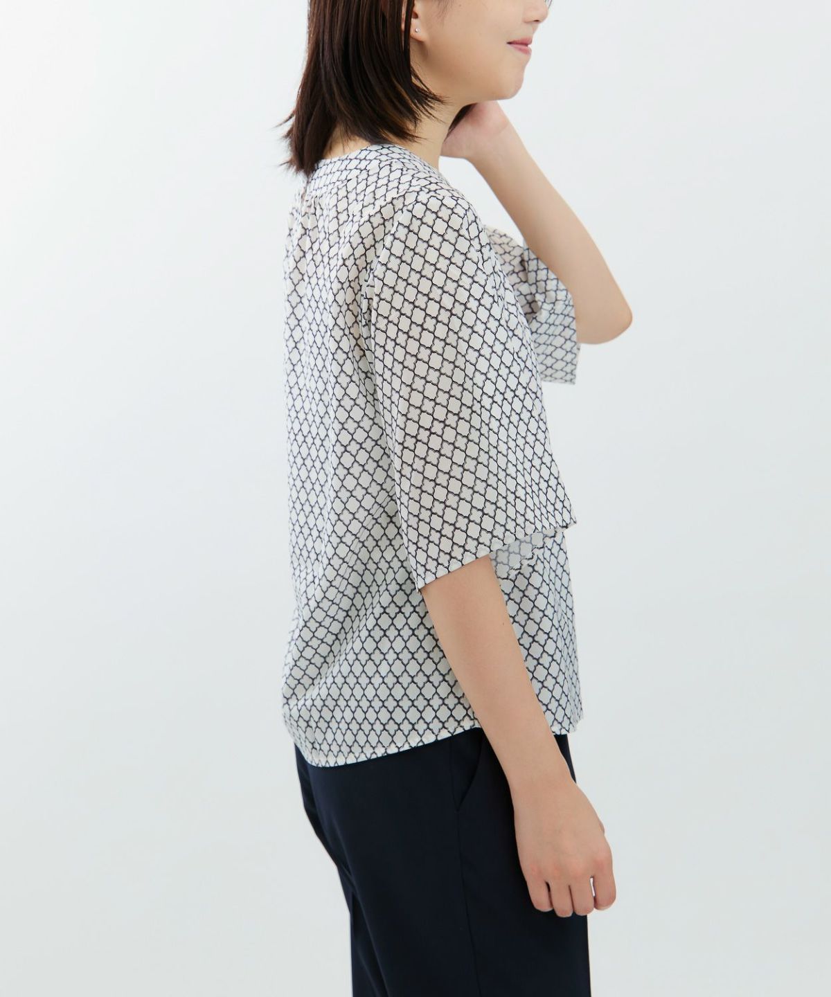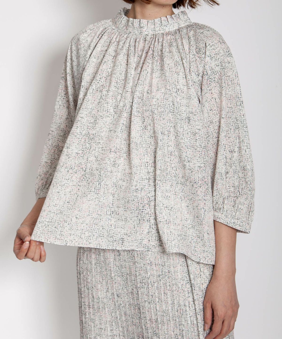 サマーツイード風プリントブラウス