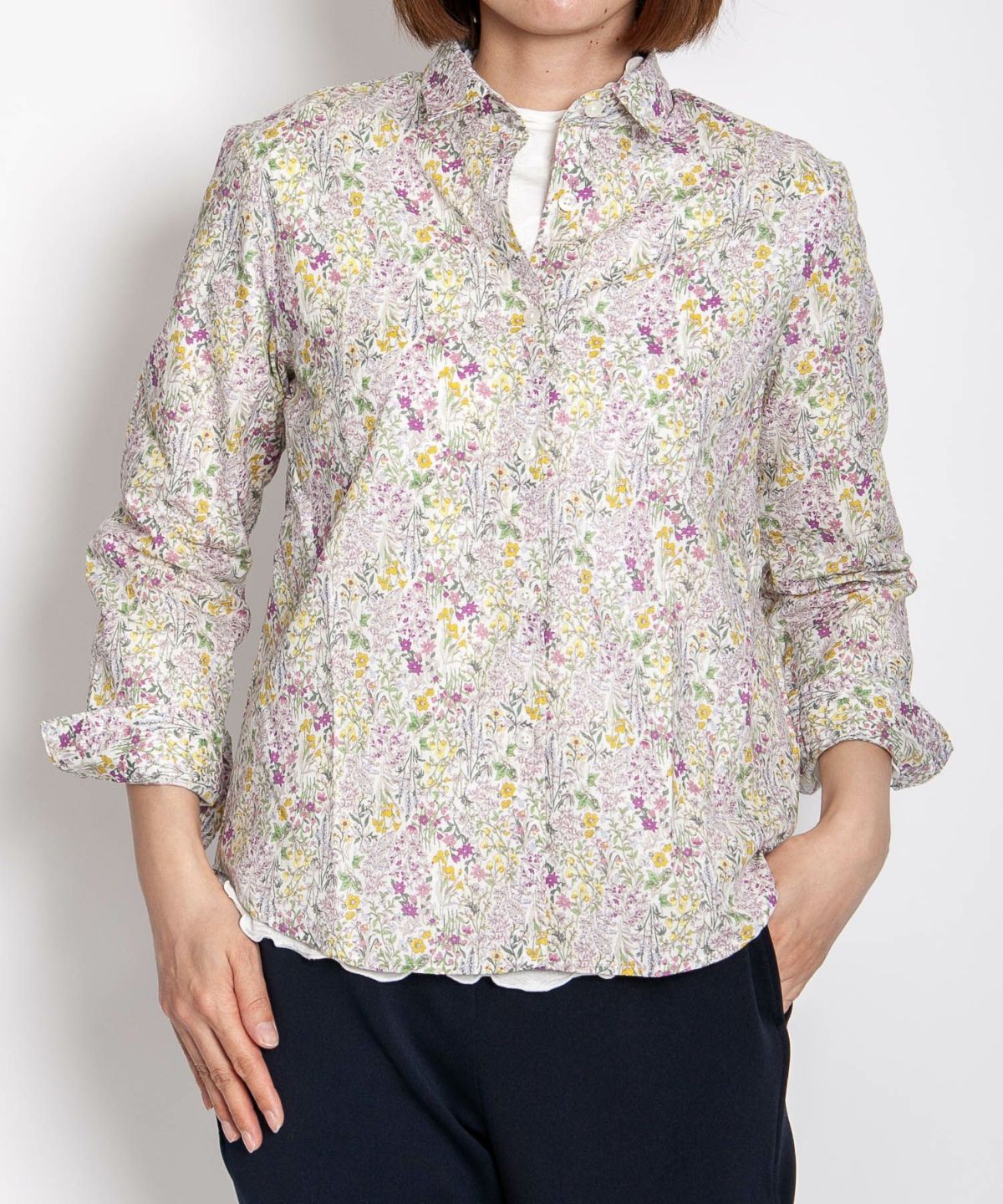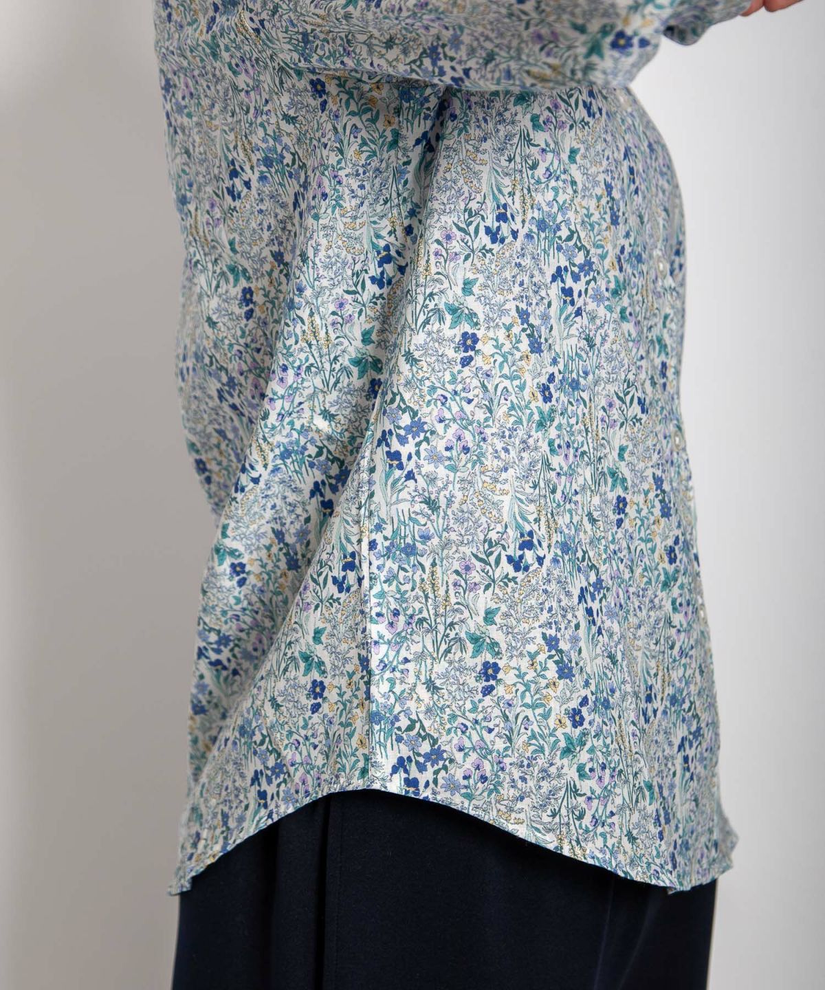 丸衿フラワープリントシャツ