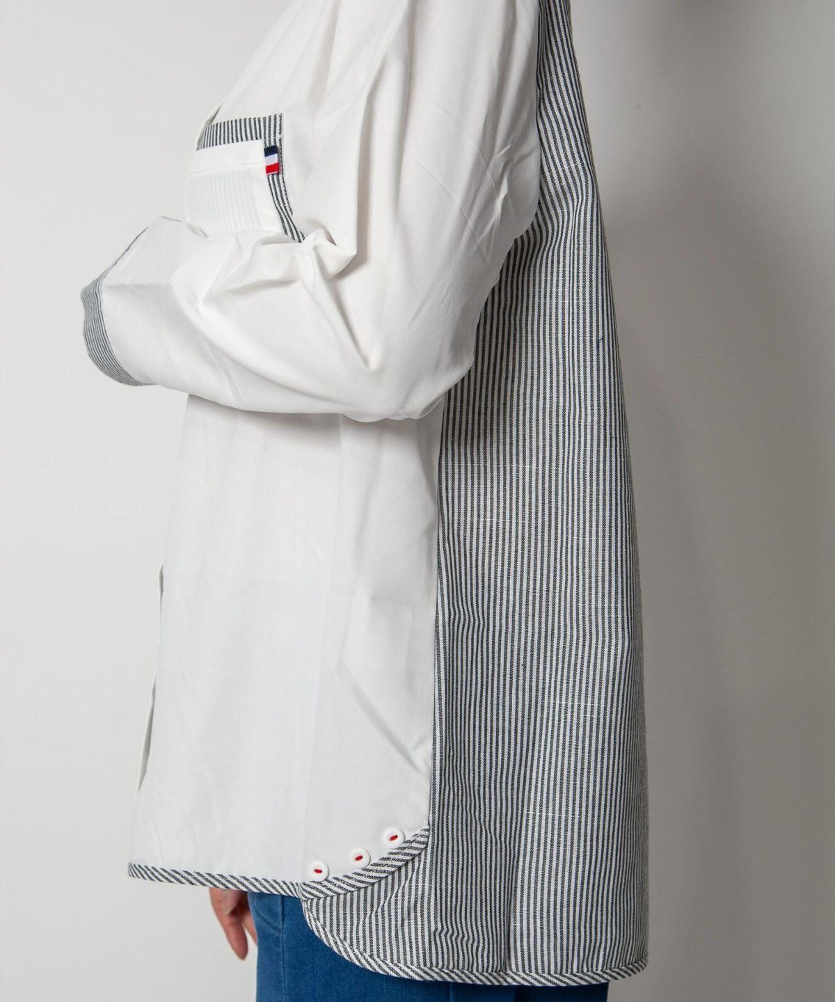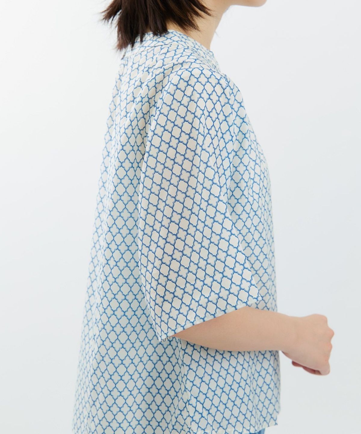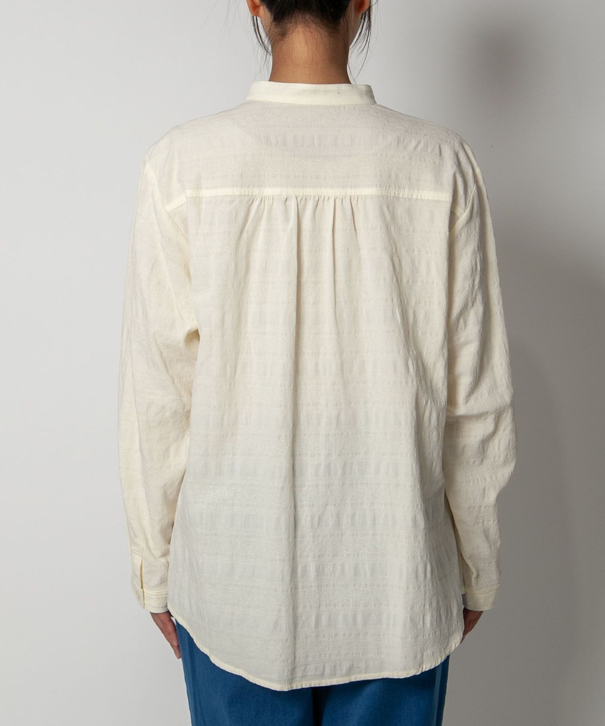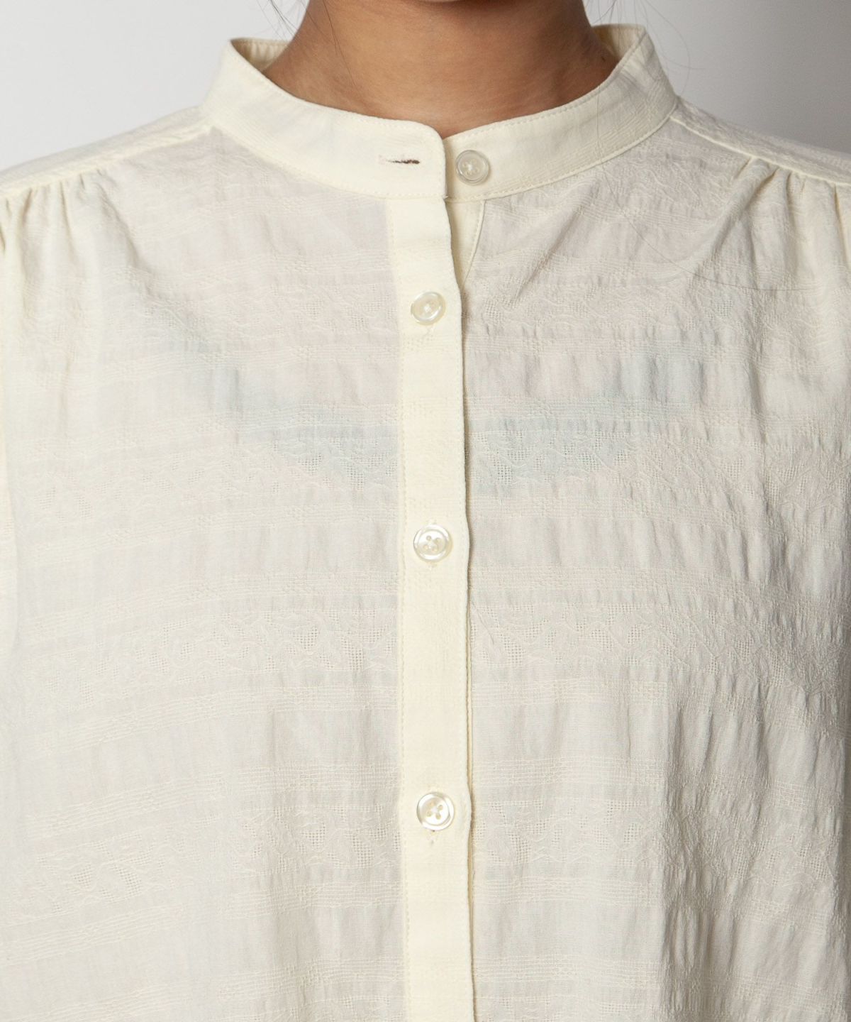 コットン織柄スタンドカラーシャツ