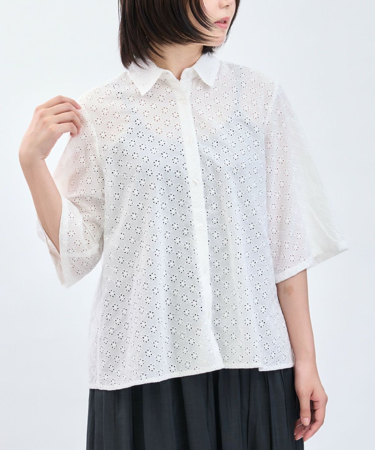 カットレース6分袖シャツ