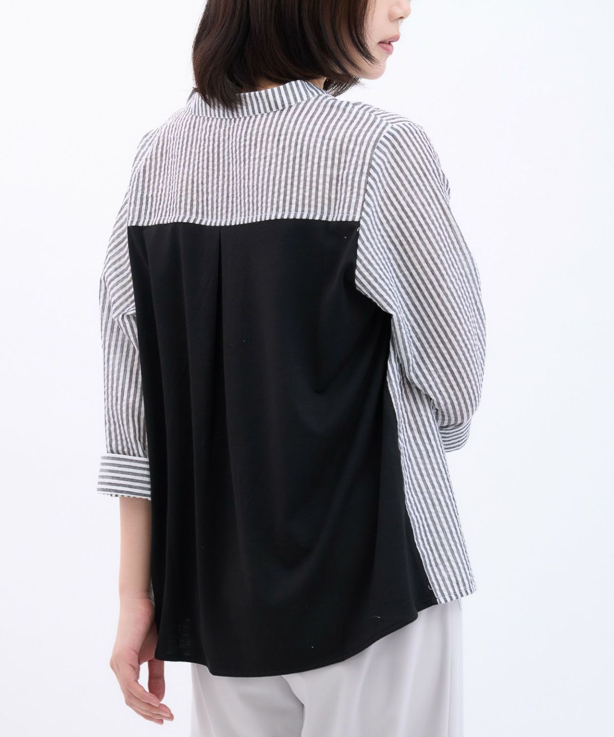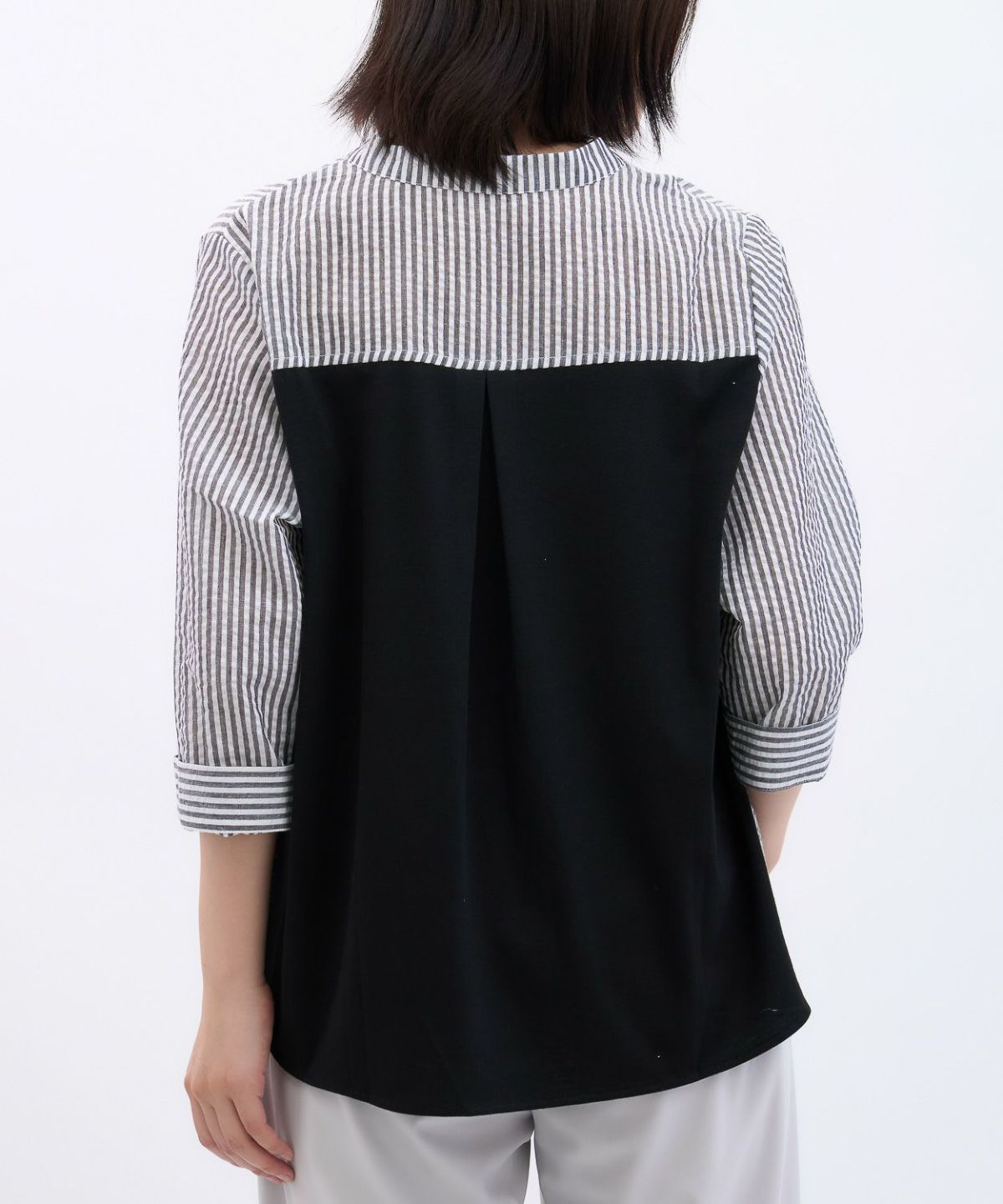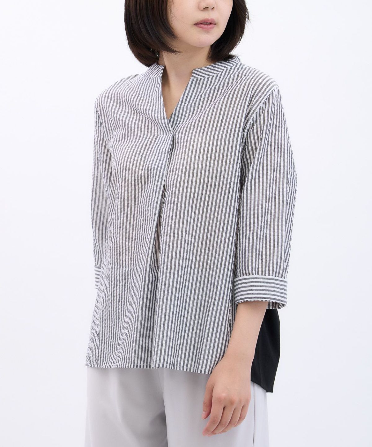 透かしボーダータックブラウス