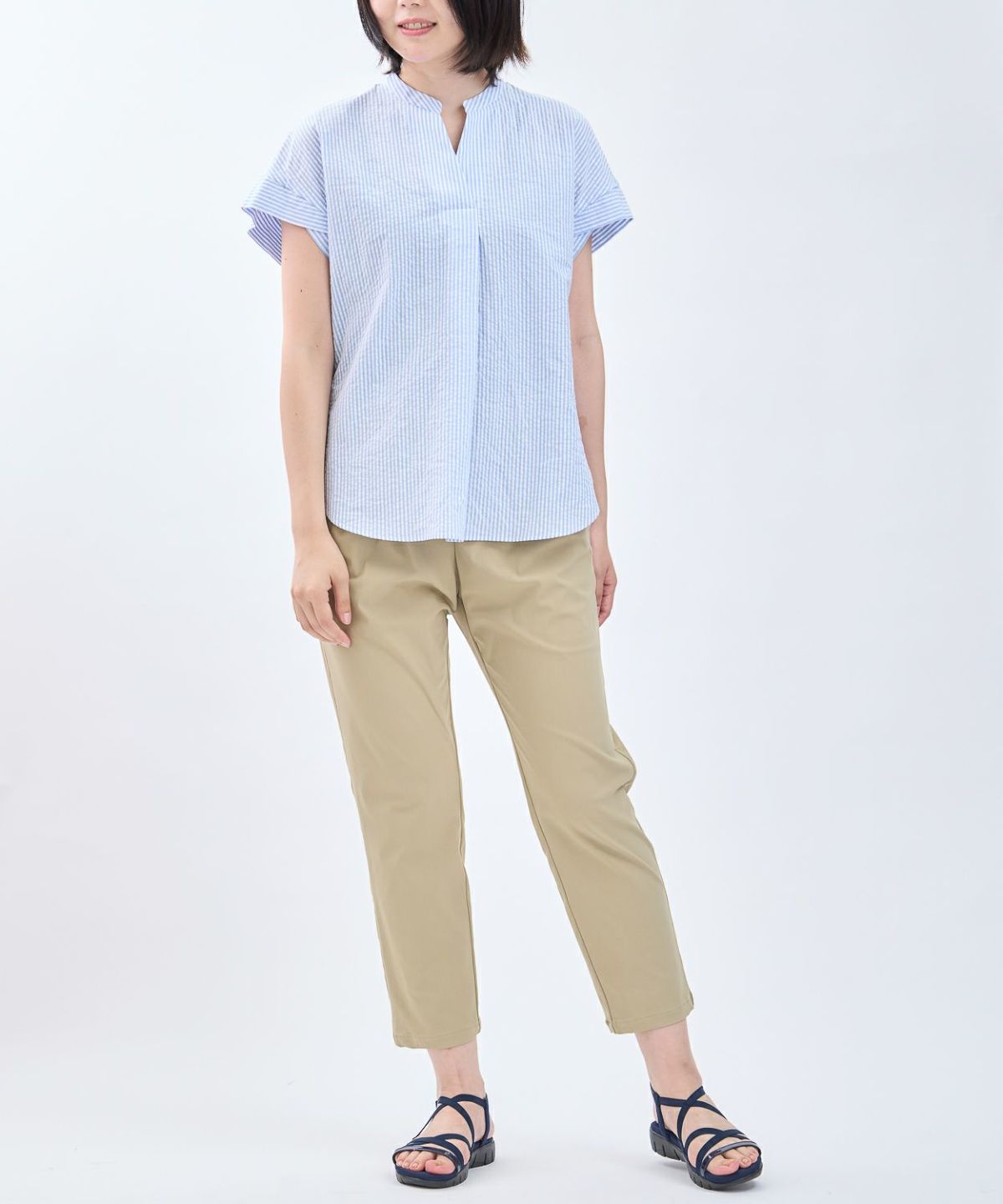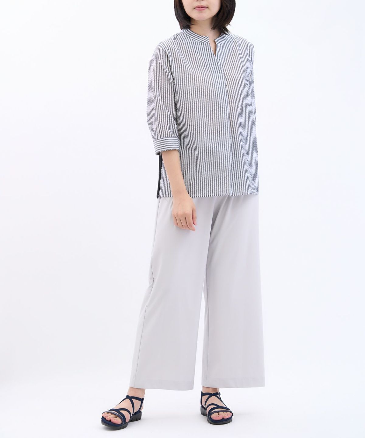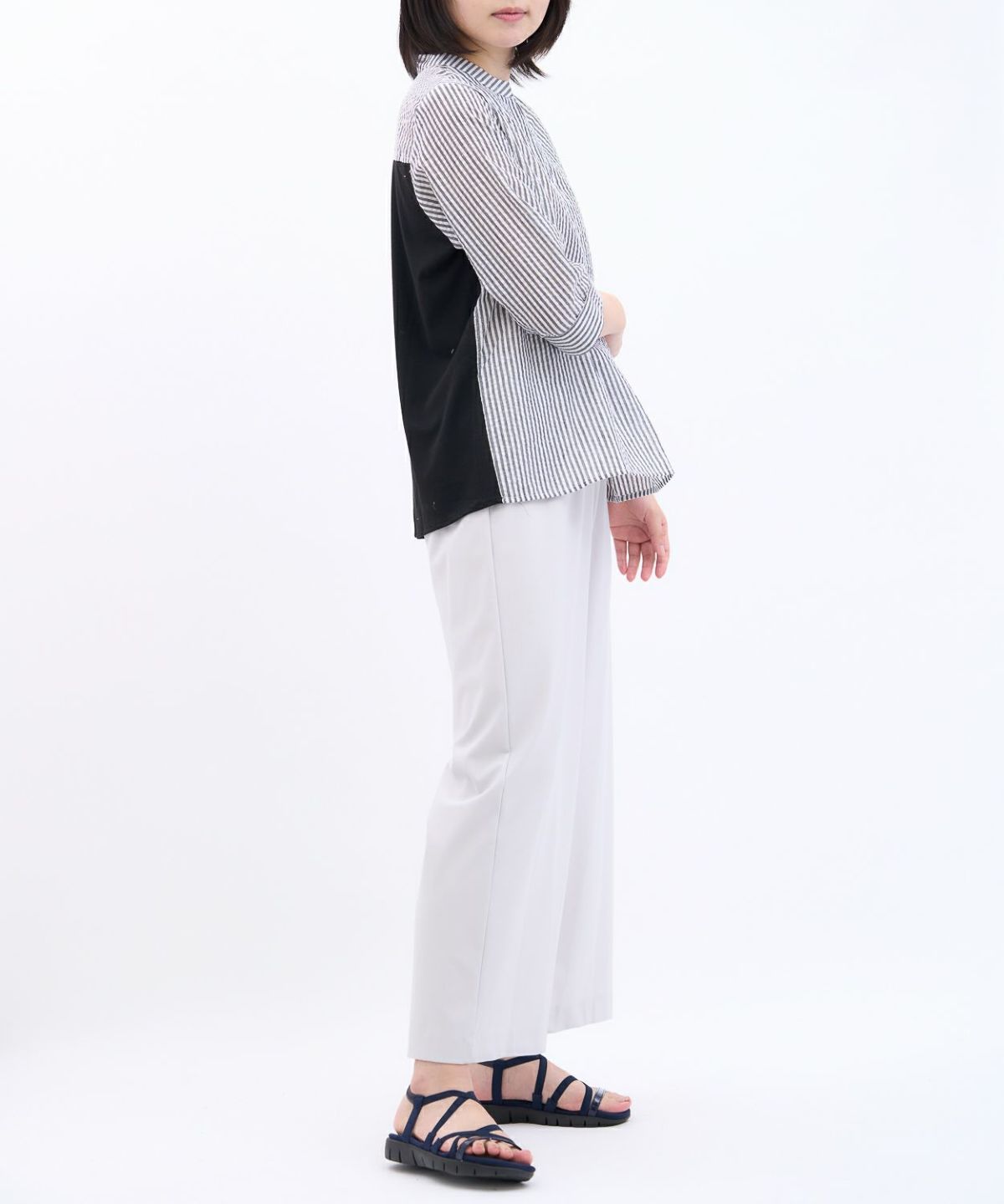 透かしボーダータックブラウス