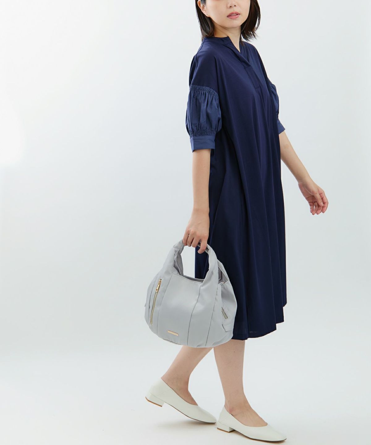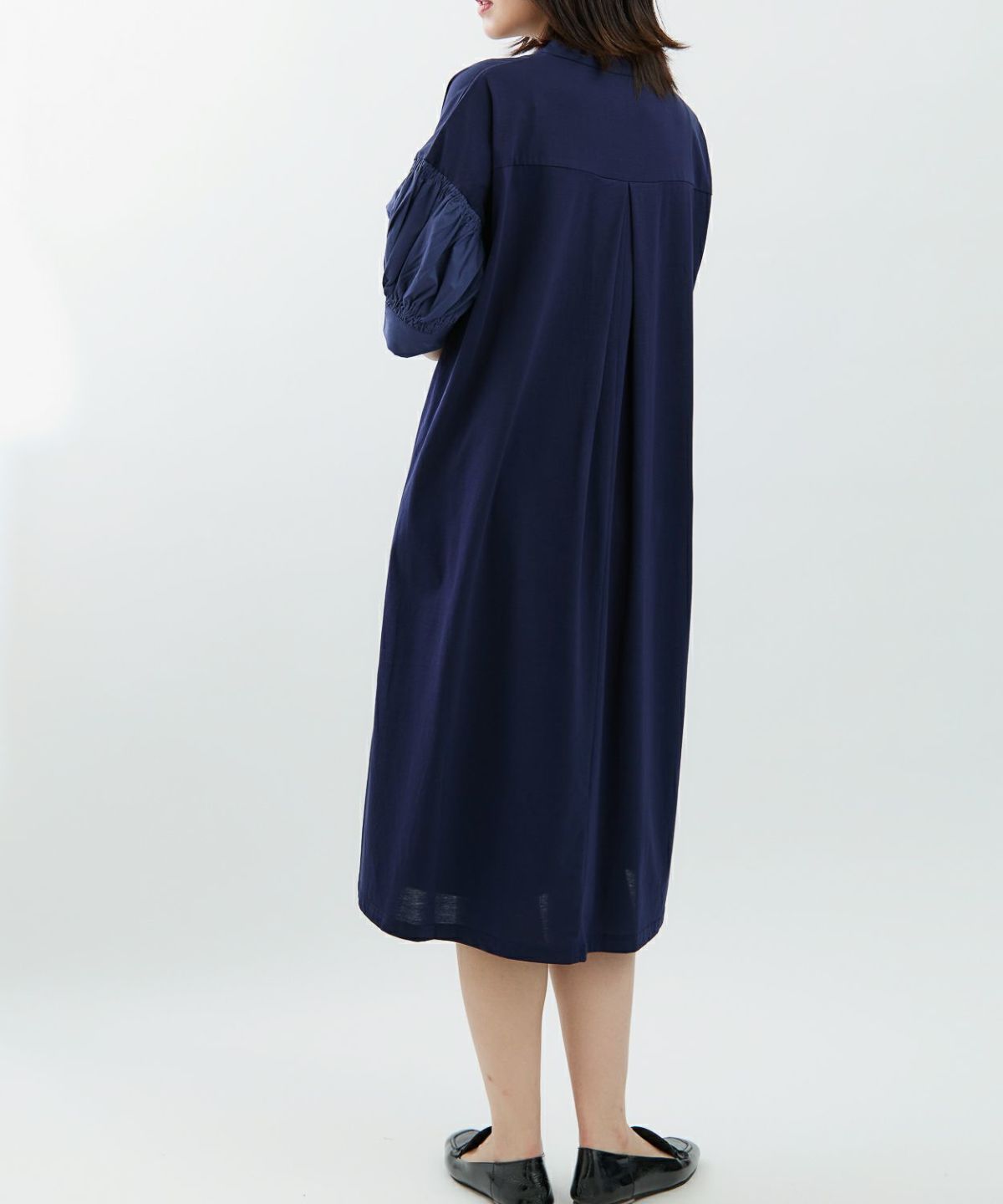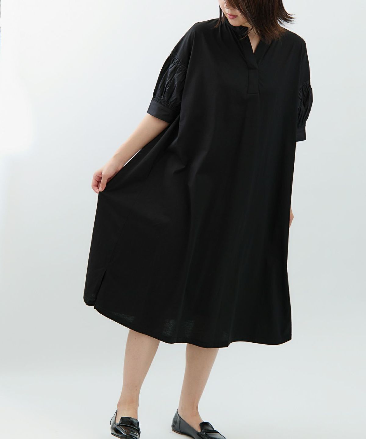 袖切替スキッパーネックワンピース