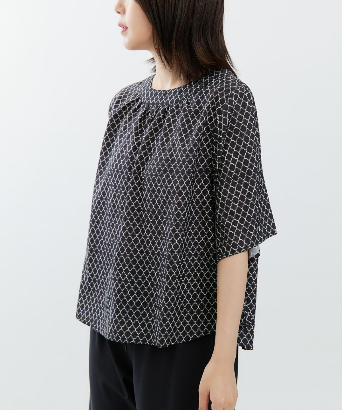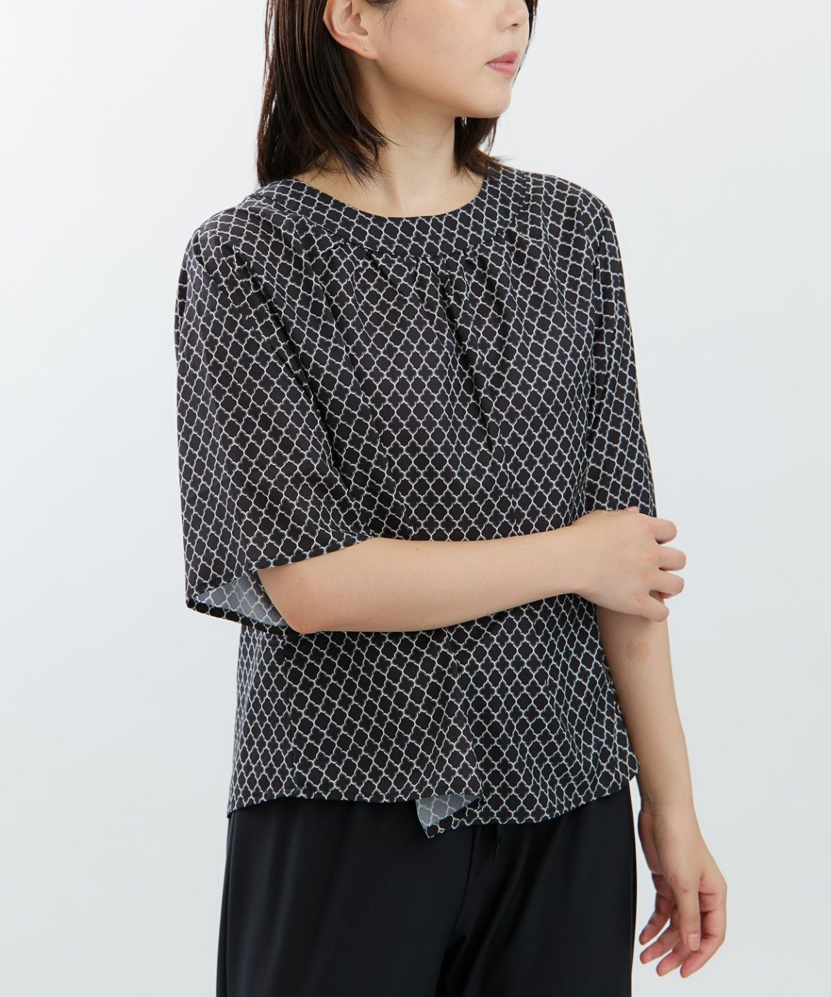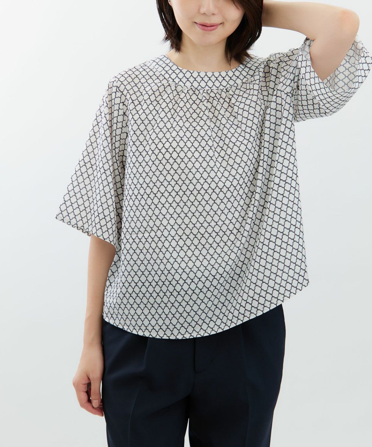 幾何プリント5分袖プルオーバー