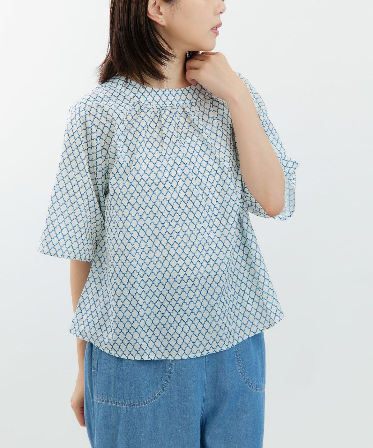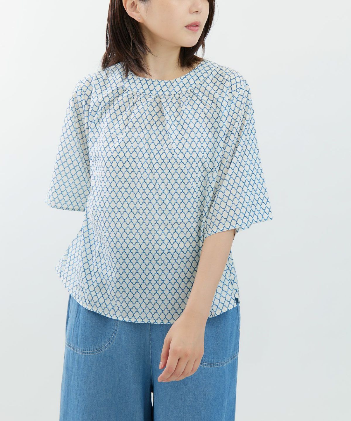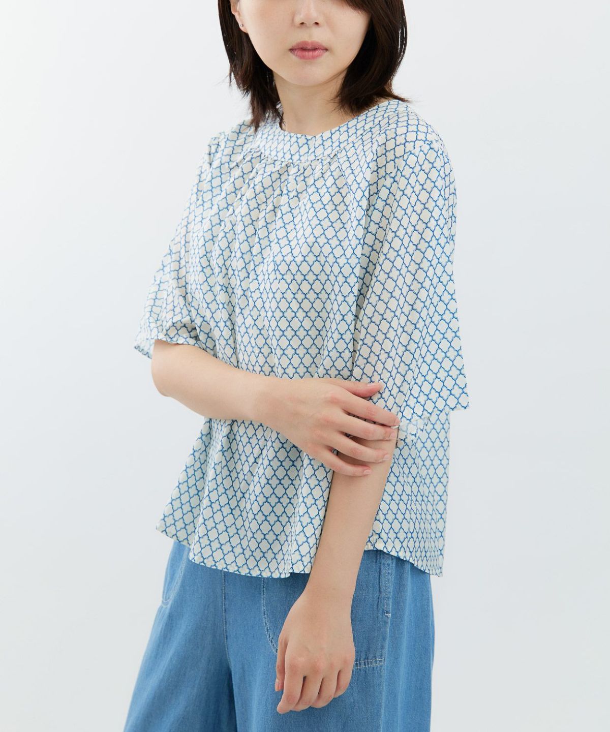 幾何プリント5分袖プルオーバー