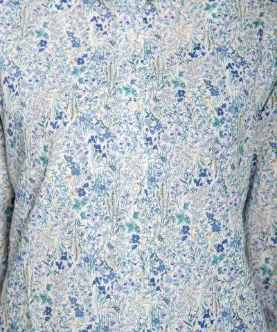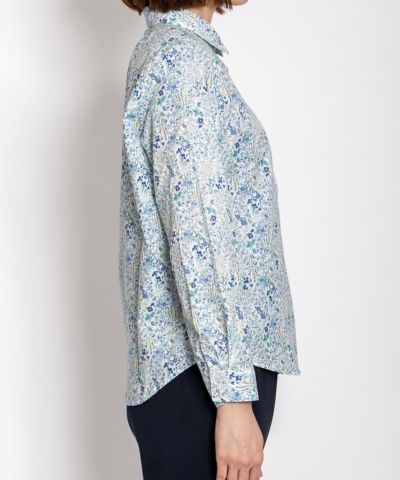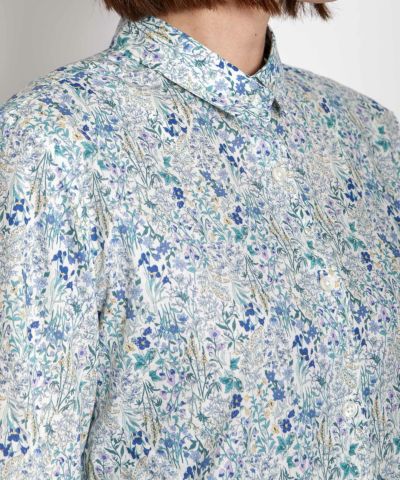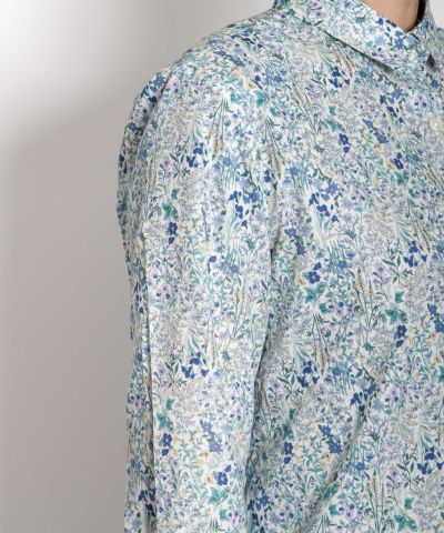 シンプルなシャツカラーに、小花のプリントをのせ、華やかさがUP。 綿100%素材のため、少し汗ばむ陽気まで、長い期間ご着用いただけます。