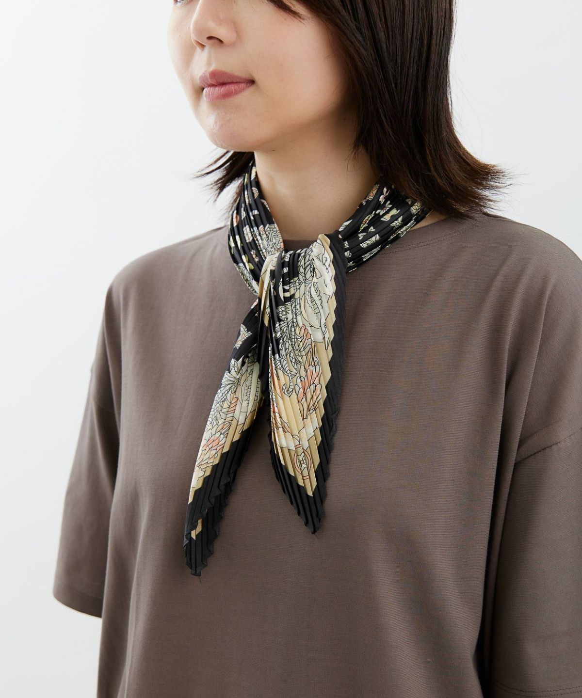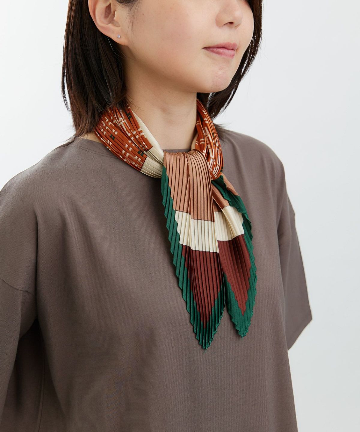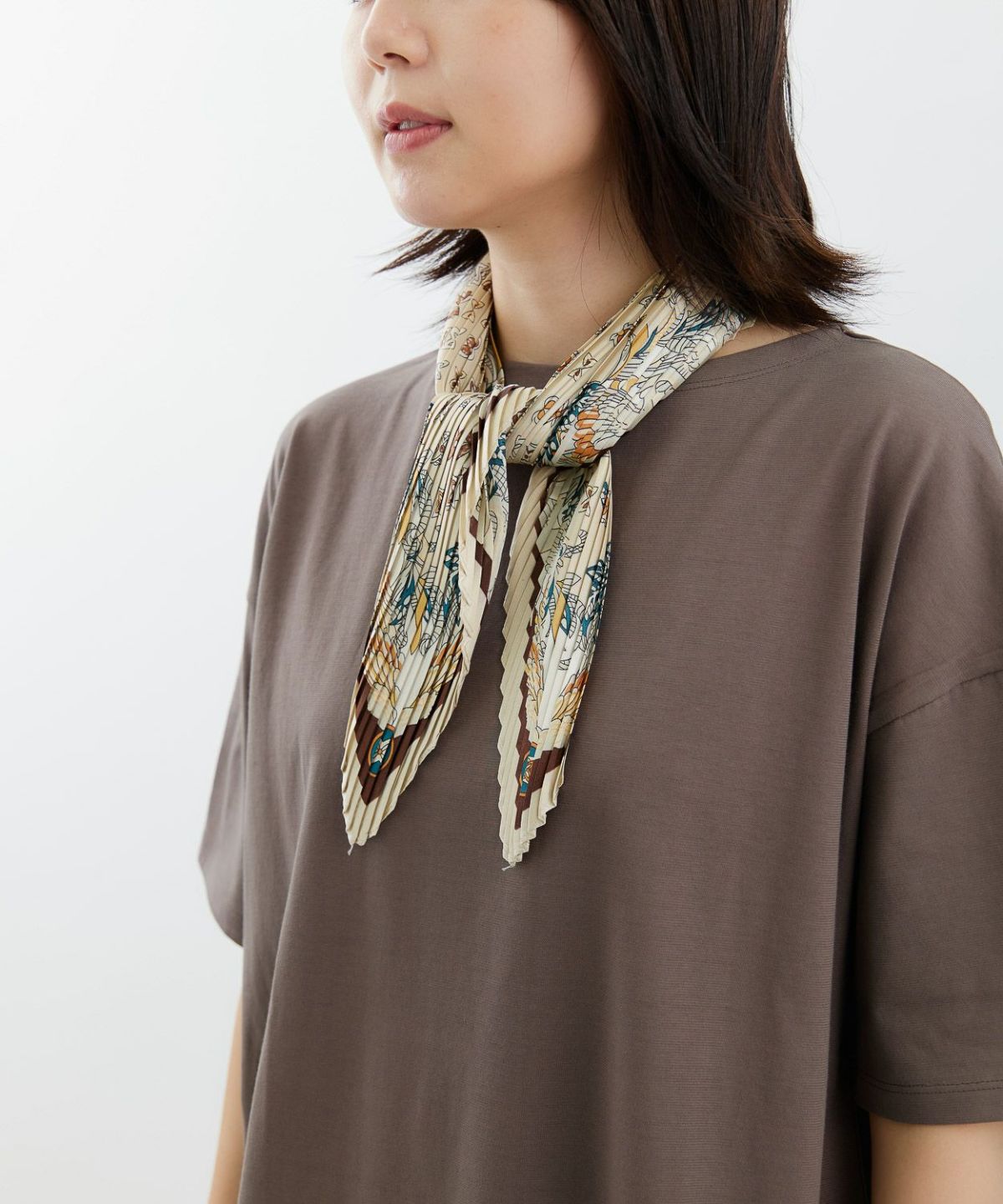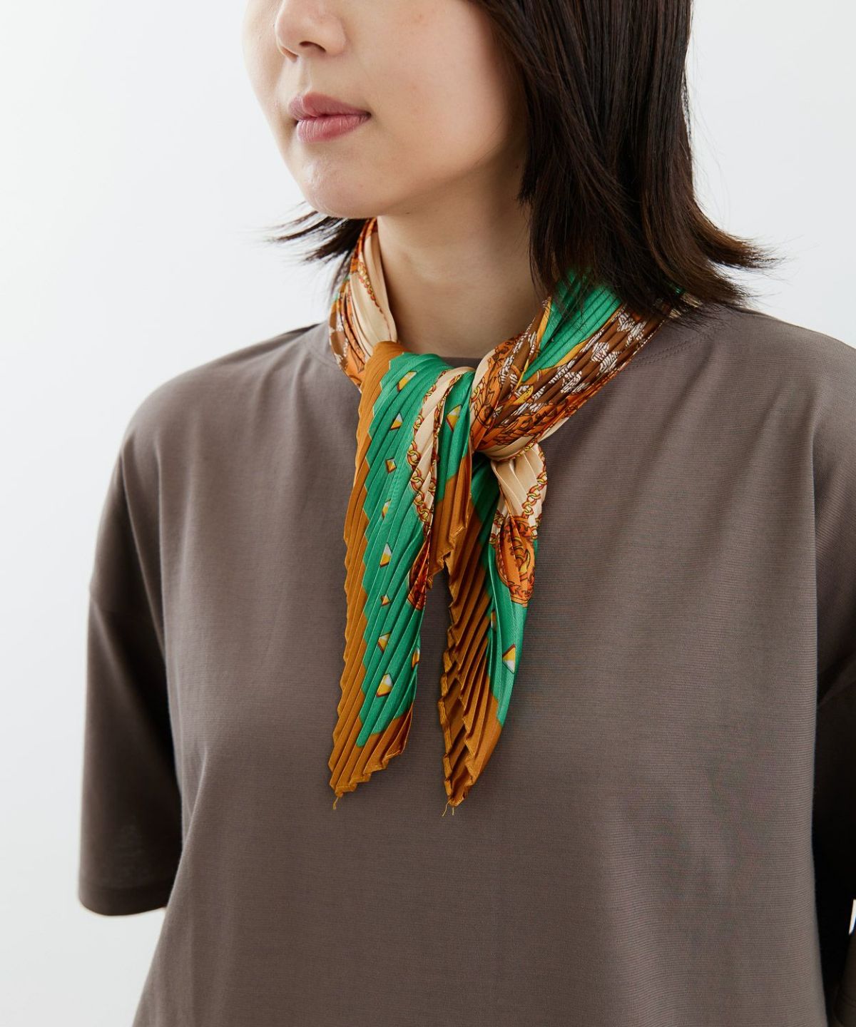 プリント配色プリーツスカーフ