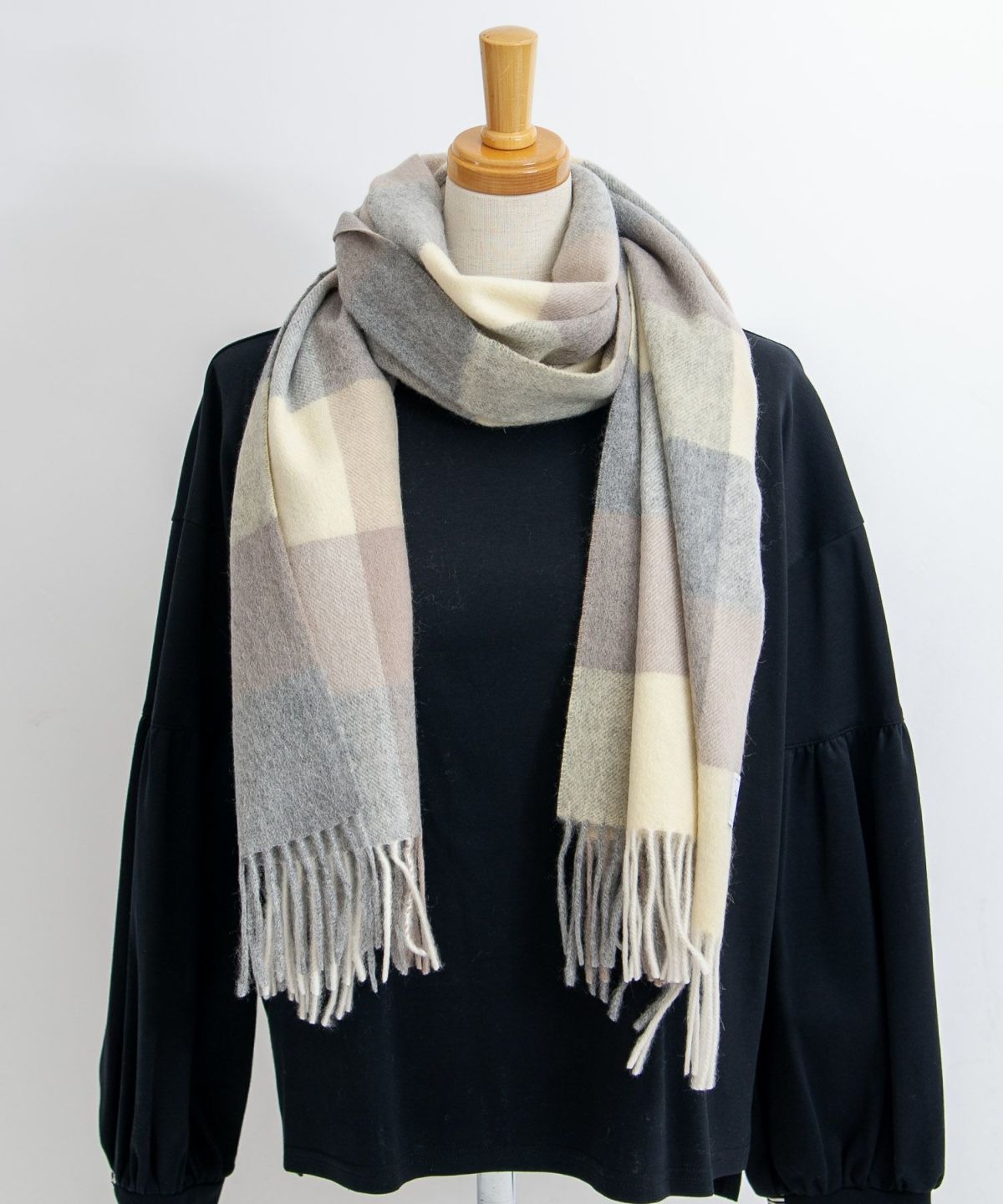 手洗いカシミヤブロックチェックストール